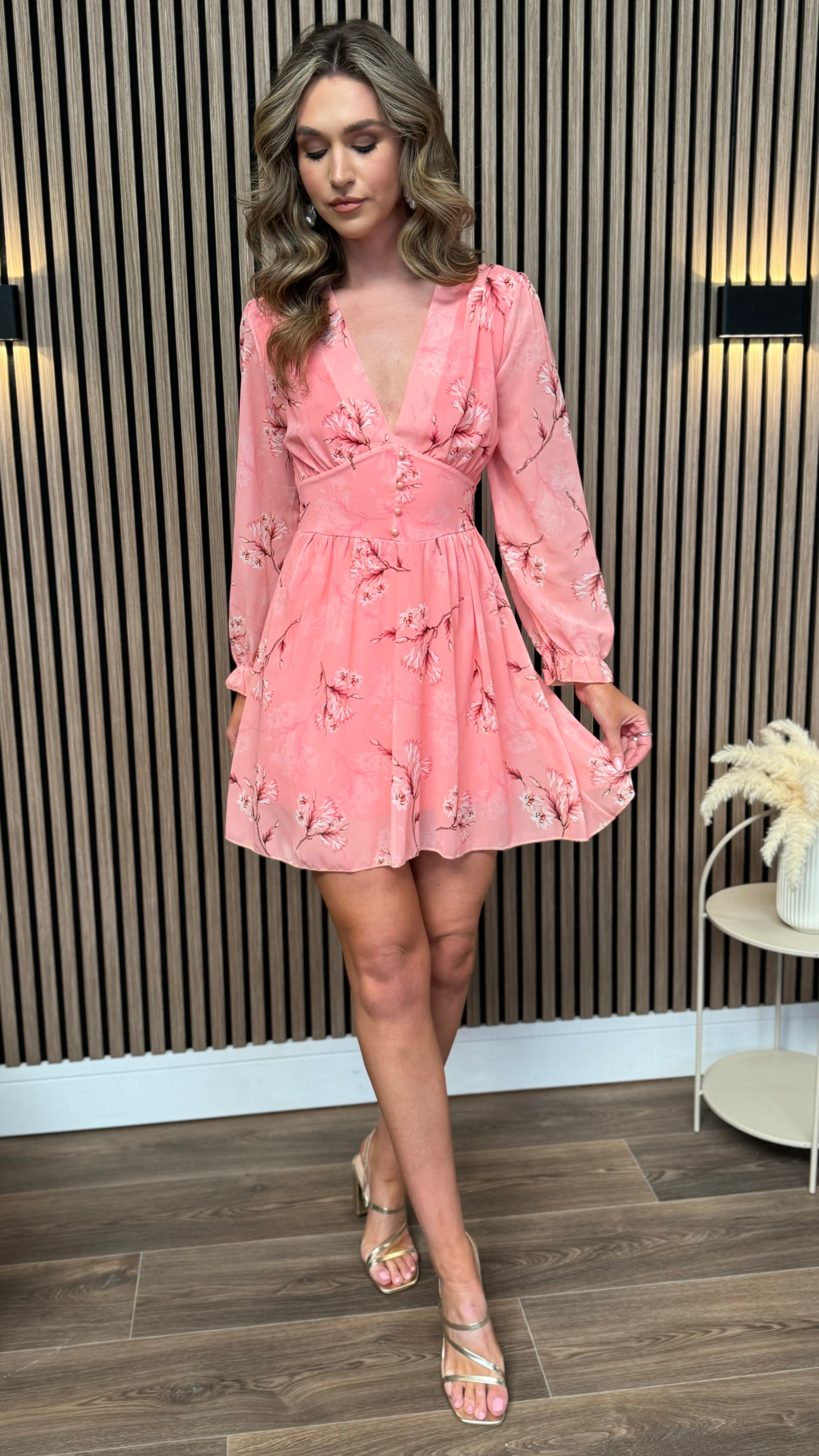 Brighten your day with the Aylin Peach Floral Printed Mini Dress! Bursting with vibrant peach hues and playful floral patterns, this dress is perfect for sunny outings and fun gatherings. Its flirty mini length adds a touch of charm, making every step feel light and lively. Get ready to turn heads and spread good vibes wherever you go! 🌸🧡✨