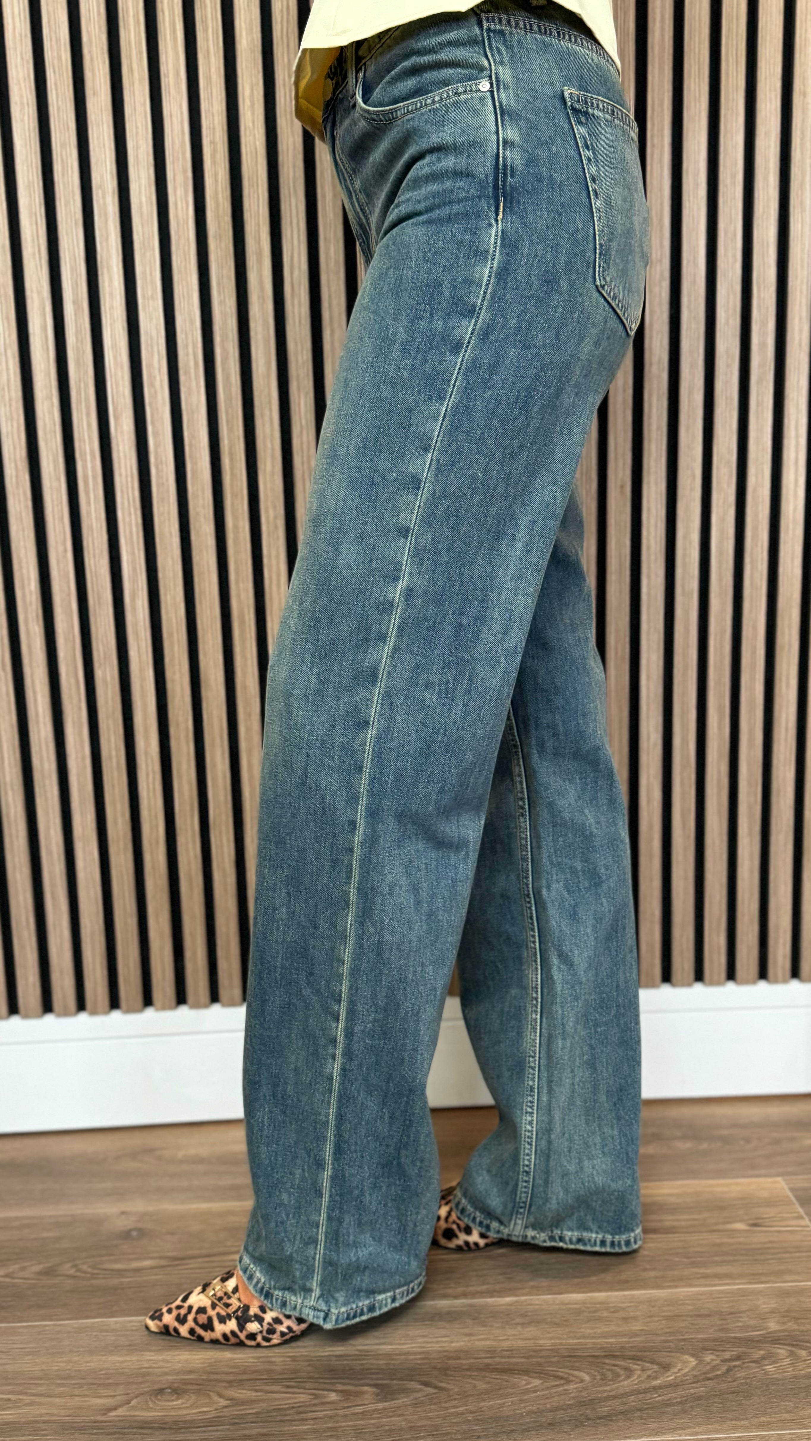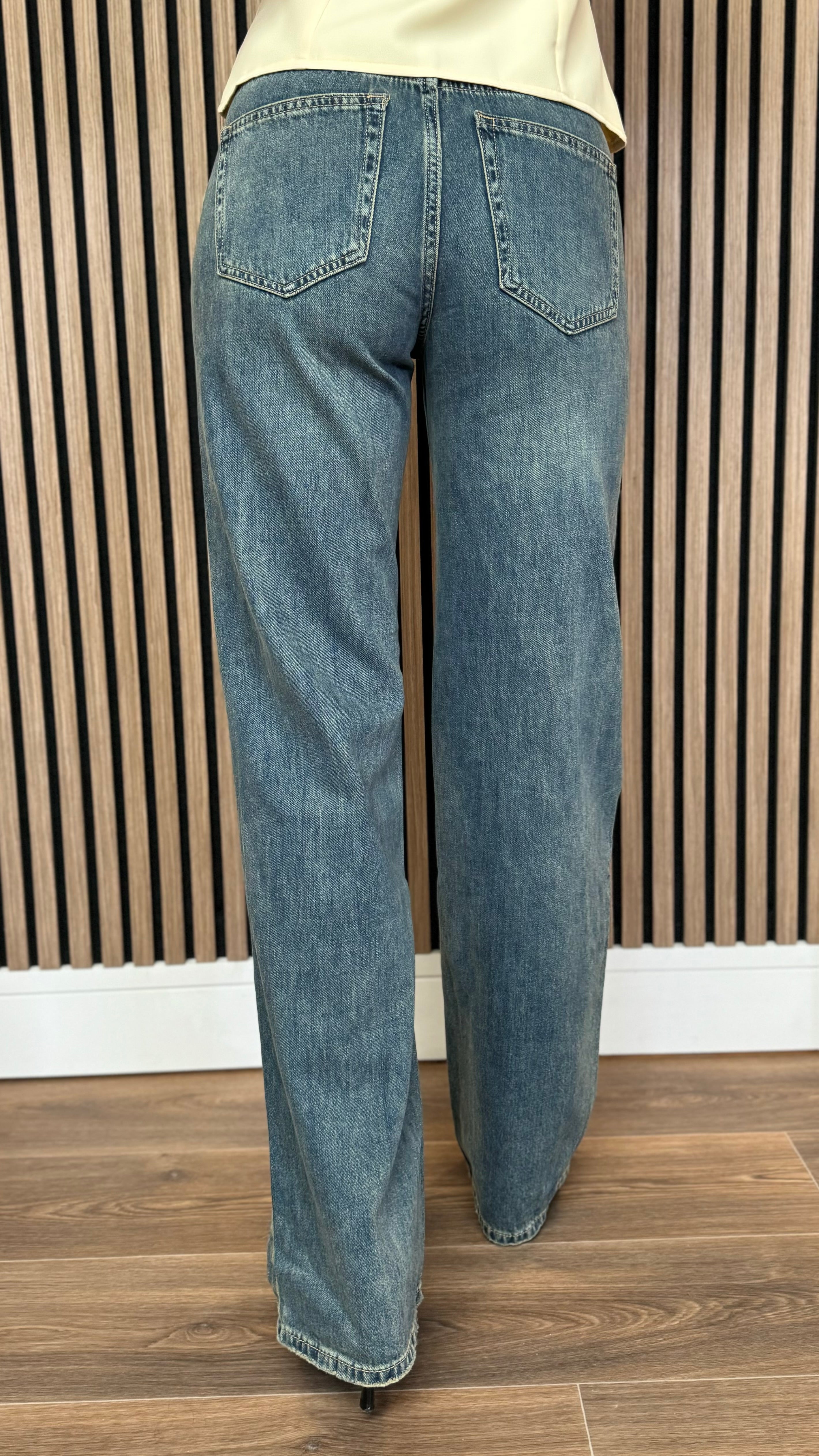 Elevate your denim collection with the Ensley Vintage Blue Straight Leg Jeans. These timeless straight-leg silhouettes offer a refined aesthetic with their classic vintage blue wash. Meticulously crafted for both comfort and enduring style, they transition effortlessly from casual daywear to evening sophistication.