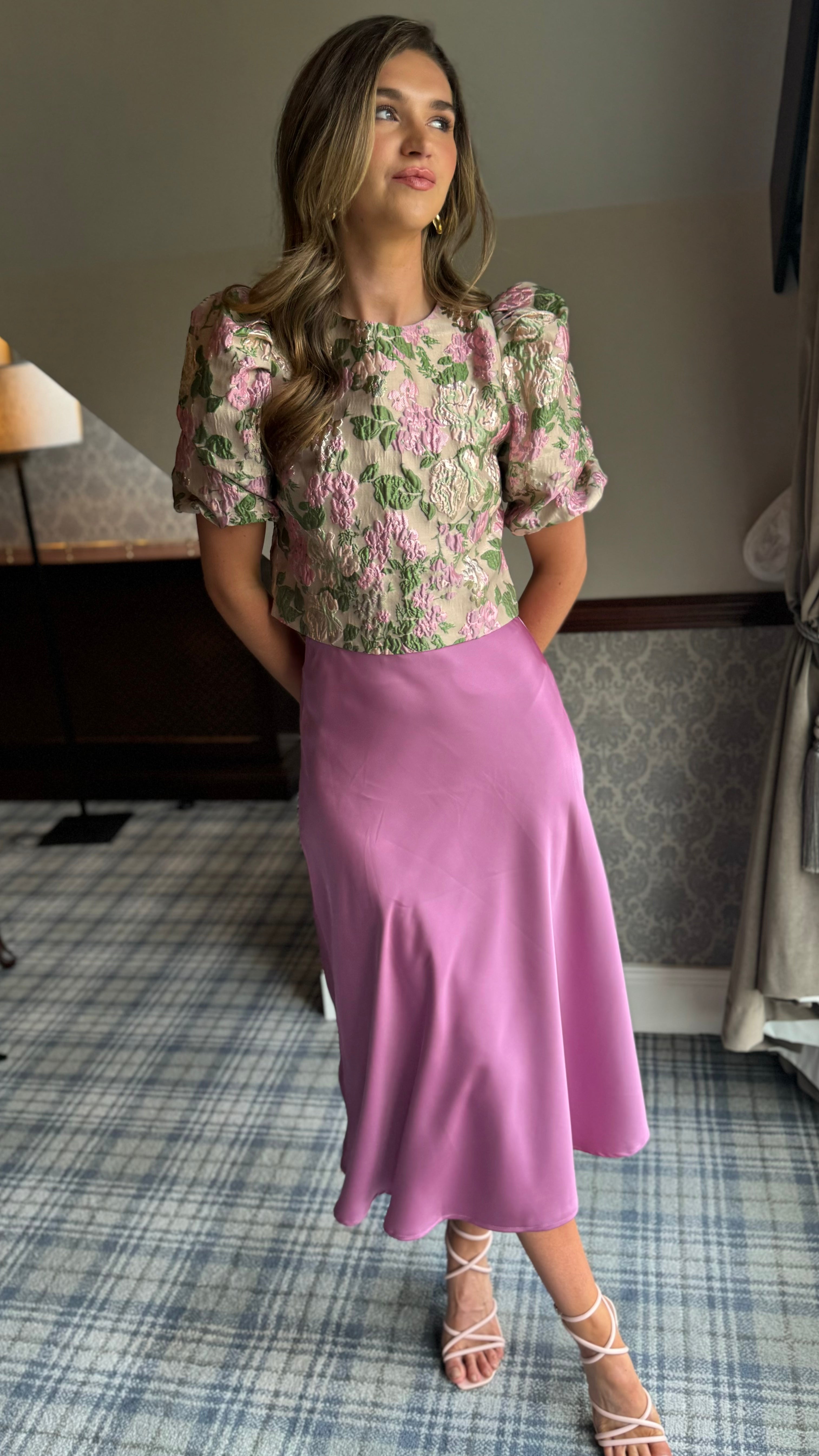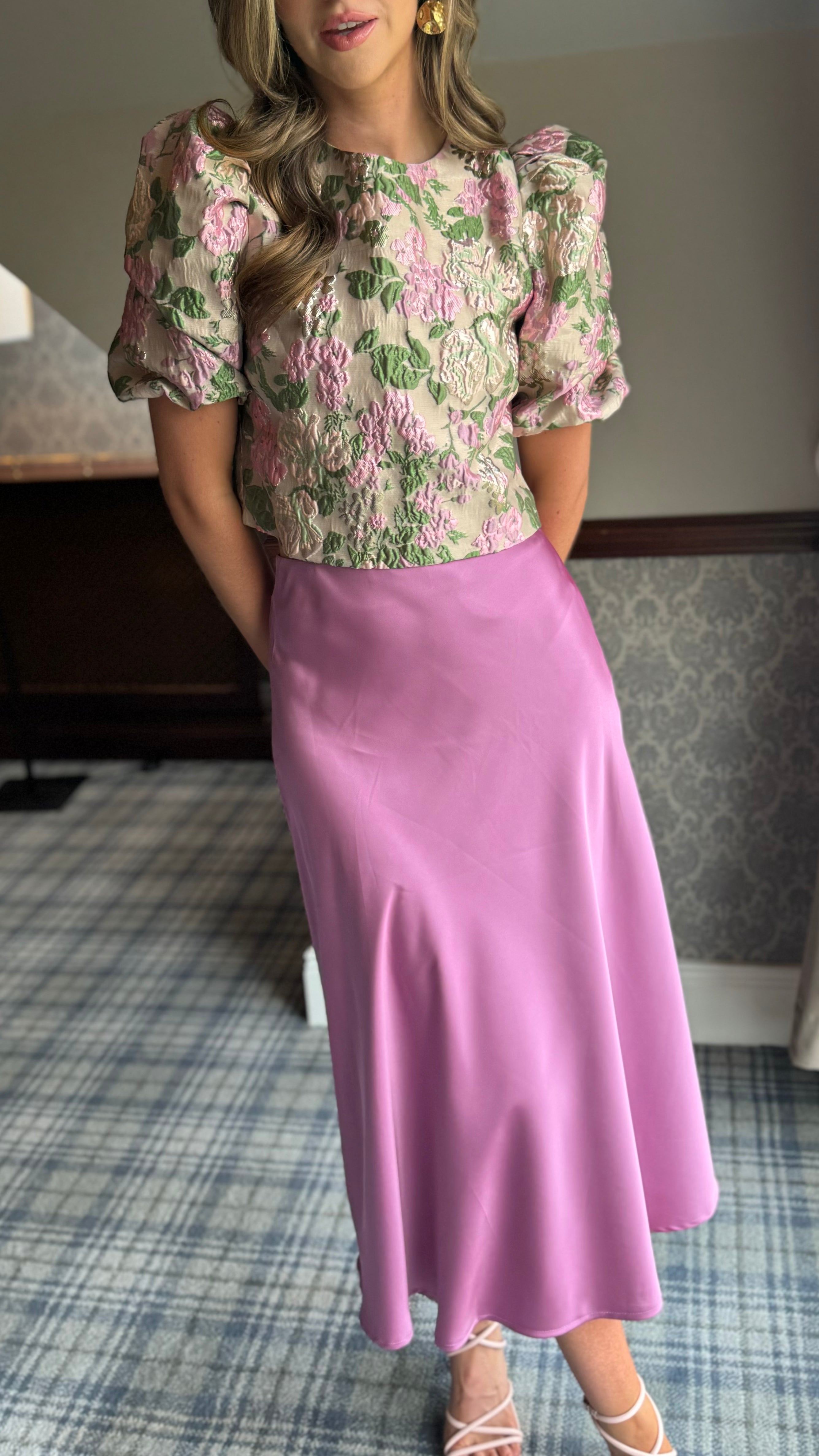 Get ready to slay in this Harper Light Pink & Green Floral Printed Puff Sleeve Top! With its round neckline and eye-catching print, this top is perfect for any occasion. It's the perfect combination of bold and chic. 💃