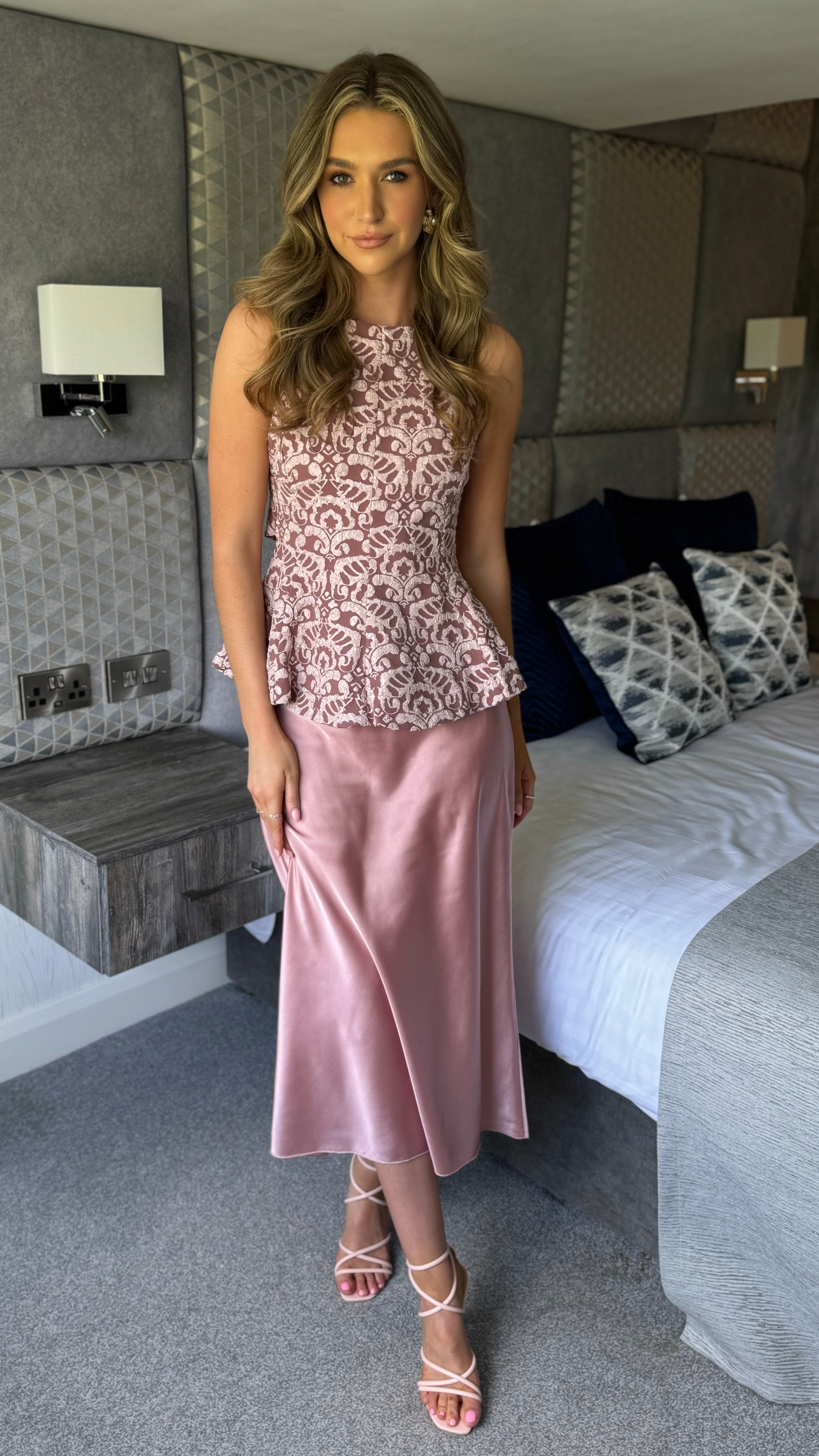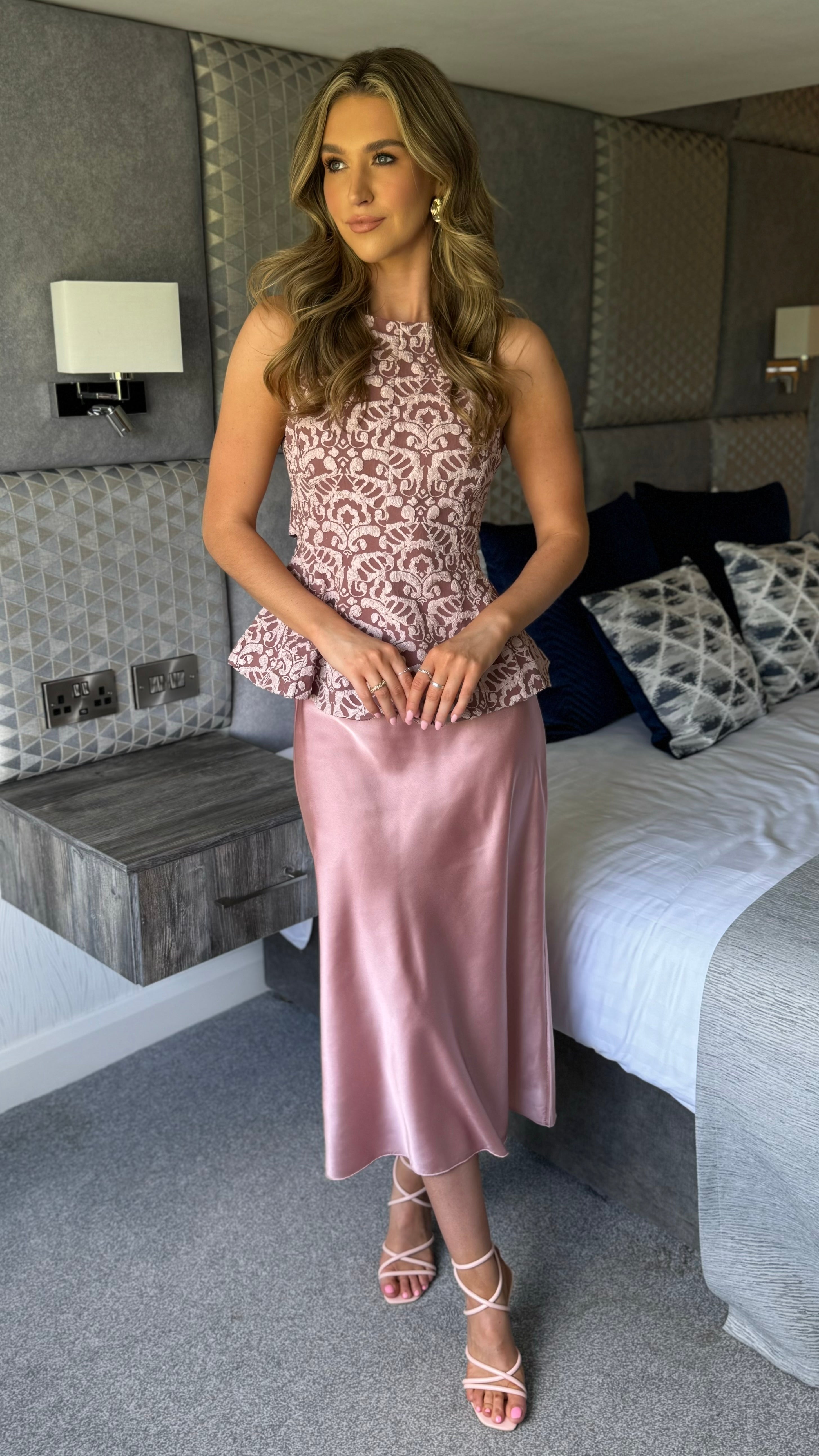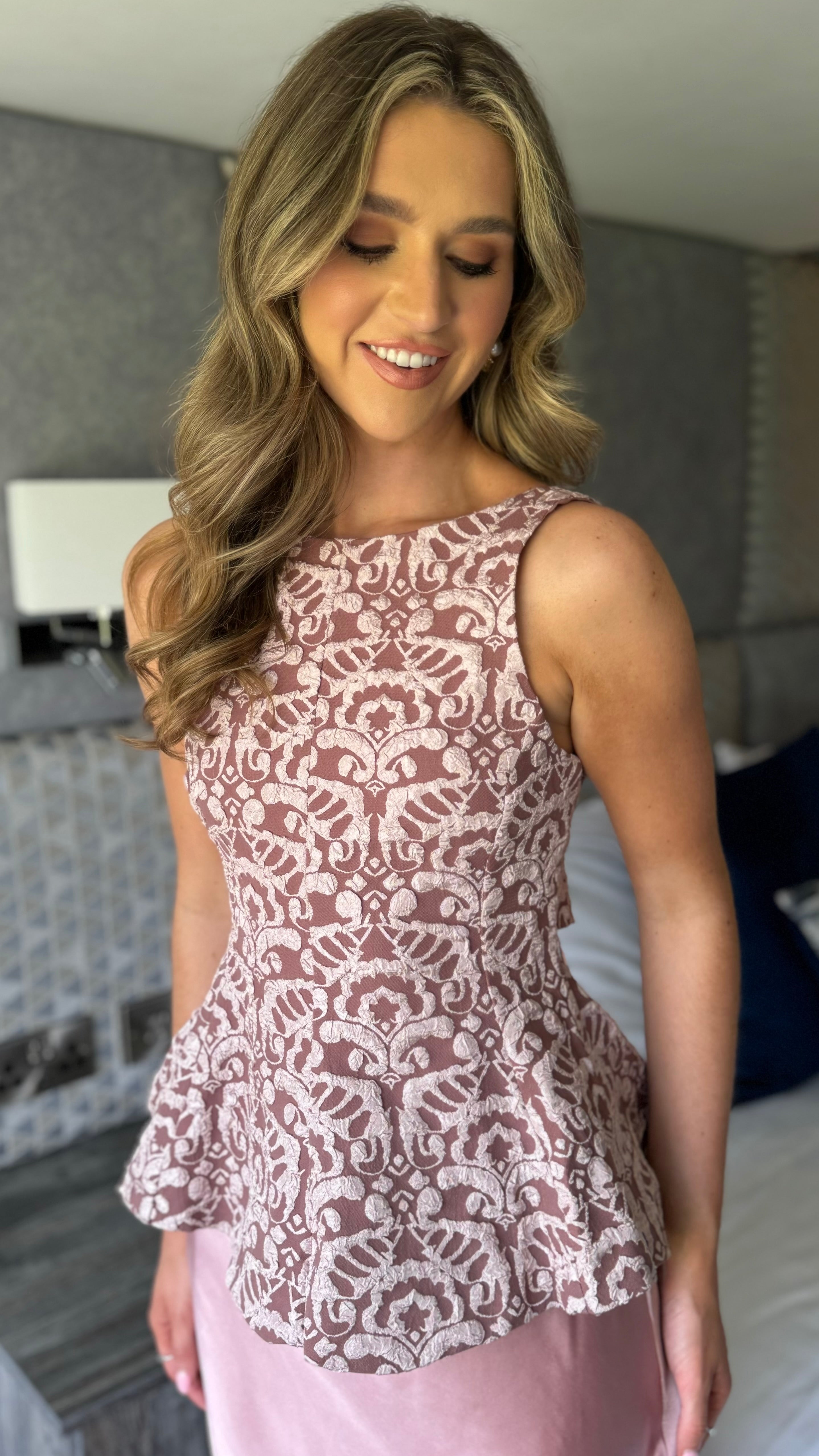 Kate Dusky Pink Tie Back Detail Peplum Top