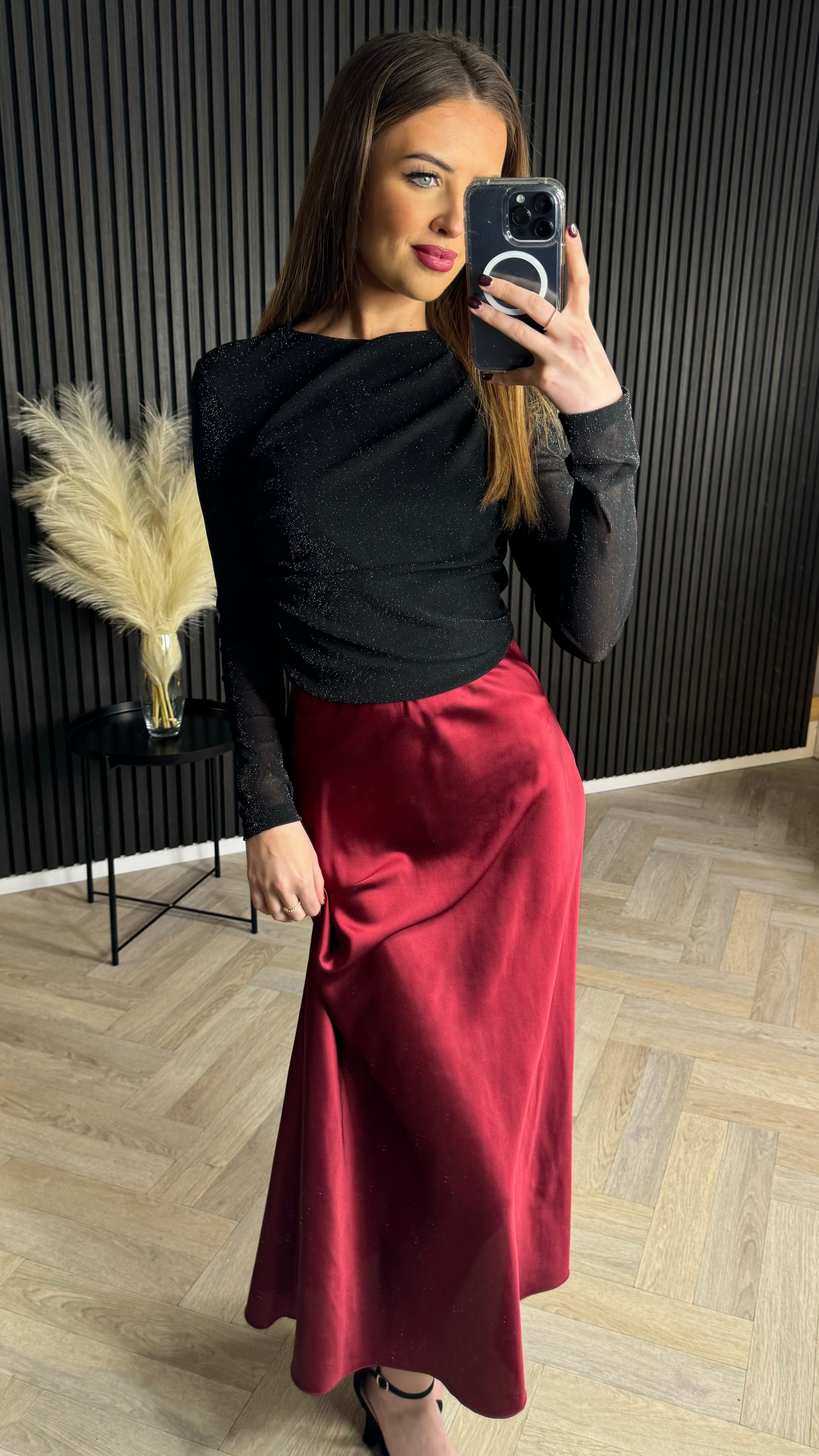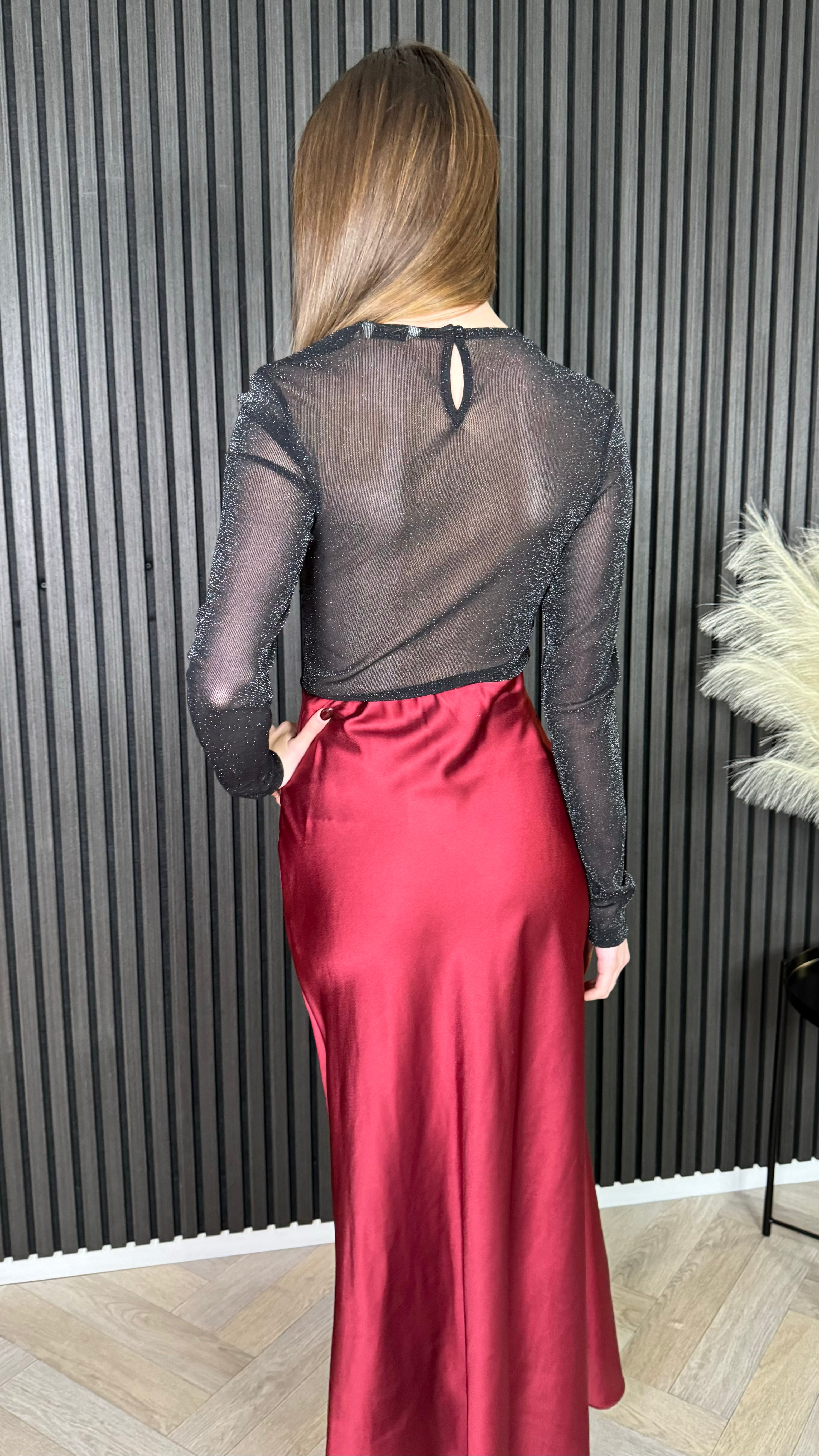 Muireann Black Sheer Sleeve Lurex Top