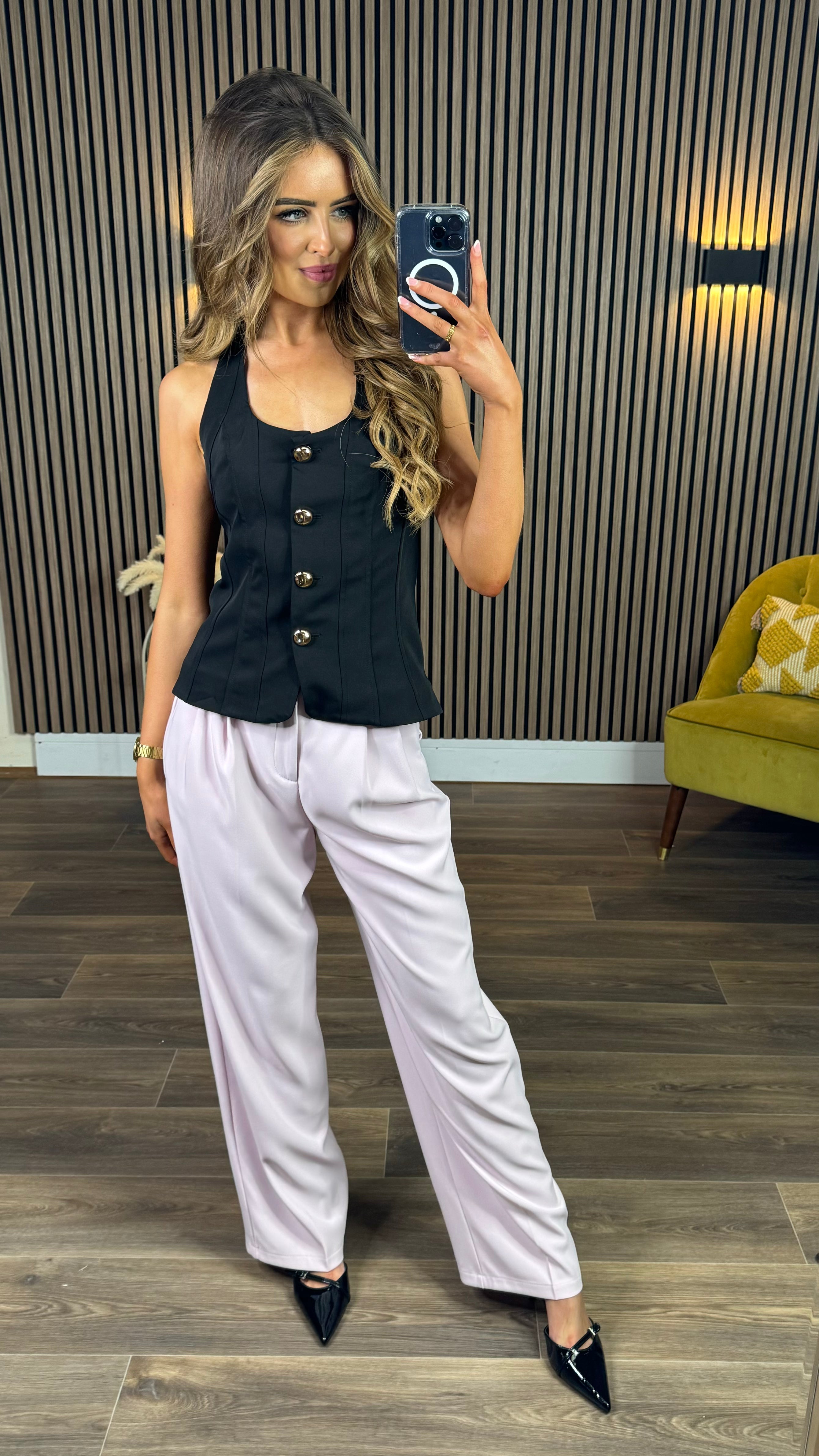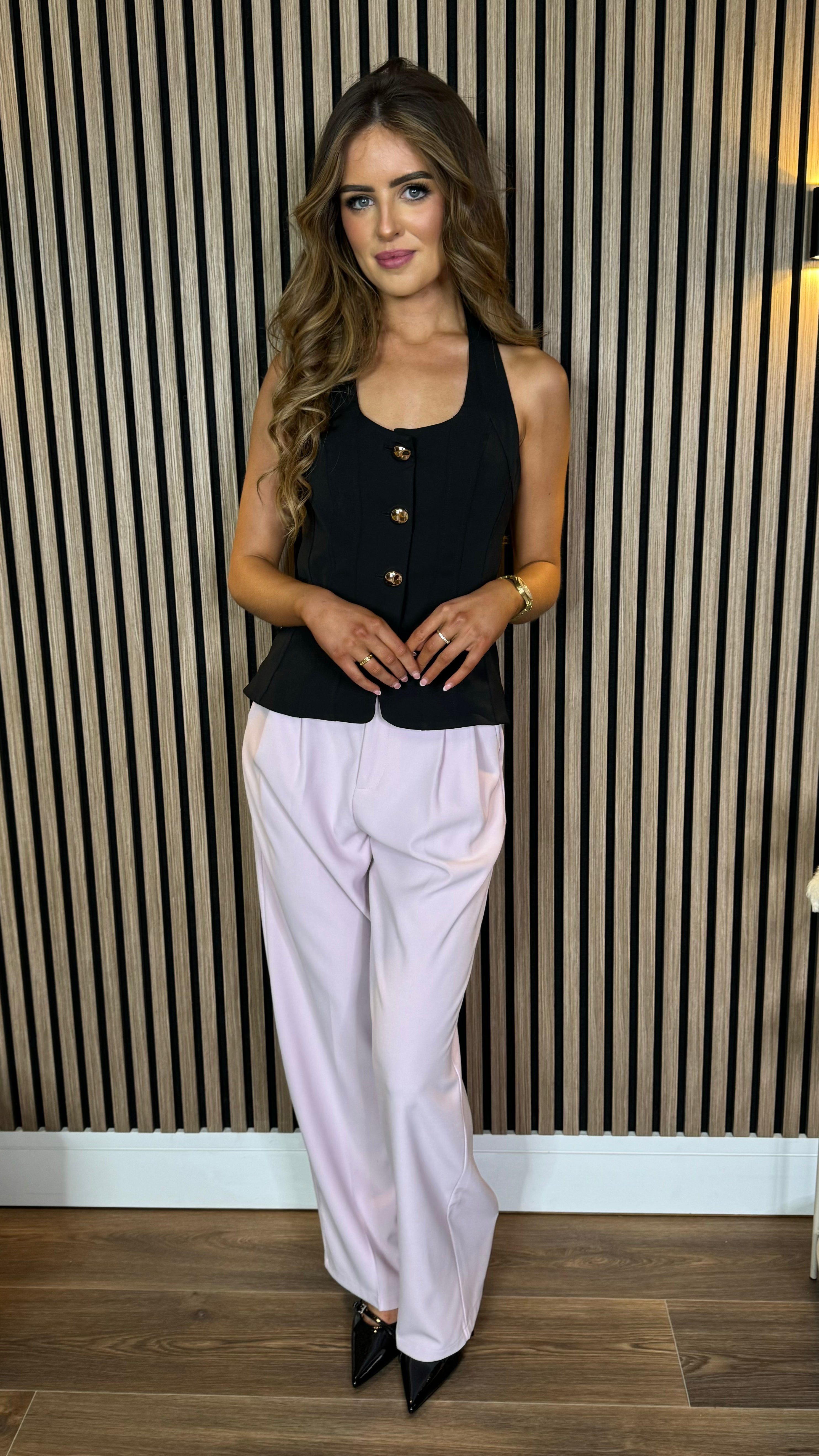 Be the ultimate fashionista with the Rowan Black Halter Neck Button Down Waistcoat! This stylish waistcoat features a fitted design and a slight flared bottom for a flattering silhouette. Perfect for adding a pop of color to any outfit. πββοΈπΈ