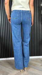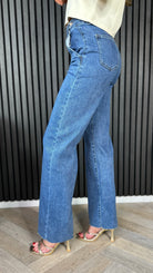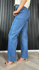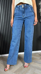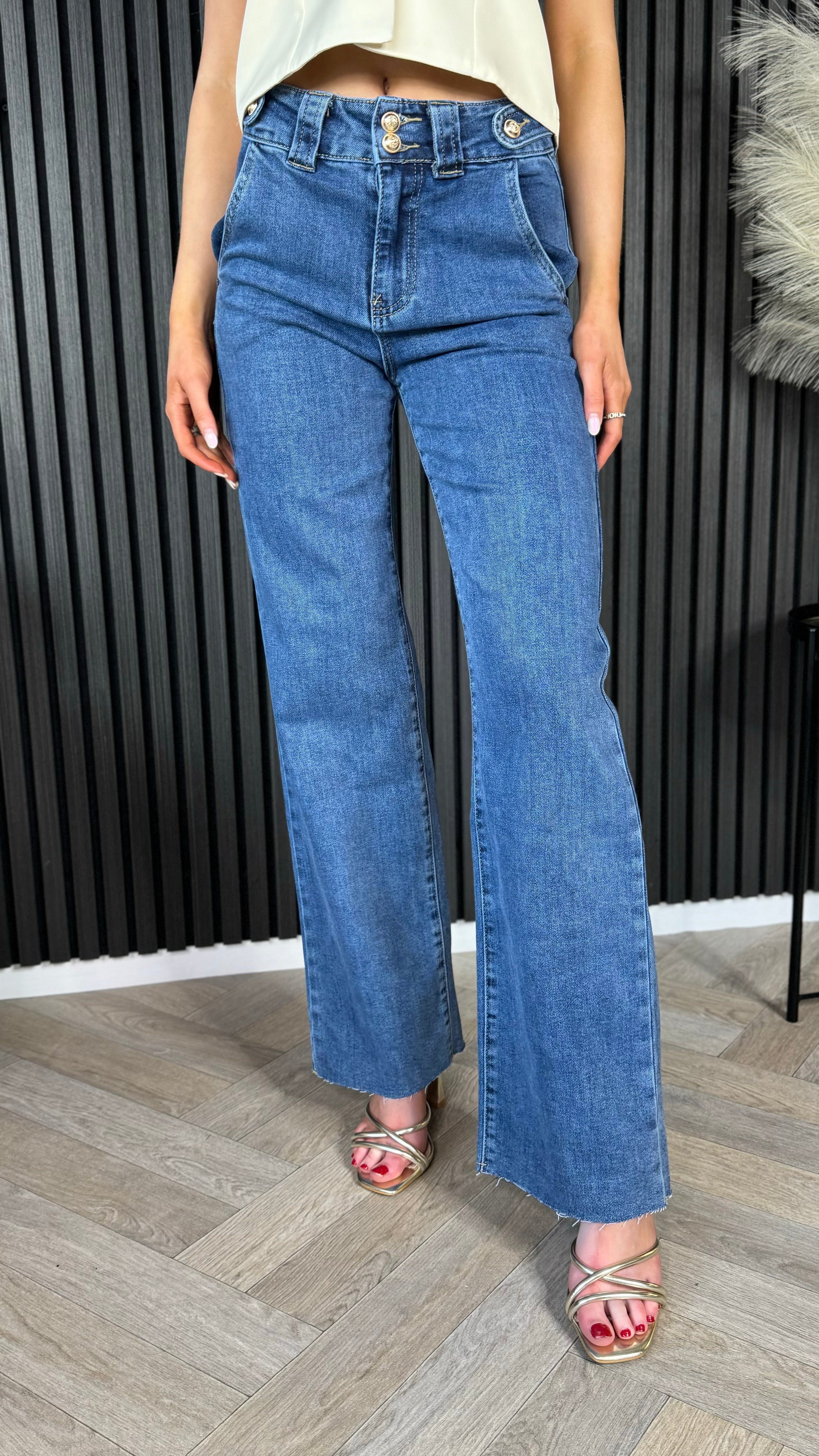 Get ready to rock these blues! Jocelyn Straight Leg Jeans feature stretch for a comfortable fit and button details on waist for added style. Frayed hems add a touch of edginess. Time to level up your denim game!