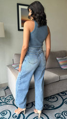 Trisha Light Blue Denim Asymmetrical Waist Wide Leg Jeans