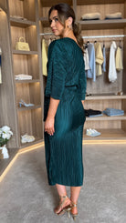 Unabelle Dark Green Plisse Off-Shoulder Dress