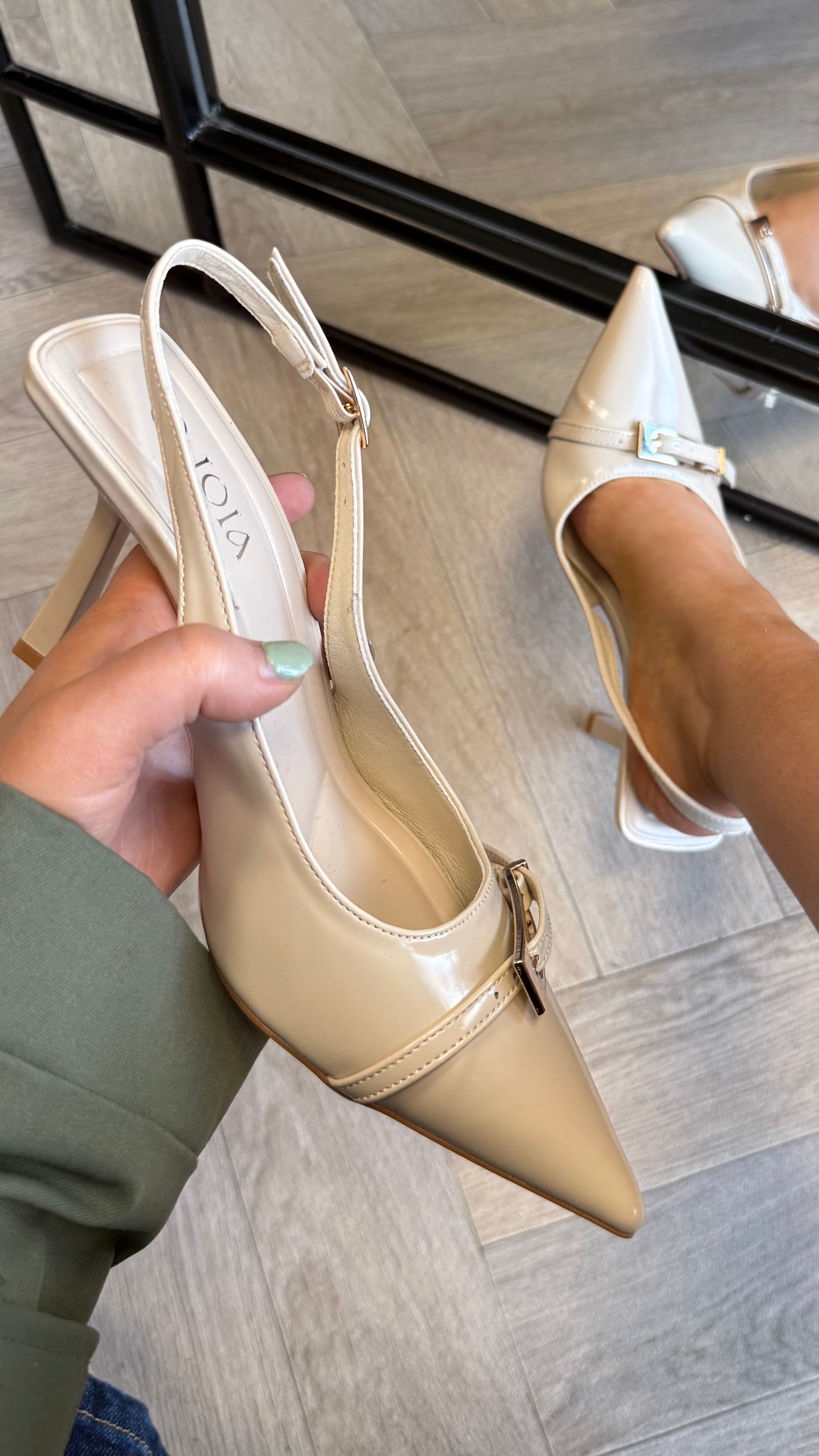 Romy Beige Slingback Faux Leather Buckle Detail Stiletto Heels