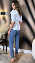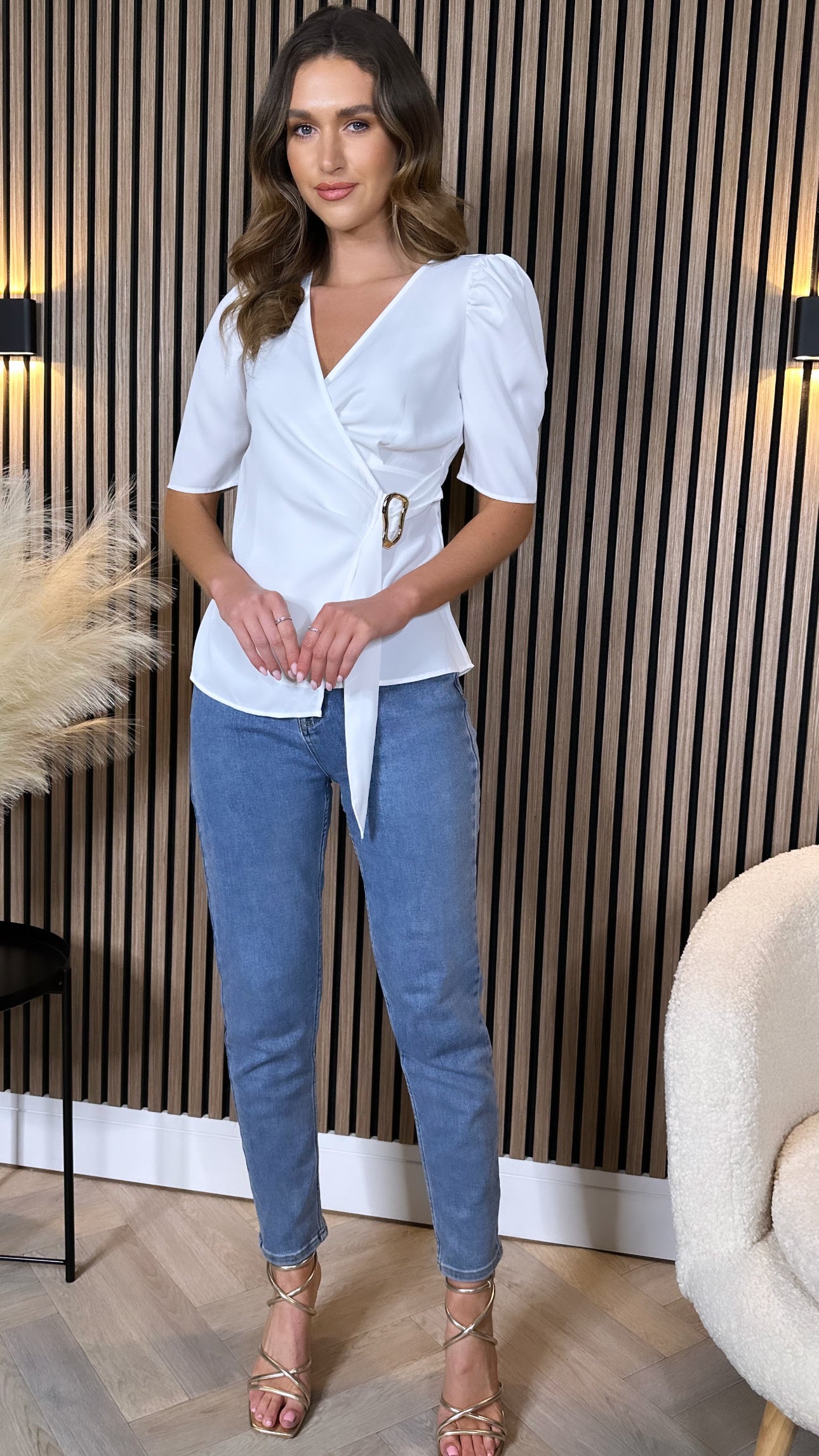 Eliora White Wrap Effect Belted Detail Top