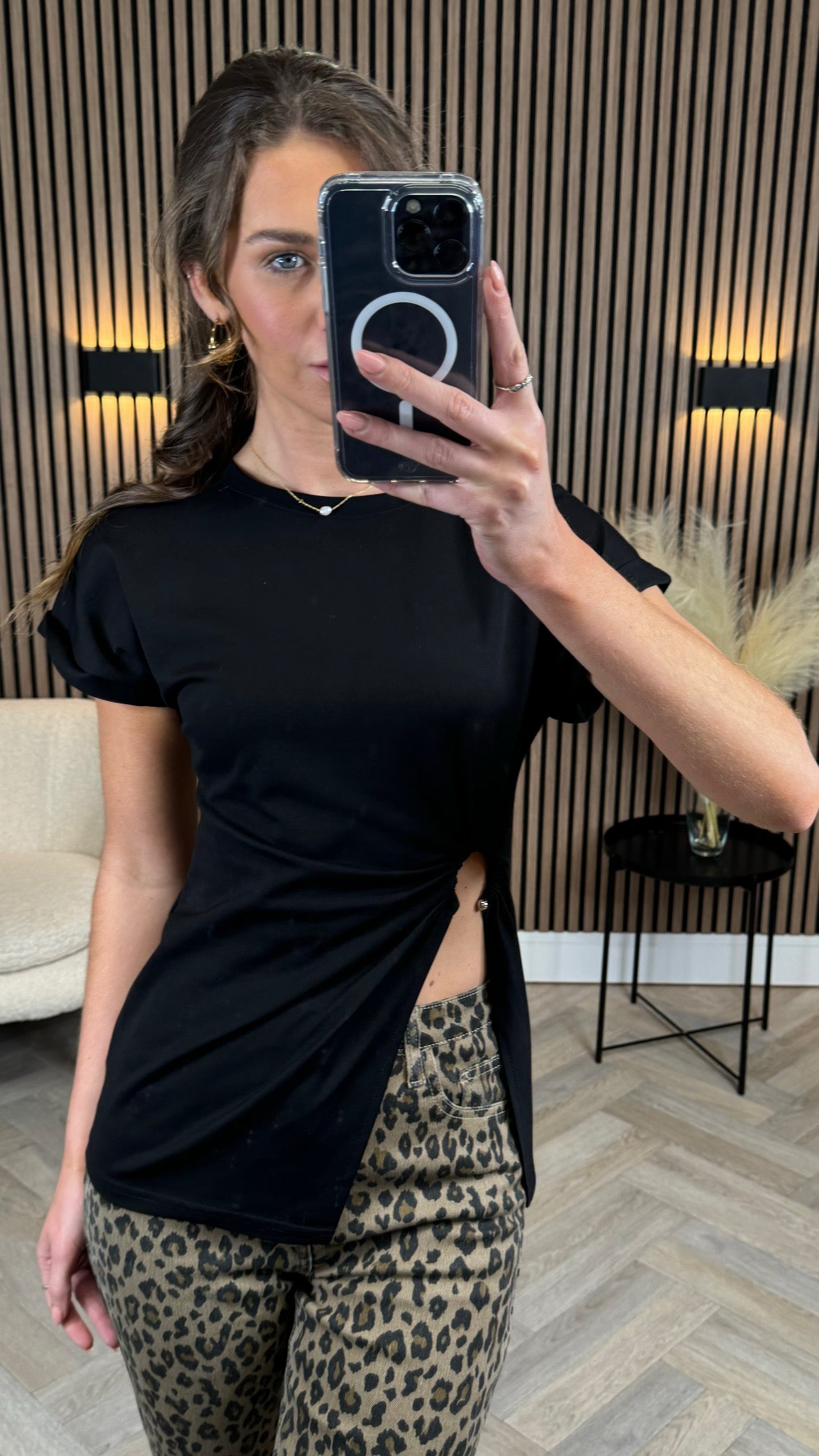 Hallie Black Cut Out Ruched Detail T Shirt