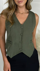 Unleash your inner button lover with Maude's Button Down Waistcoat. Covered buttons add a touch of sophistication to this wardrobe staple. Perfect for any stylish occasion. 😍