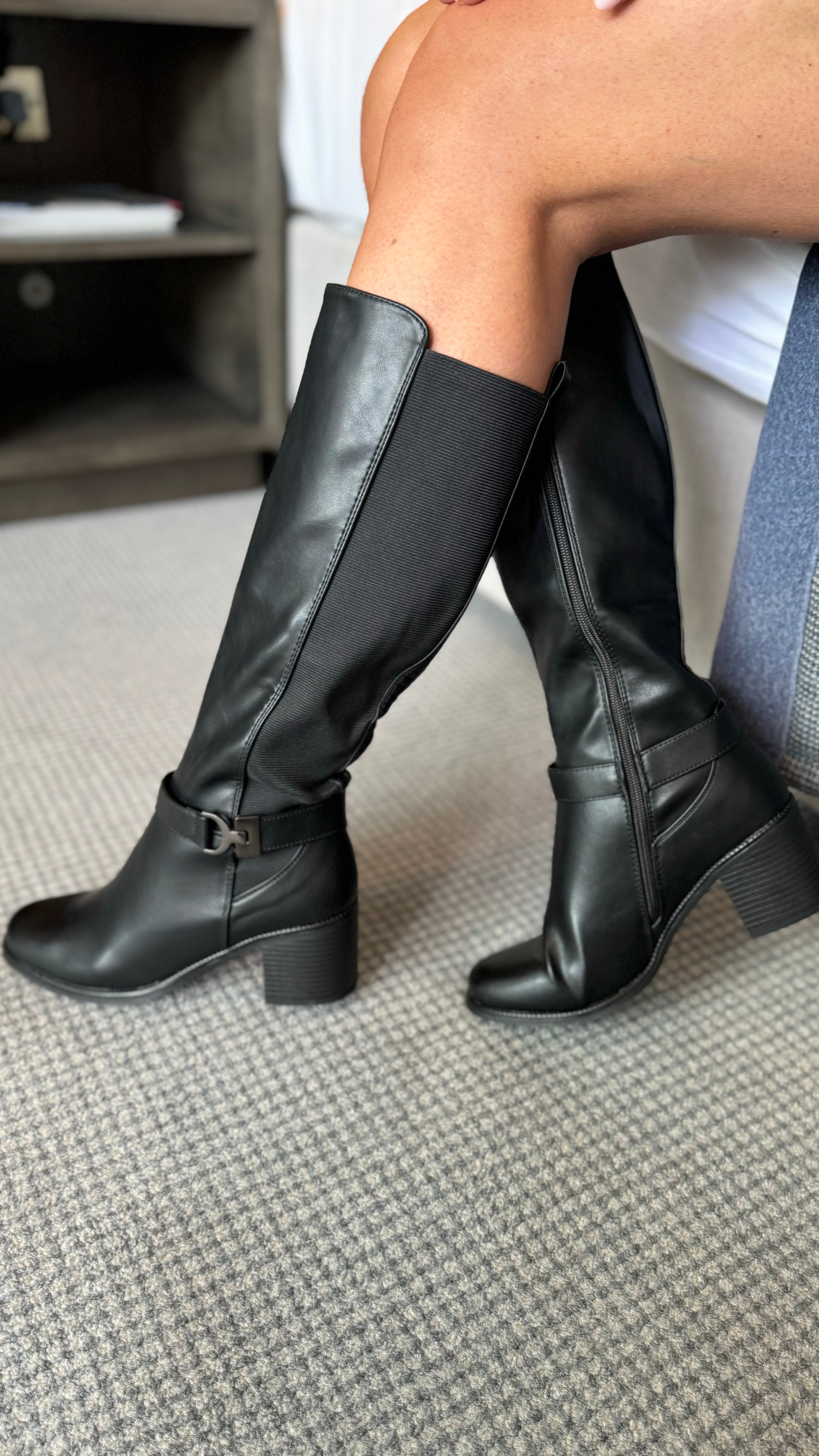 Grace Black Knee High Block Heel Boots