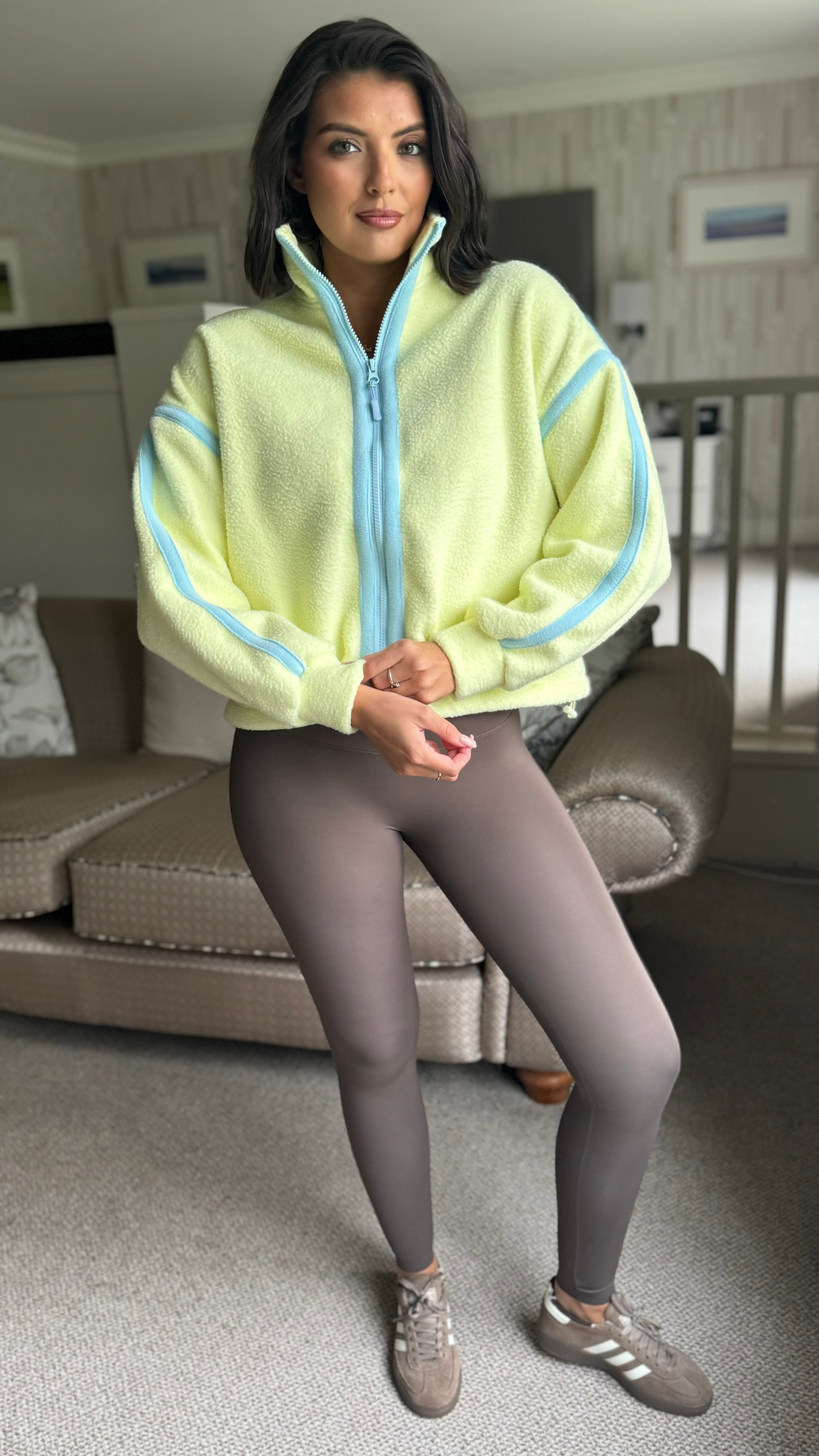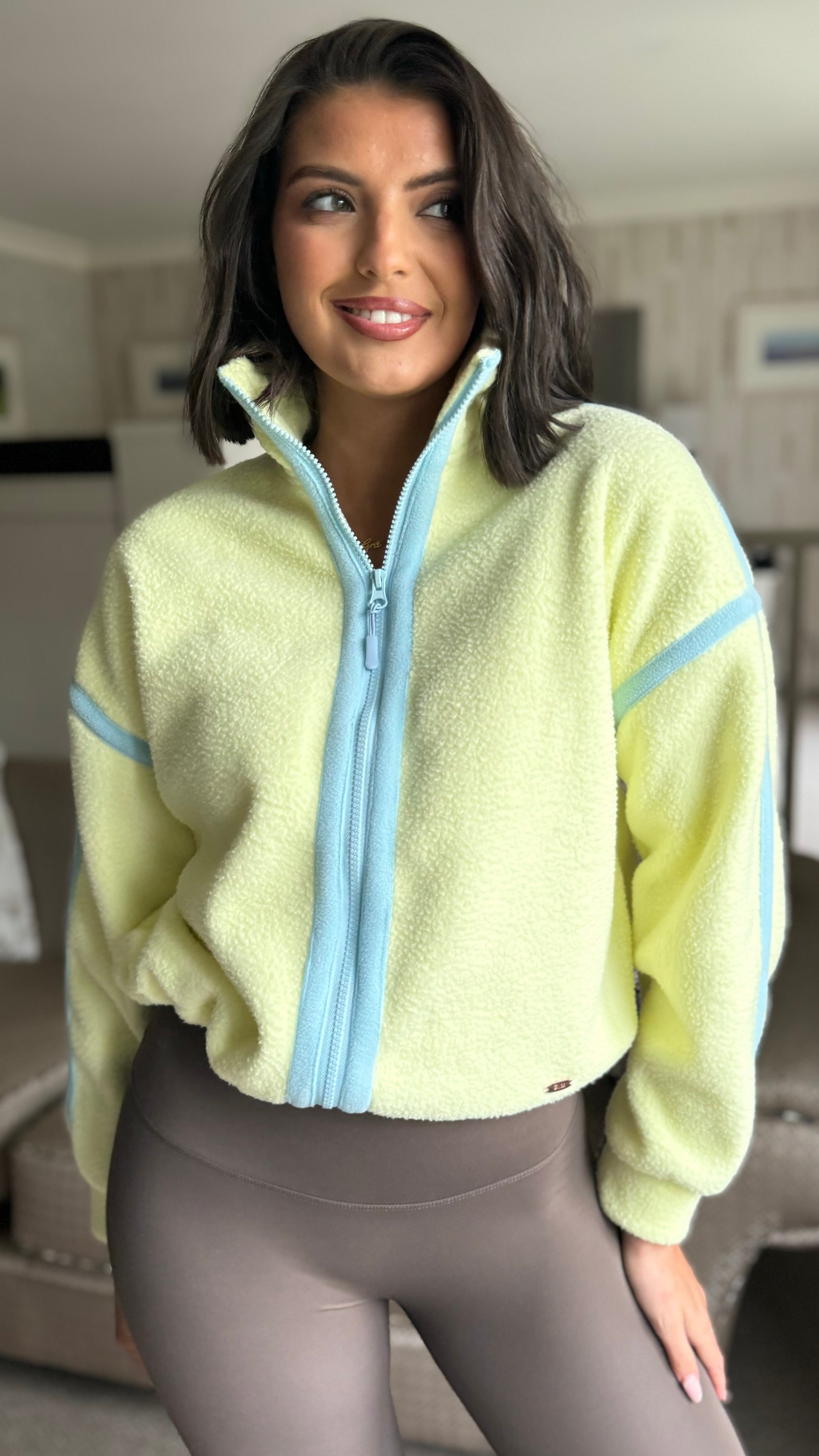 Danielle Yellow Contrast Full Zip Fleece