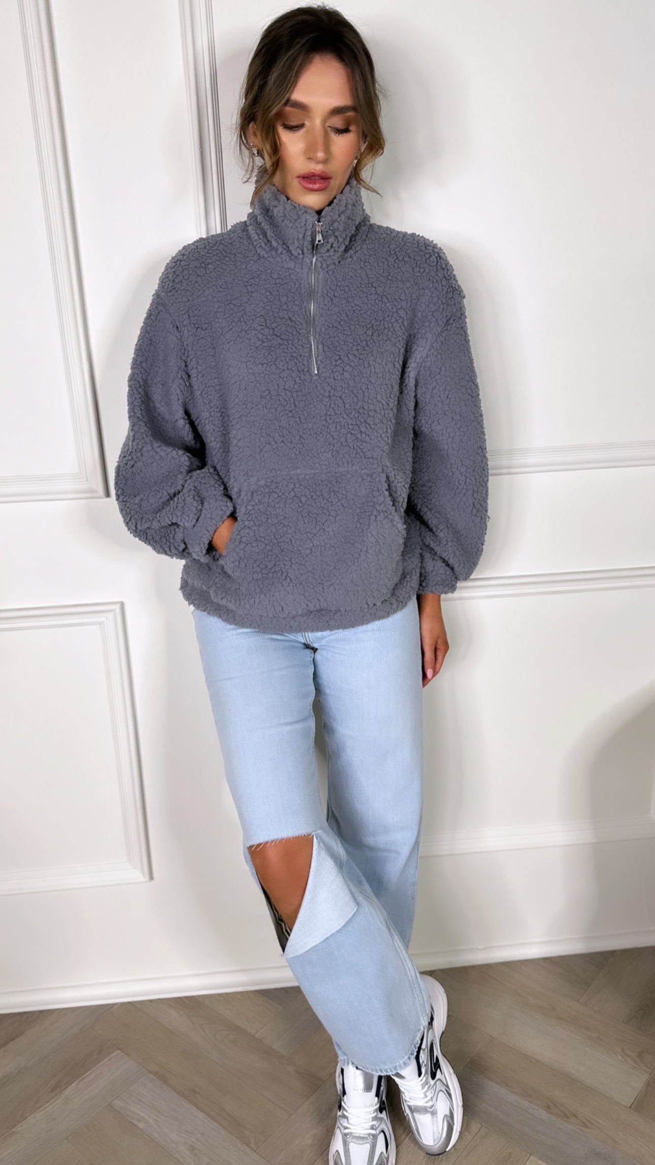 Sizing info: Our model Lauren is usually a UK 8 and this fleece would fit a UK 8-16.