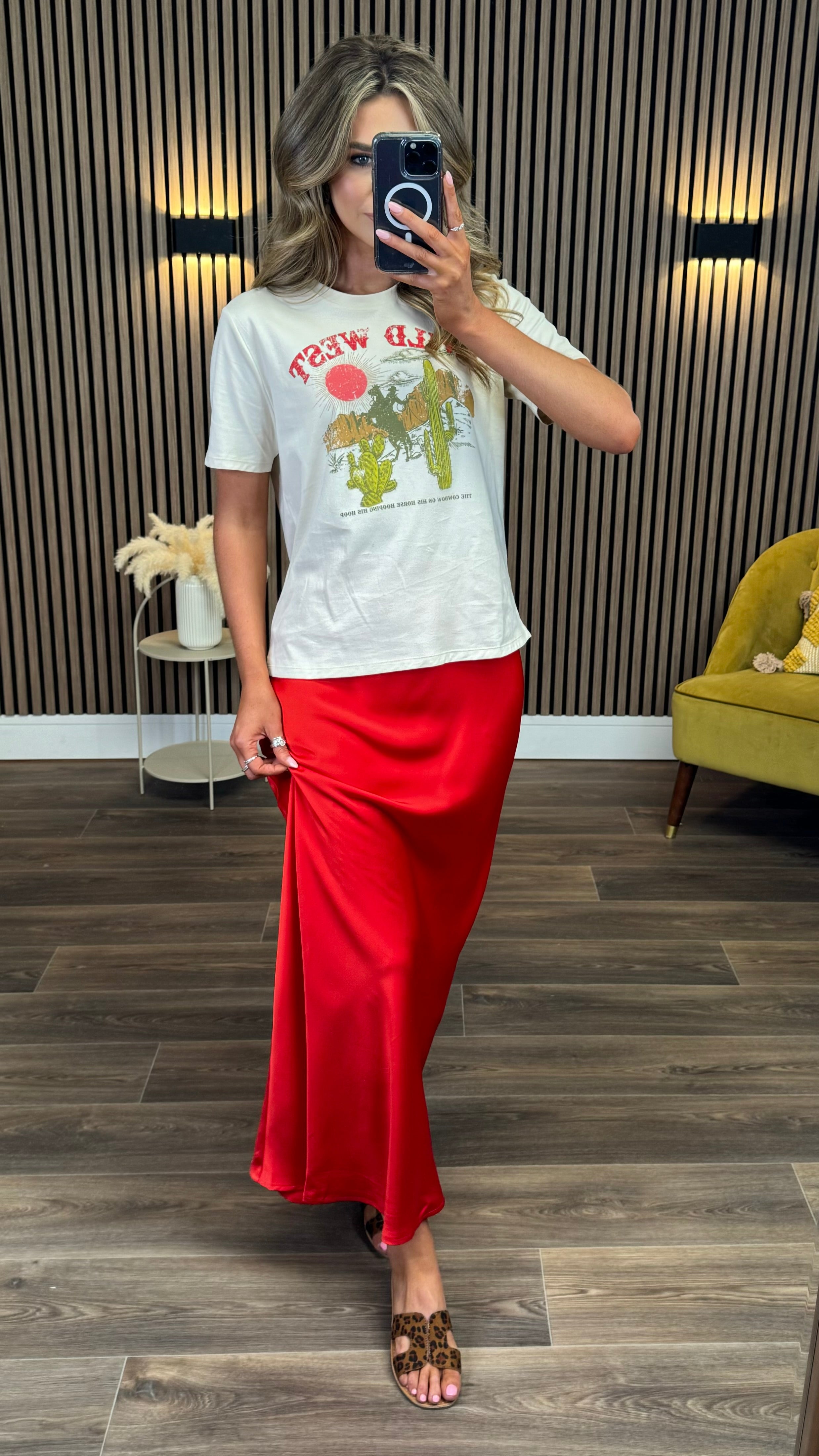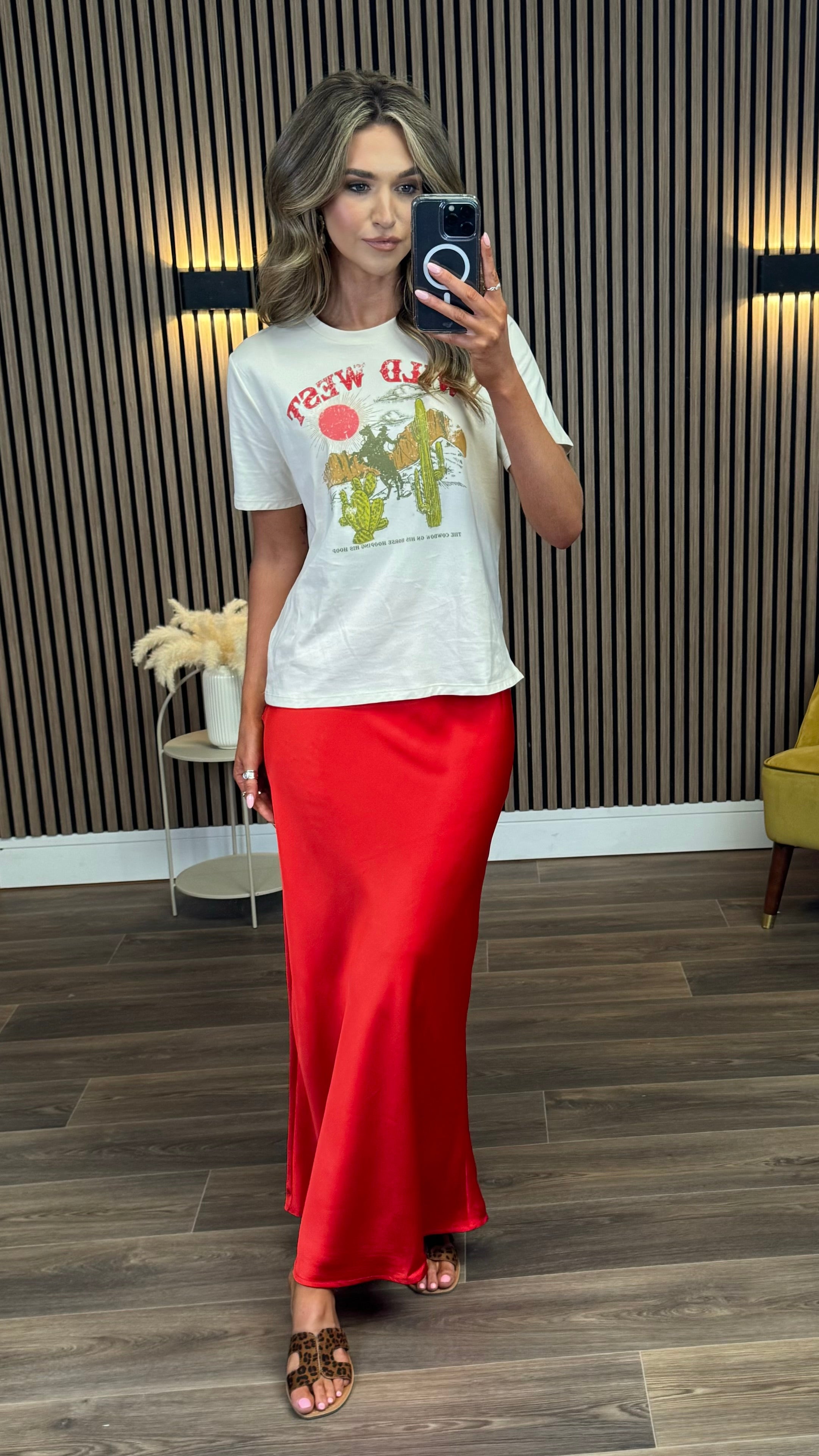 Swirl into style with our Kaeva Red Midi Skirt! This vibrant number adds a pop of fiery confidence to any wardrobe. Perfect for twirling through coffee dates or dancing the night away, its flattering midi length keeps things fun yet sophisticated. Go ahead, make them do a double-take!
