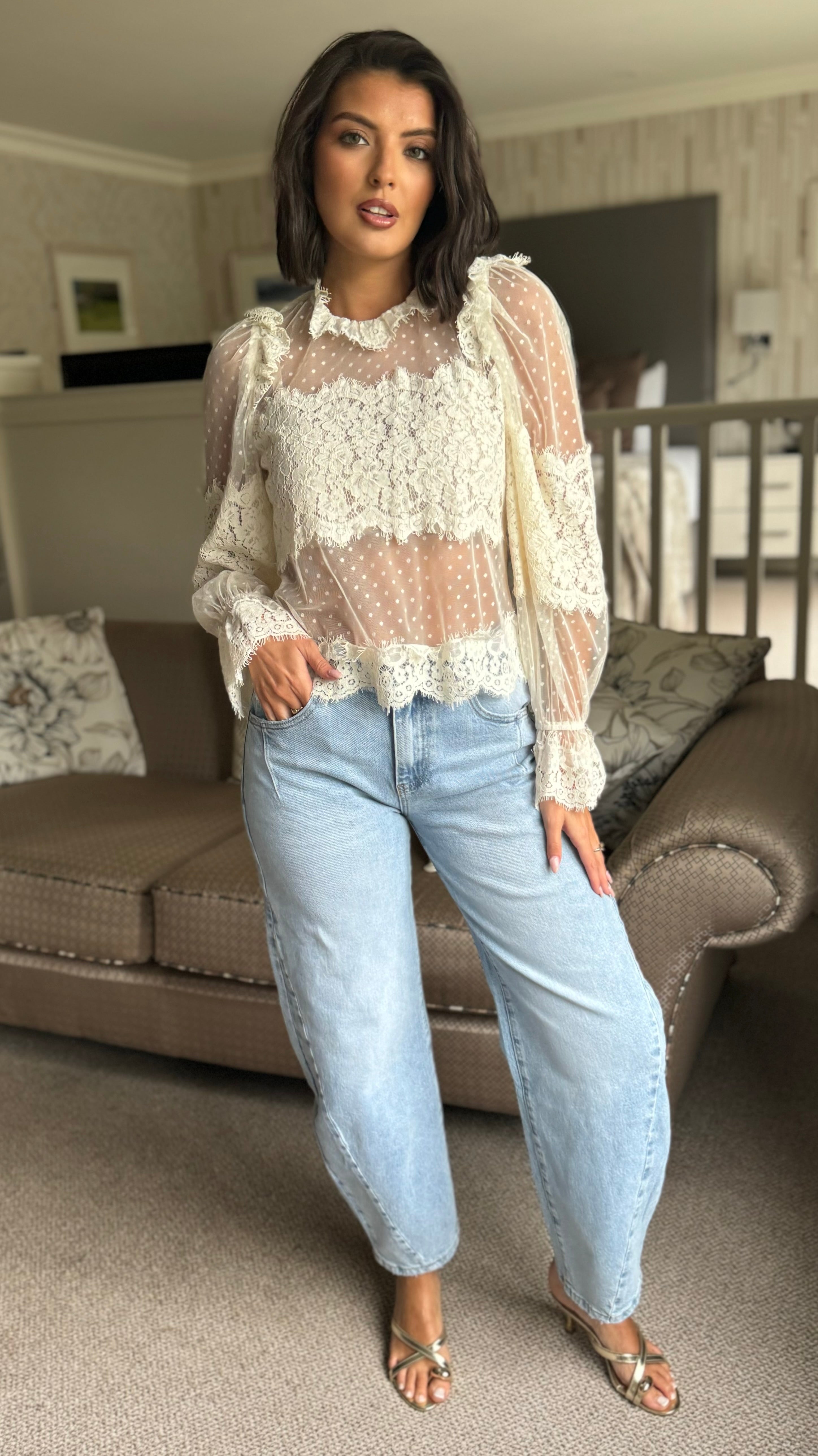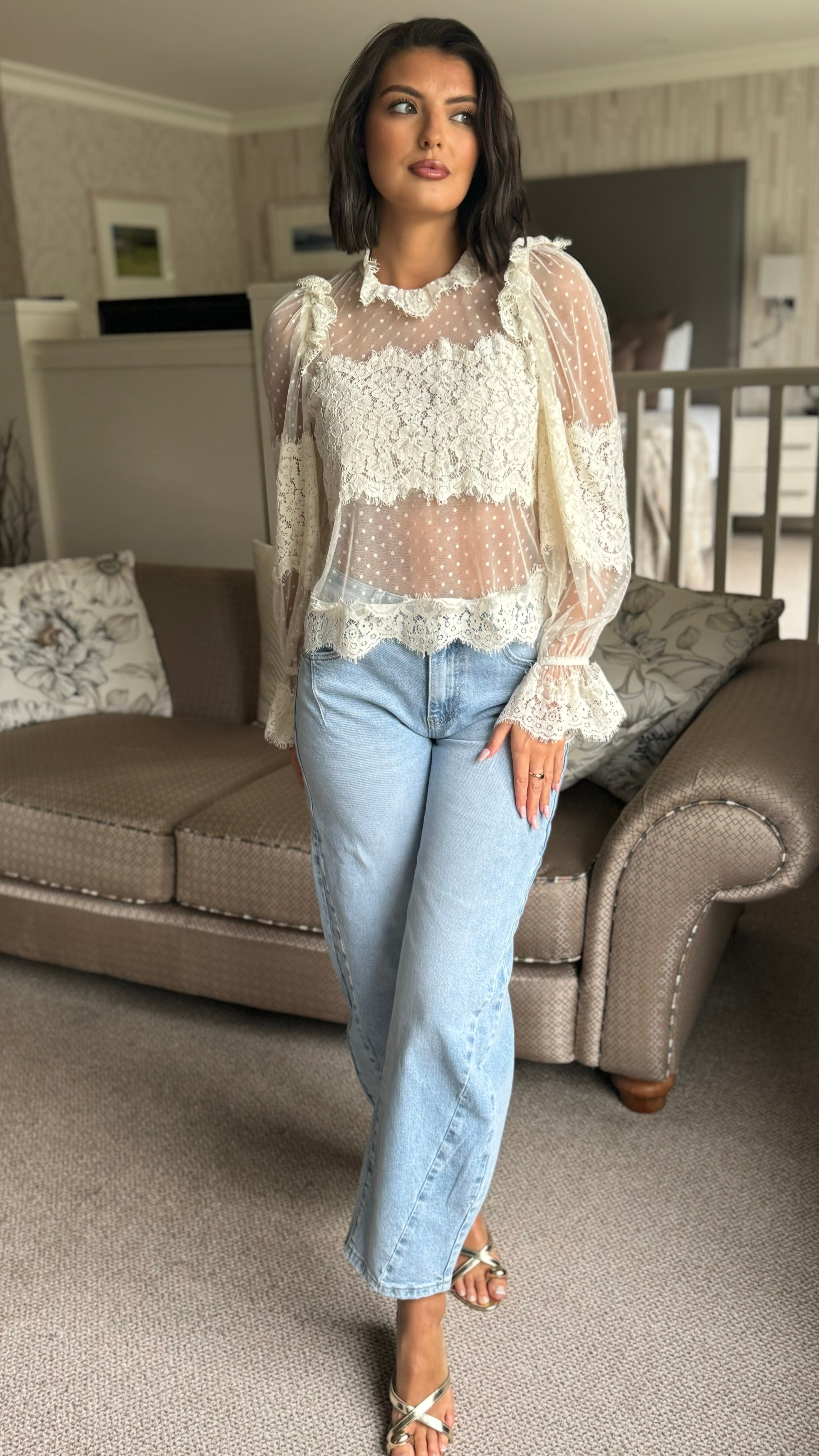 Fiona Cream Polka Dot Lace Detail Top