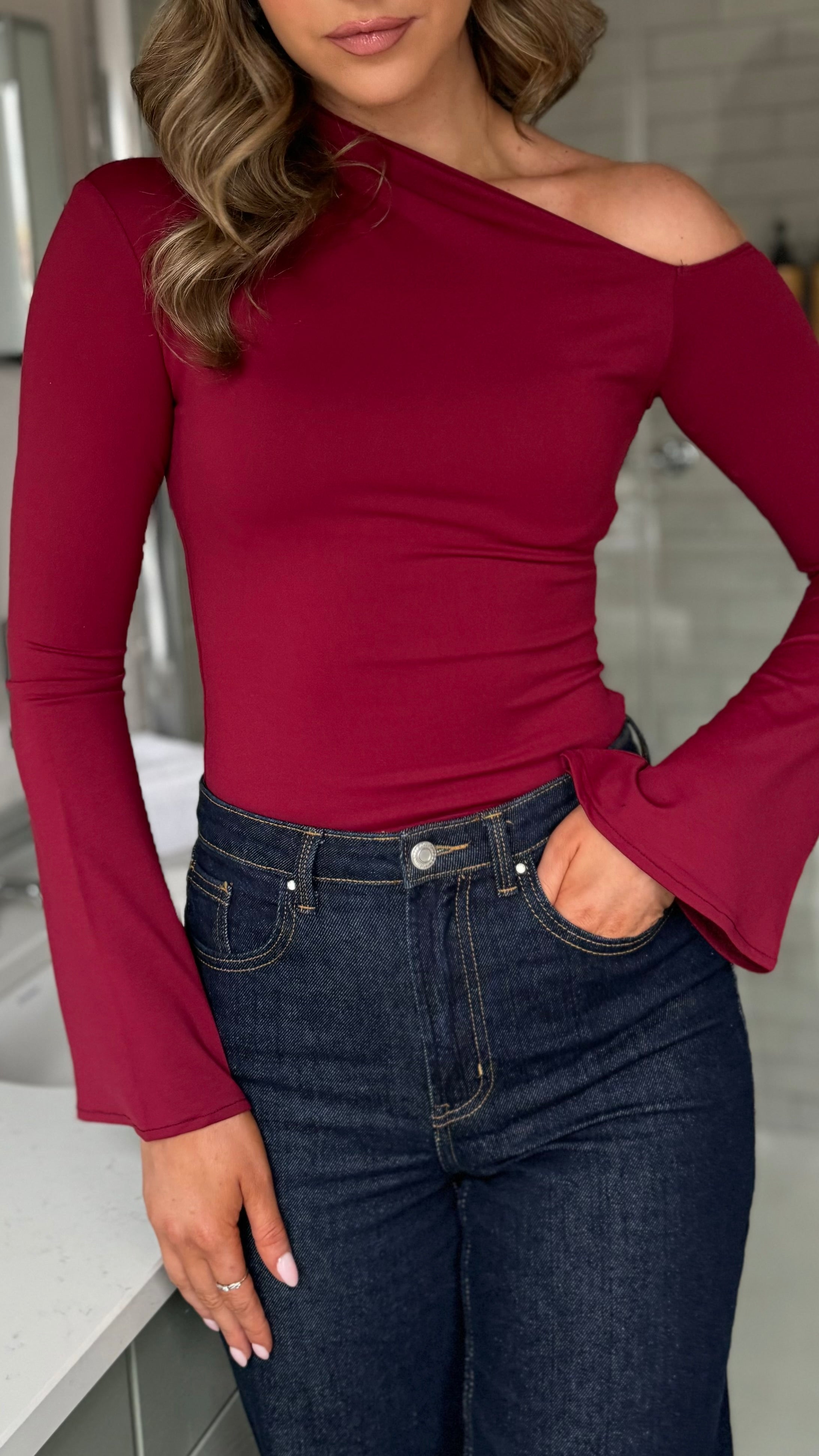 Unleash your edgy side with the Priya Asymmetric Long Sleeve Top! This playful piece features a chic asymmetric neckline that adds instant edge, paired with flattering bell sleeves for a touch of retro flair. Crafted from soft, stretchy fabric, it moves with you all day. Perfect for dressing up or down, this versatile top brings attitude and comfort together in one fabulous package.