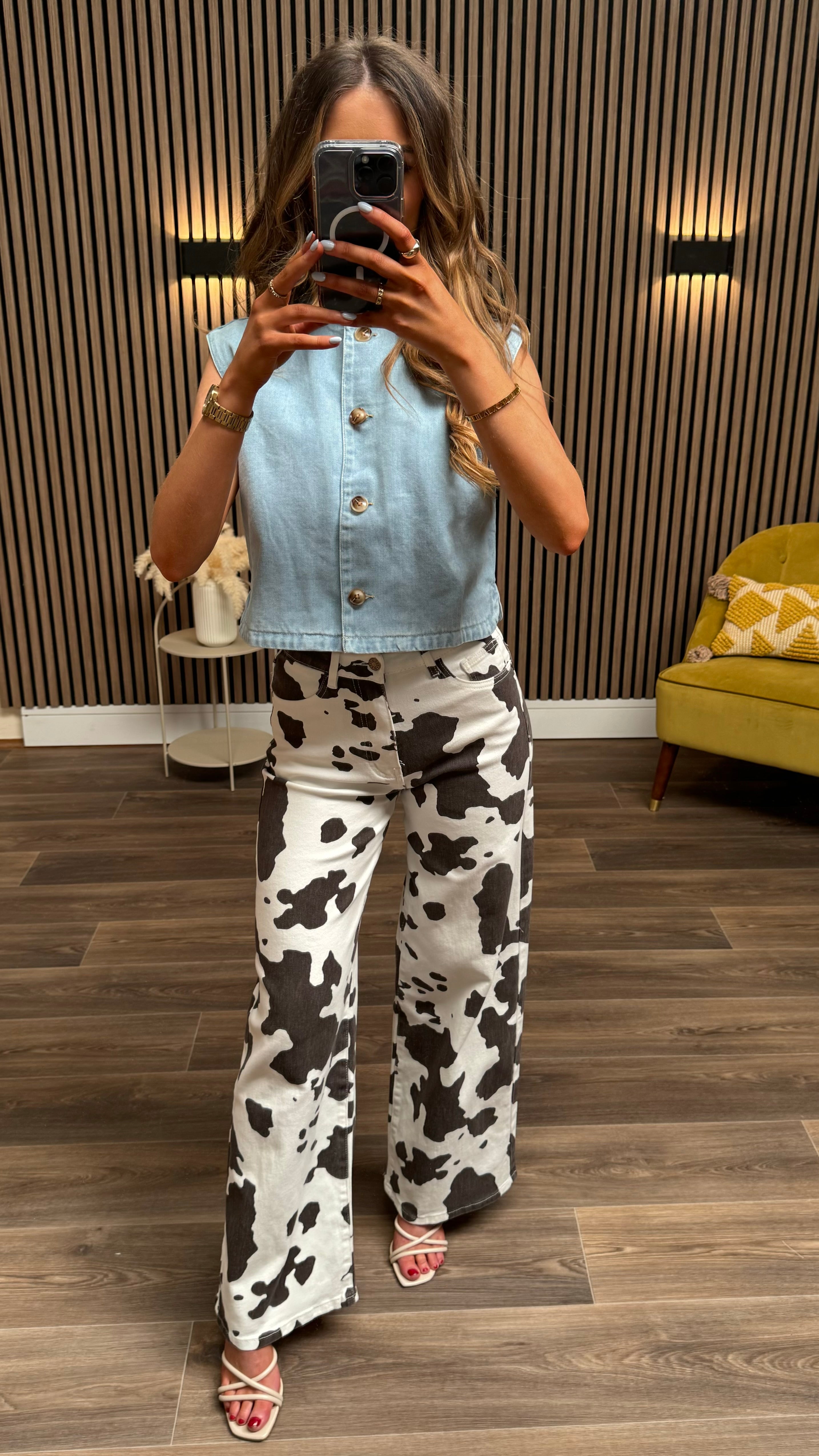 Marcia Cow Print Brown & White Jeans