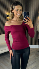 Corley Burgundy One Shoulder Fitted Top