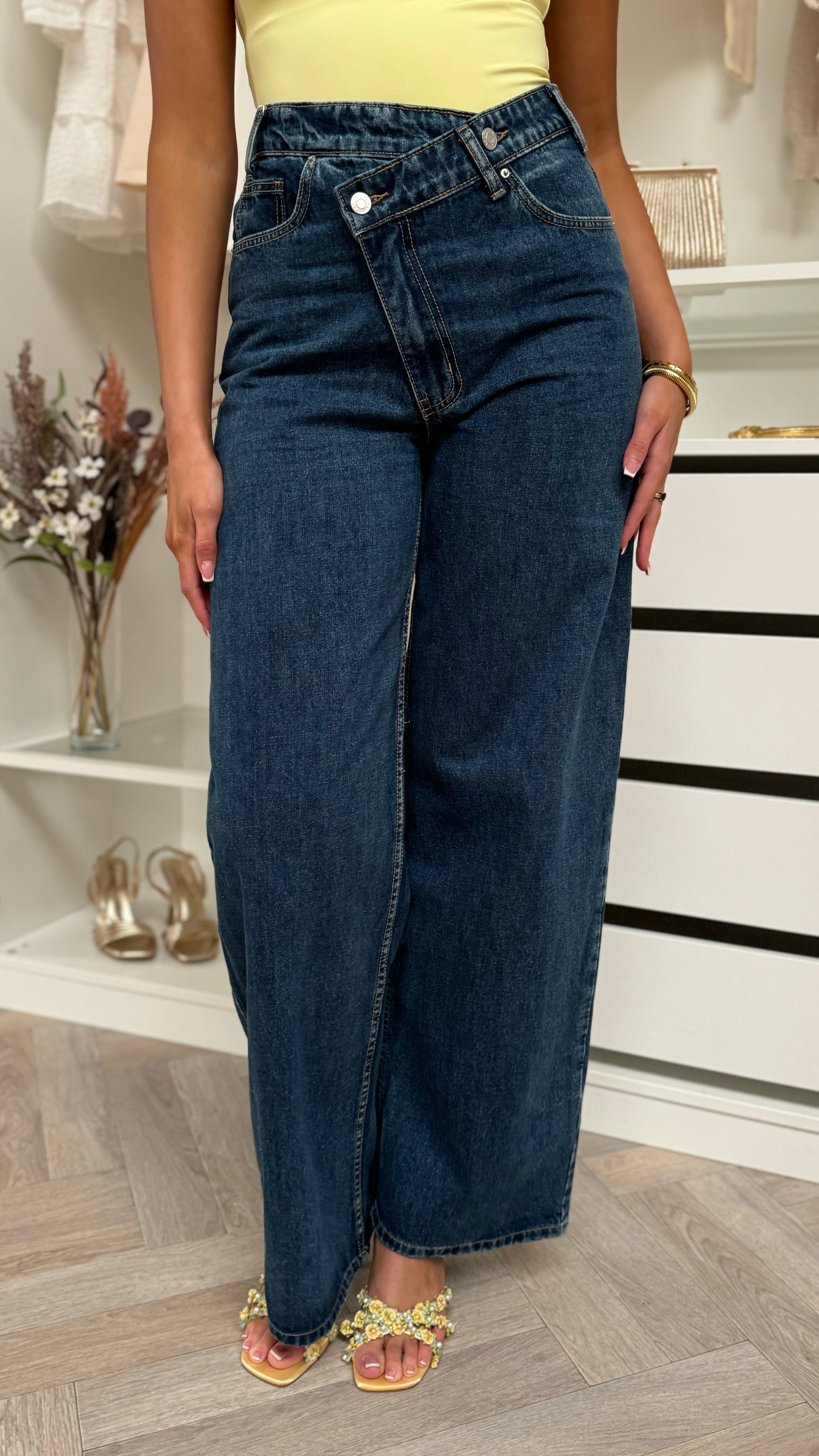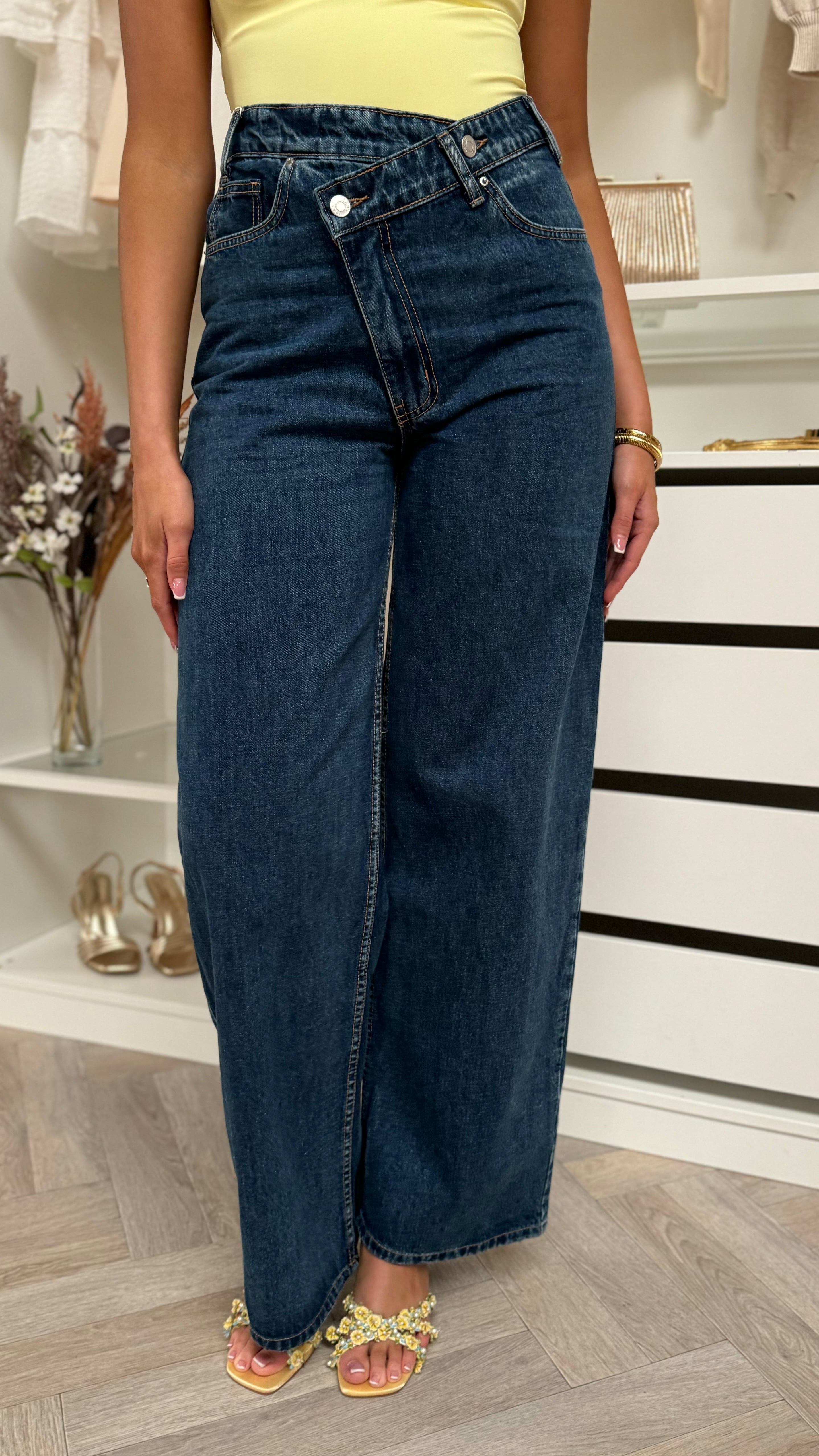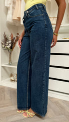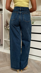 Trisha Dark Blue Asymmetrical Waist Wide Leg Jeans