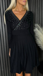 Emily Black Embellished Detail Knit Pleated Mini Dress
