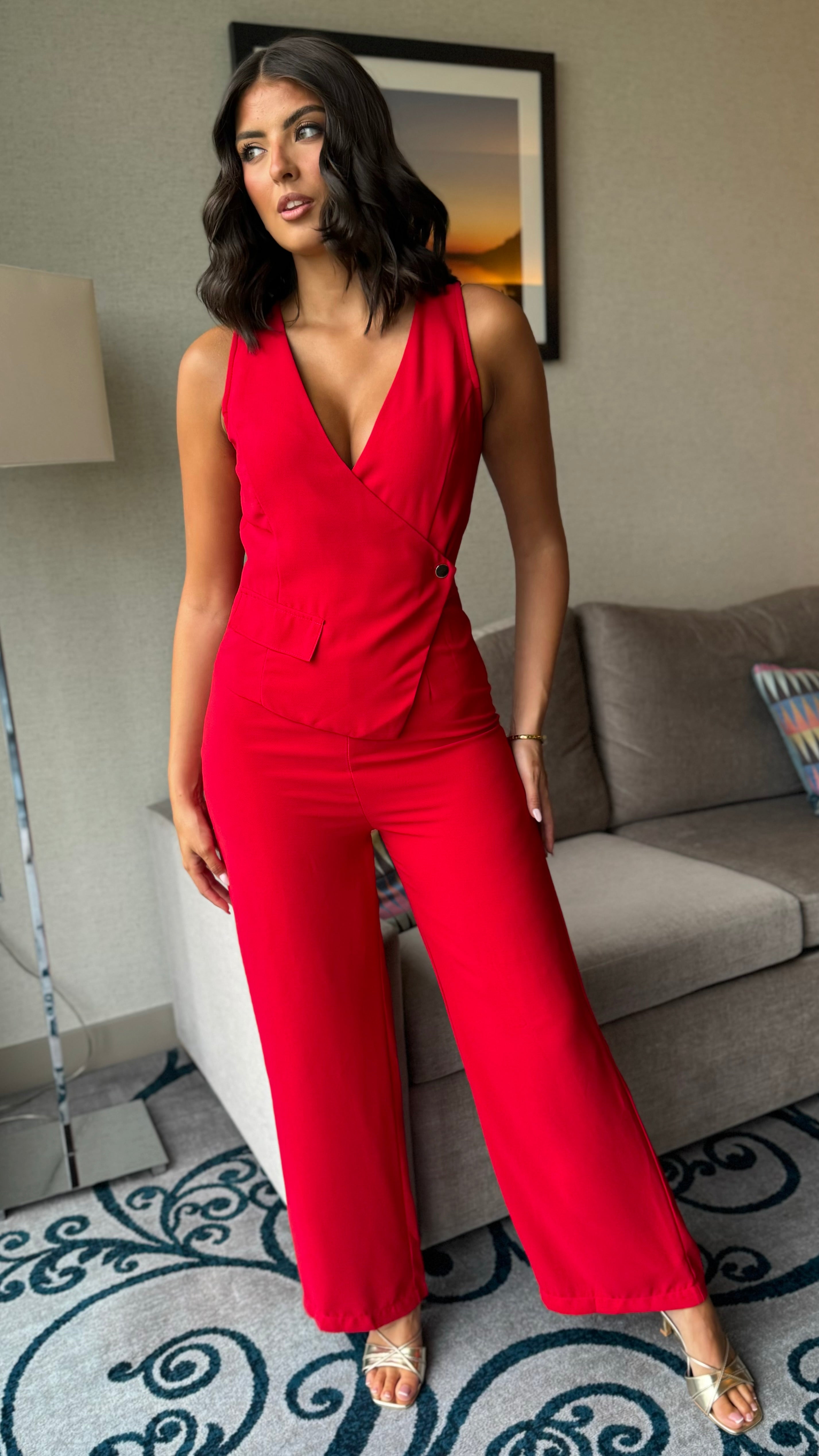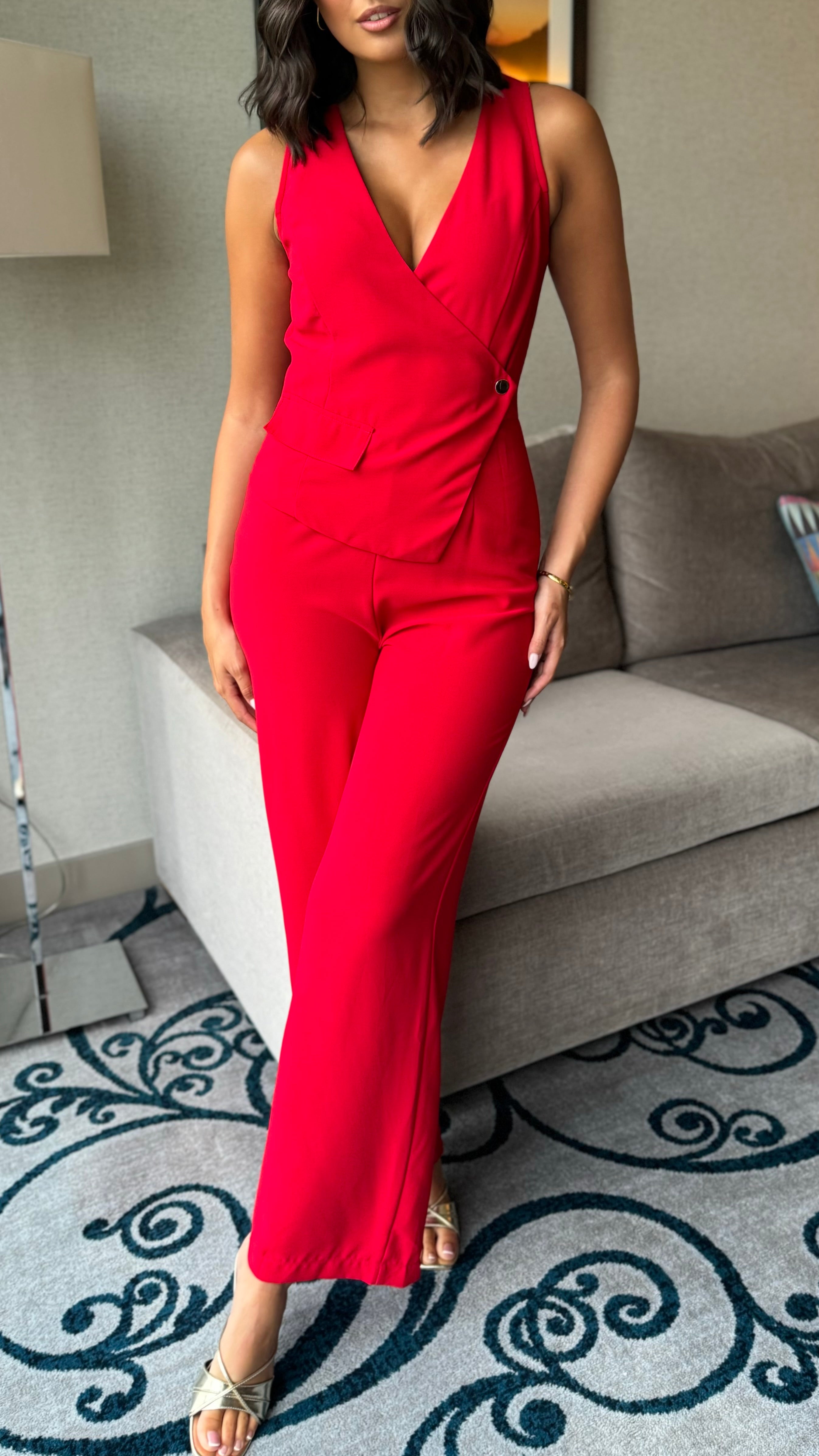 Make a striking impression with the Myla Red Sleeveless Jumpsuit 🔴. Designed for elegance and comfort, its clean lines and vibrant colour create a refined look ideal for any upscale occasion. The sleeveless style adds a modern touch, ensuring you stay cool and confident all day or night. ✨
