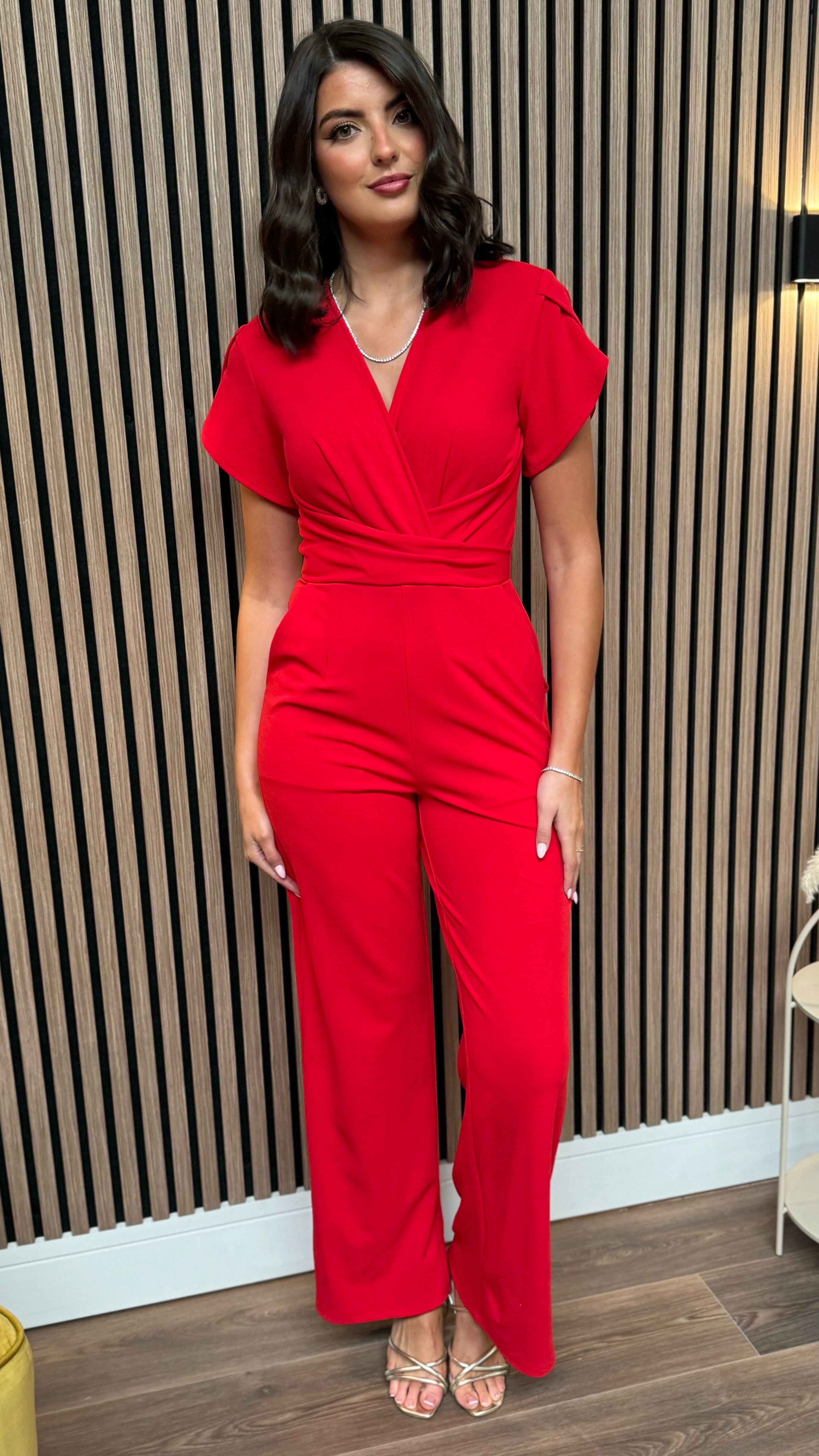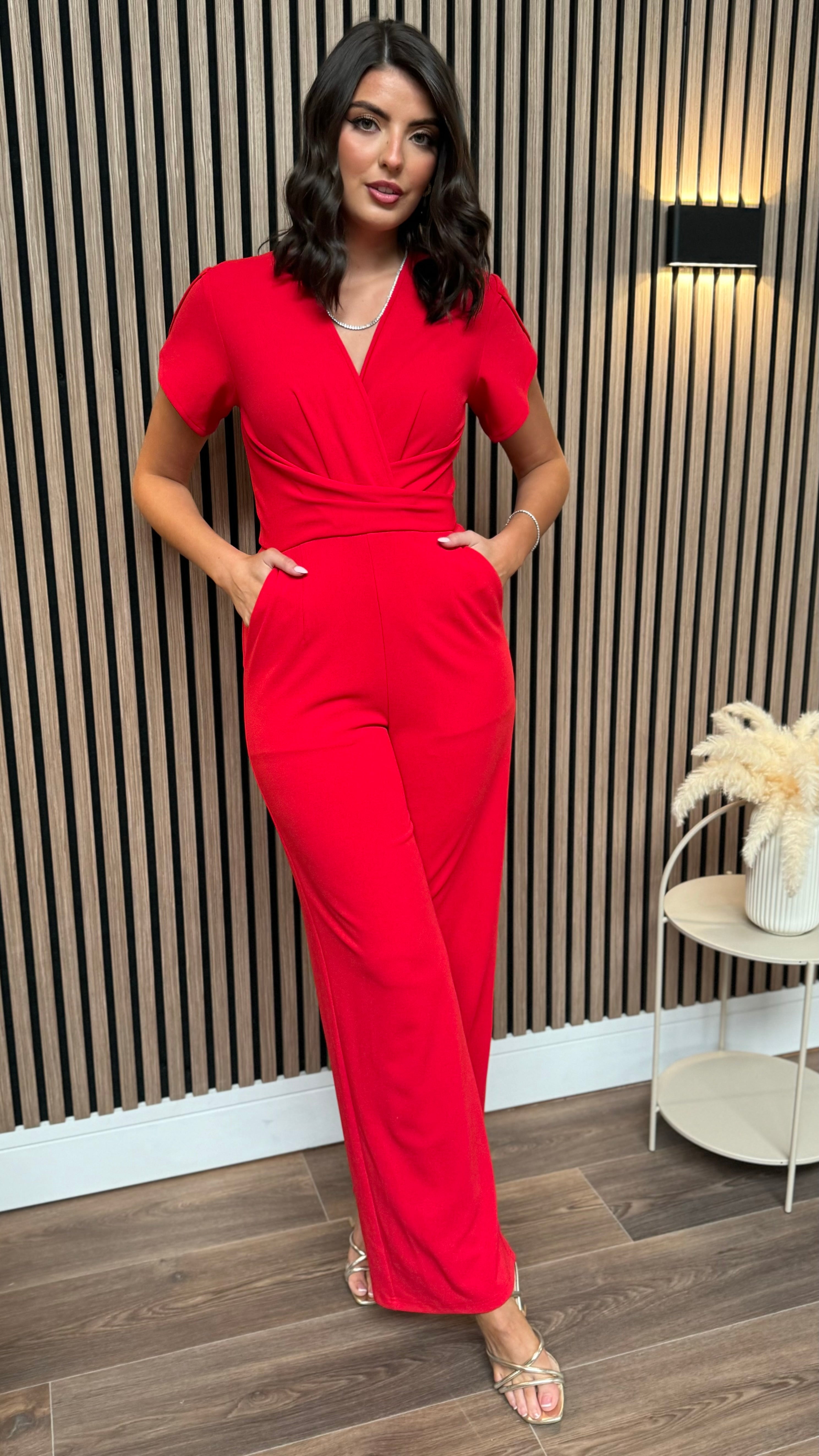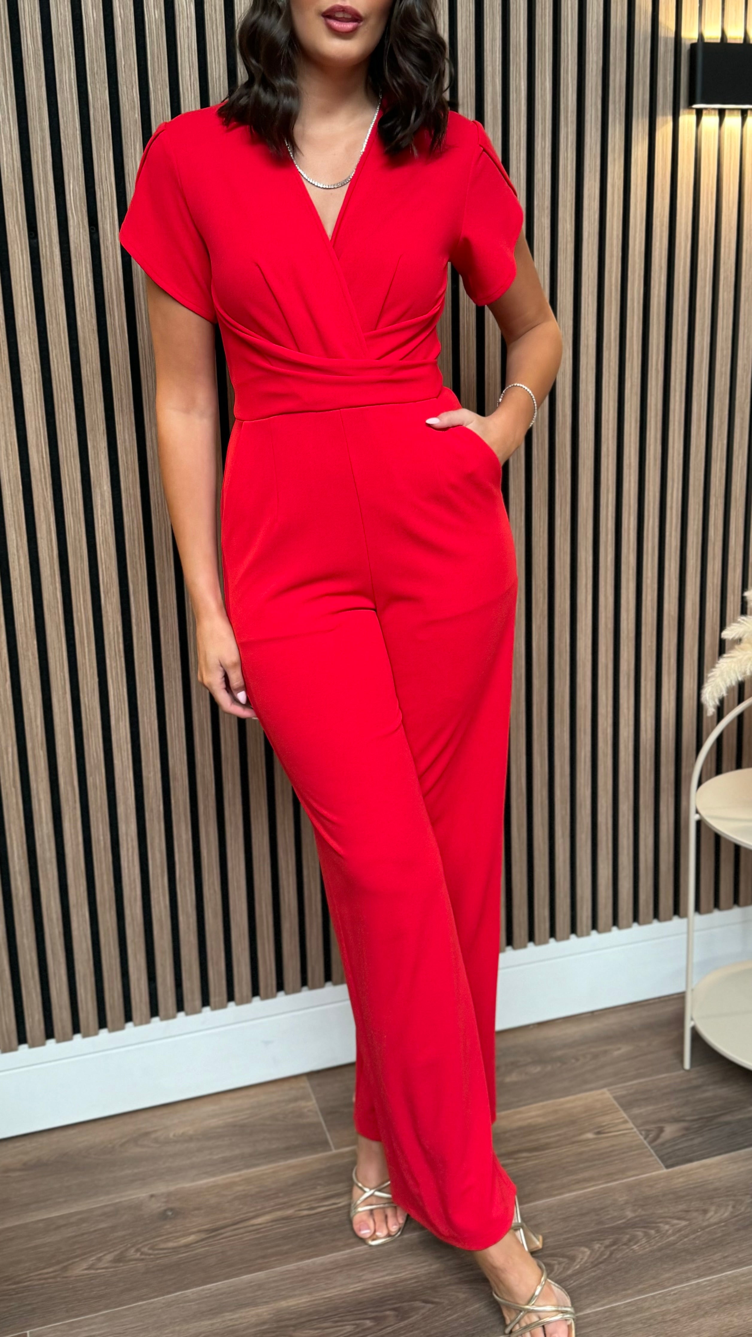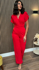 Paloma Red Twist Font Split Sleeve Jumpsuit