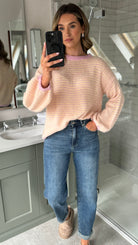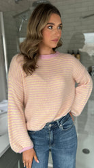 Make a statement with the Adelina Yellow & Pink Stripe Jumper, where bold stripes meet effortless style. This oversized beauty features charming balloon sleeves that add a playful twist, while the relaxed round neckline keeps things casual and cool. Contrast detailing at the neck and hem adds a cheeky pop of definition. Perfect for layering or wearing solo, it's the kind of piece that turns heads and sparks joy.