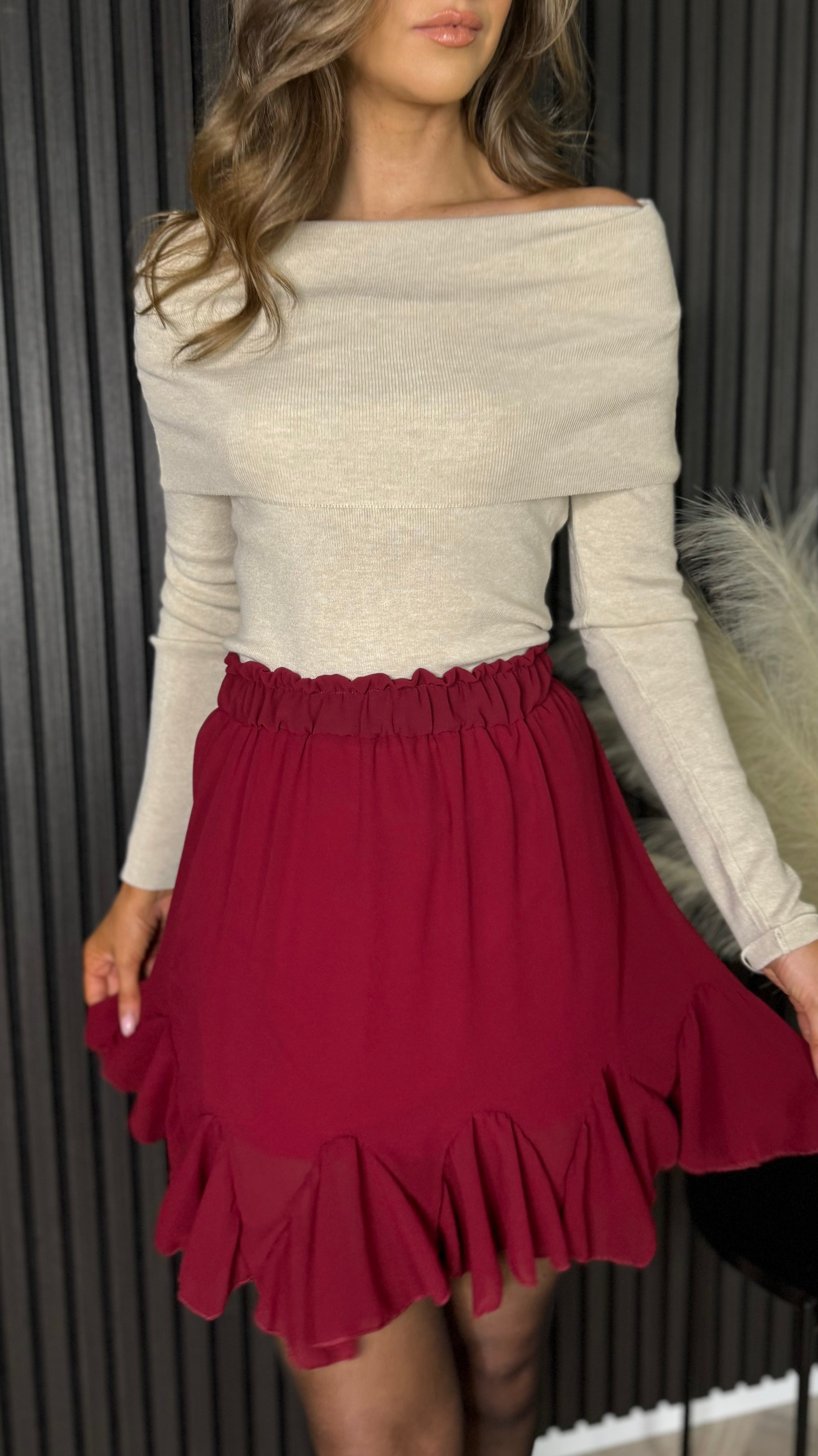 Get cozy and stylish with the Bianca Beige Soft Knit Bardot Jumper. This fine knit jumper boasts a unique Bardot folded neckline and long sleeves, perfect for showcasing your playful and stylish side. Say goodbye to boring sweaters and hello to this quirky and fun addition to your wardrobe.