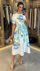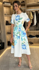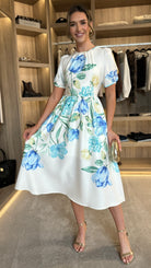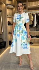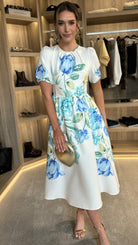 Clodagh White & Blue Floral A Line Midi Dress