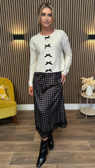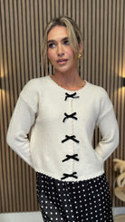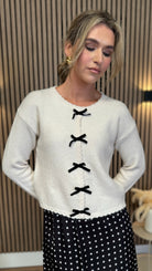 Aileen Cream & Black Velvet Bow Detail Jumper