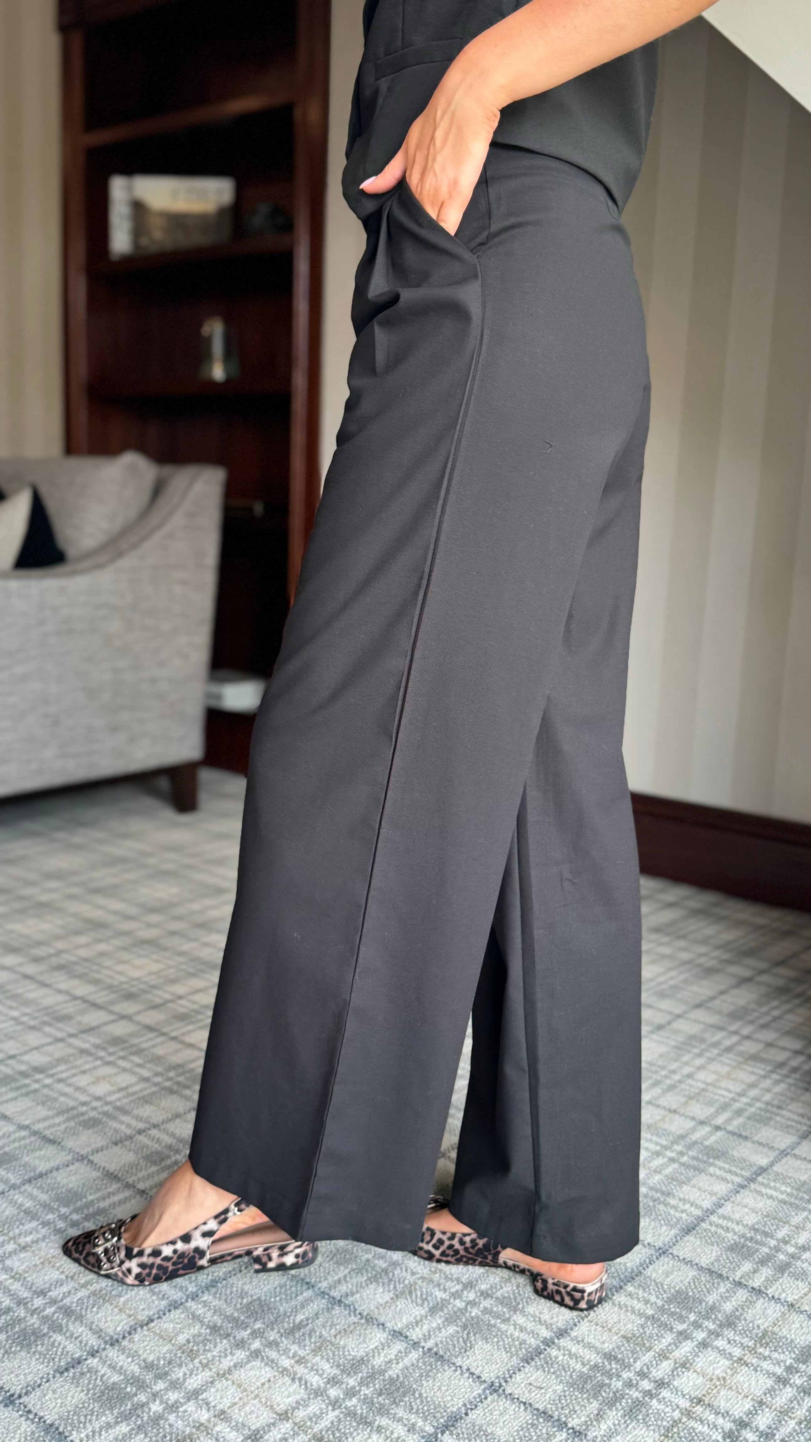 Introducing our Alice Black Waistcoat and Wide Leg Trouser Co-Ord. Crafted from a linen mix material, this set features a button front waistcoat with elegant horn buttons and a pleat front on the wide leg trousers. Elevate your look with this sophisticated and exclusive ensemble.