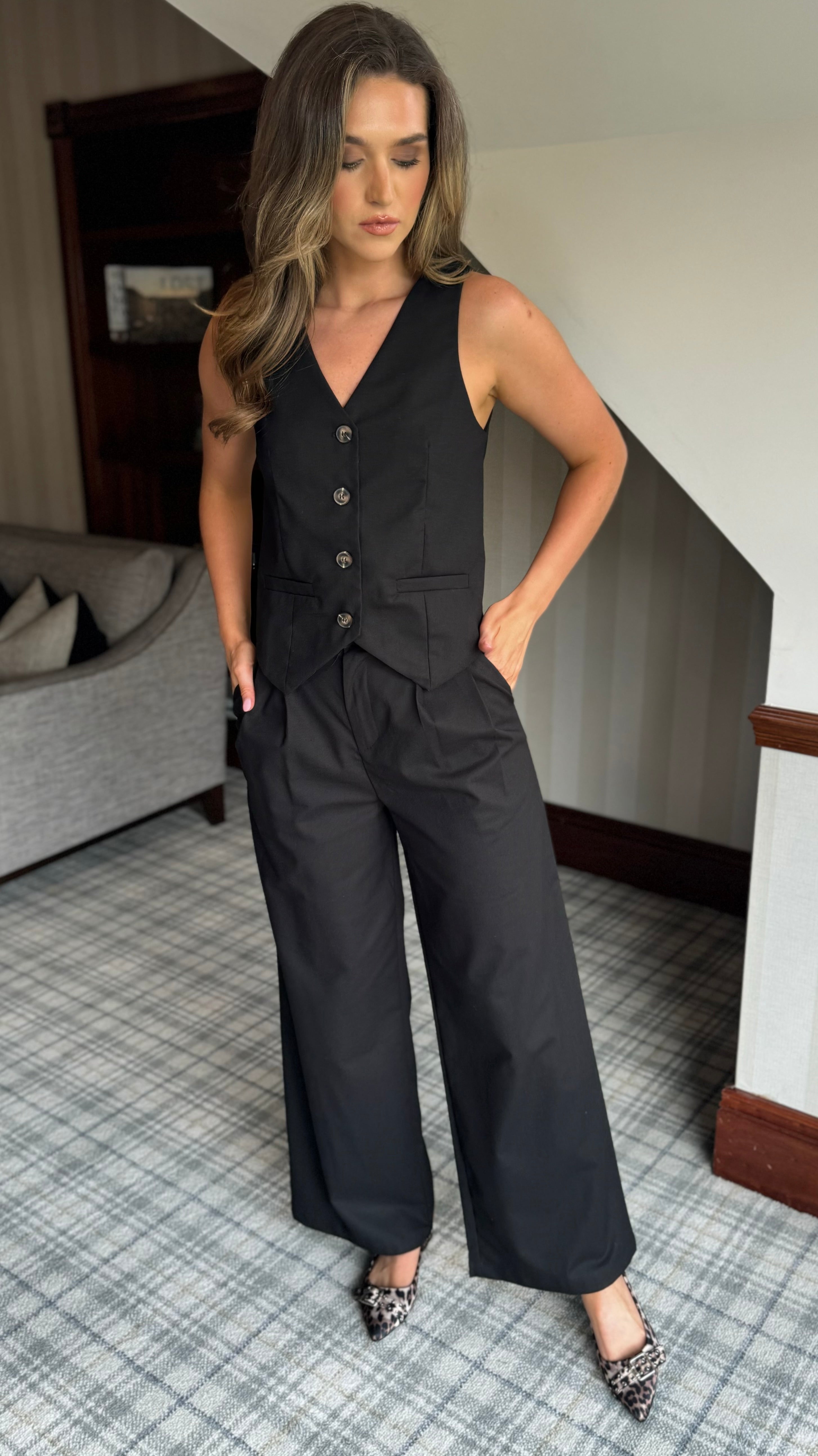 Alice Black Waistcoat and Wide Leg Trouser Co-Ord