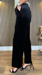 Corey Black Velvet Finish Straight Leg Trousers
