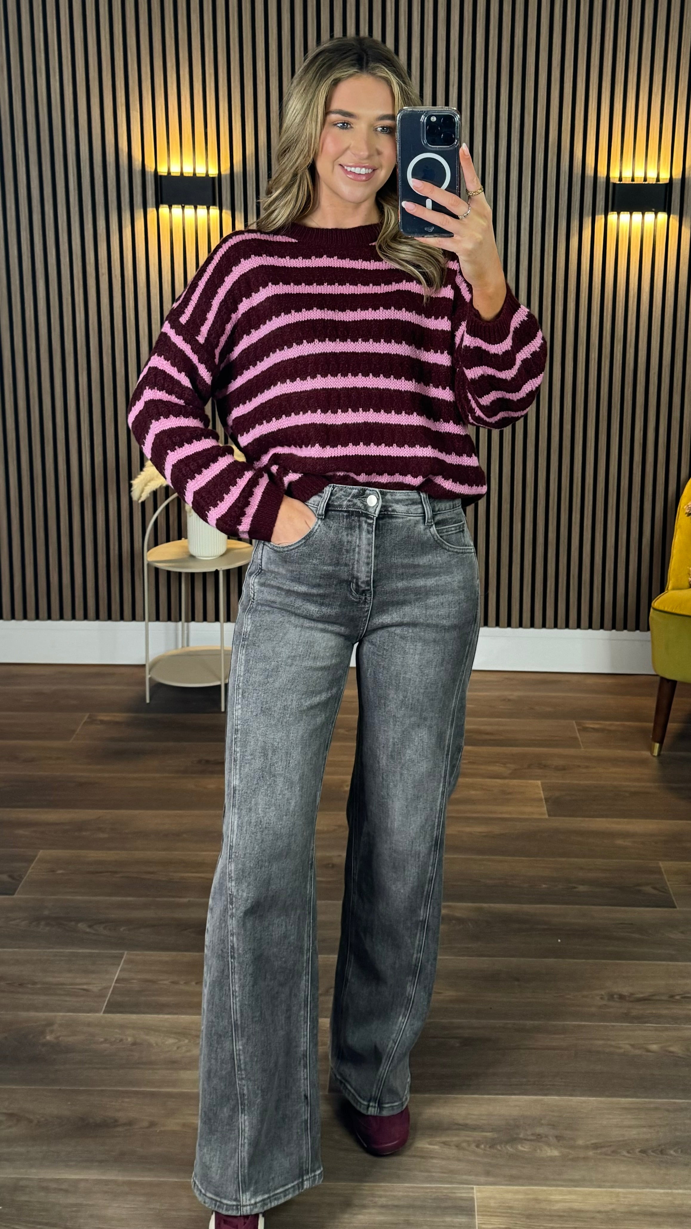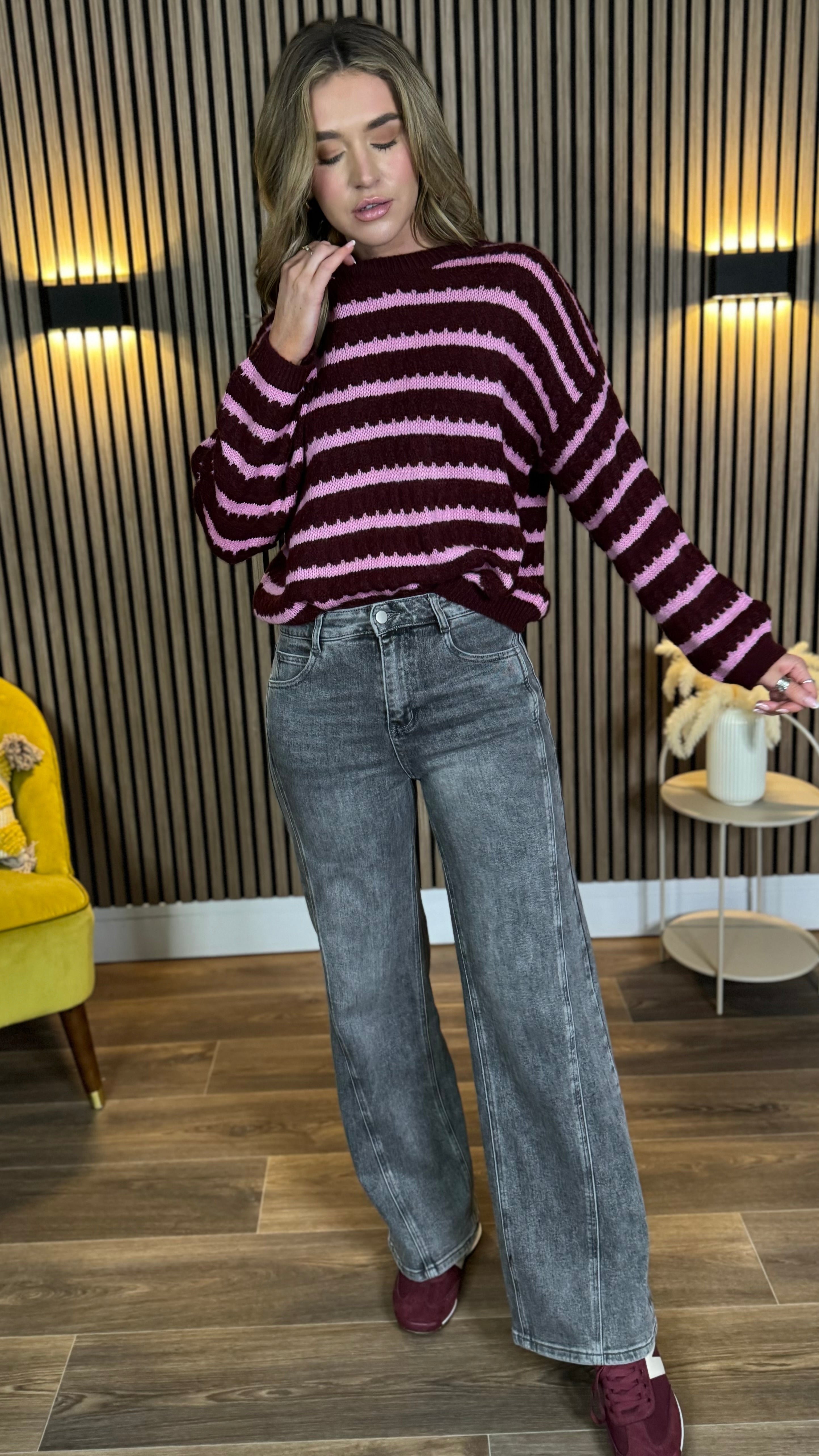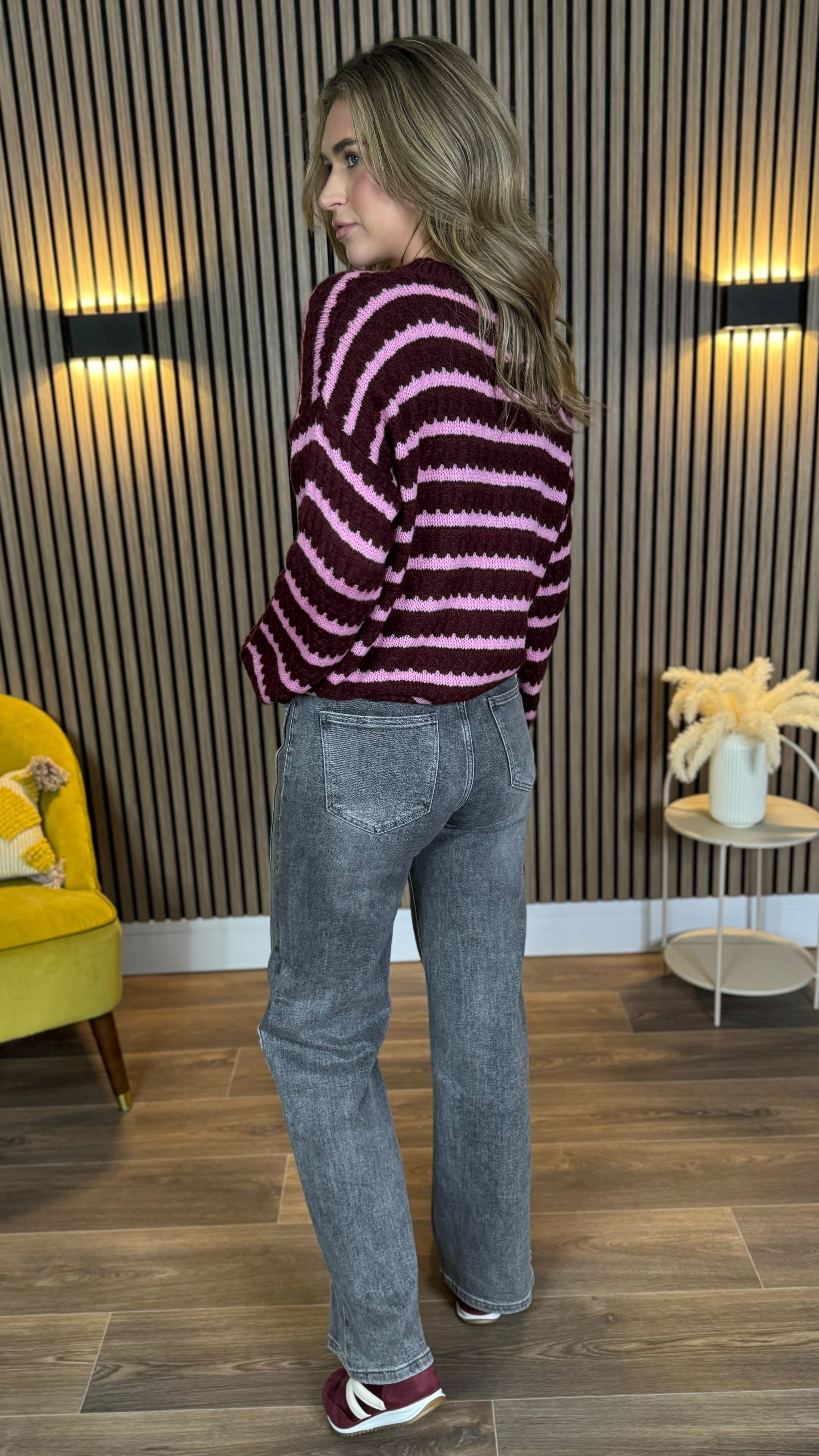 Dylan Burgundy & Pink Stripe Jumper