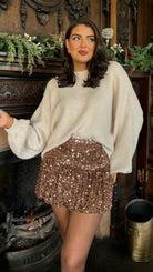 Elowen Brown Sequin Frill Hem Mini Skirt
