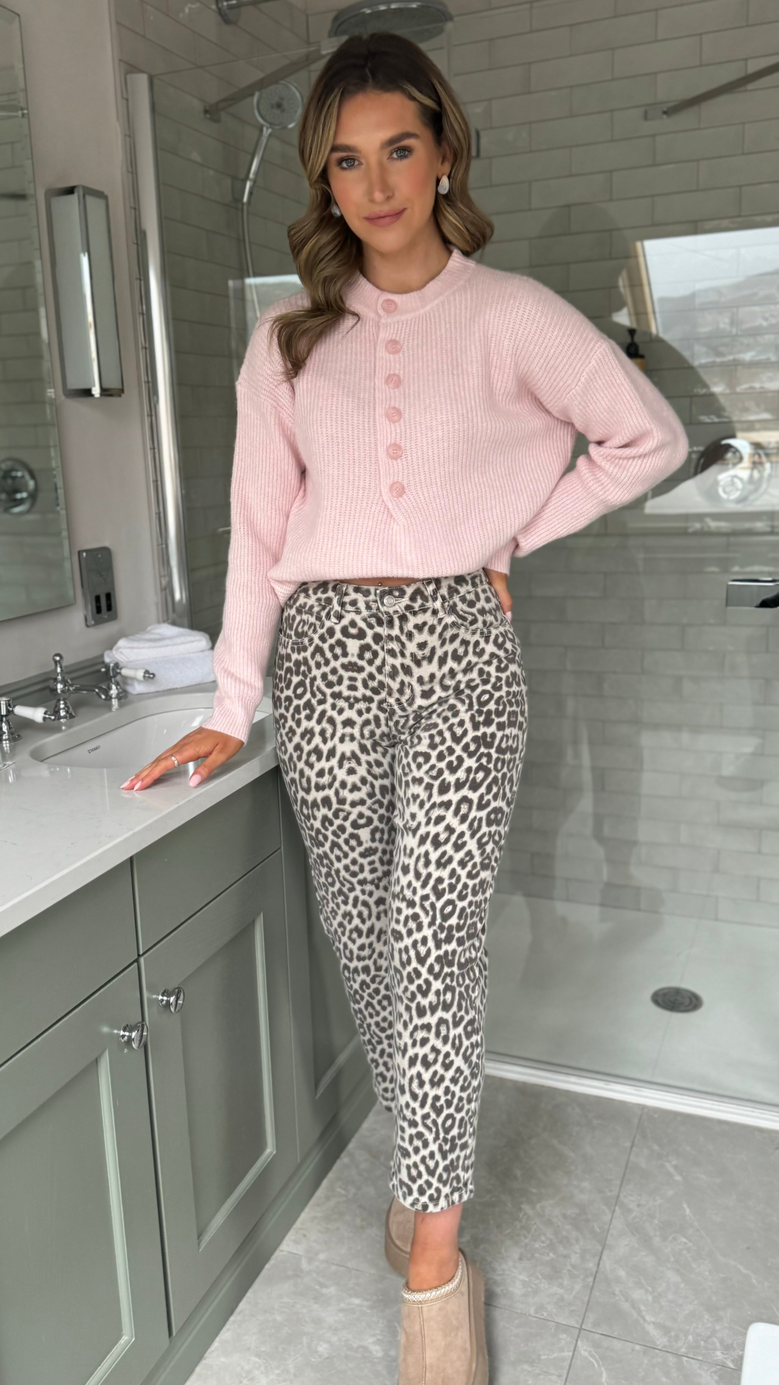 Emerson Pink Button Detail Ribbed Jumper