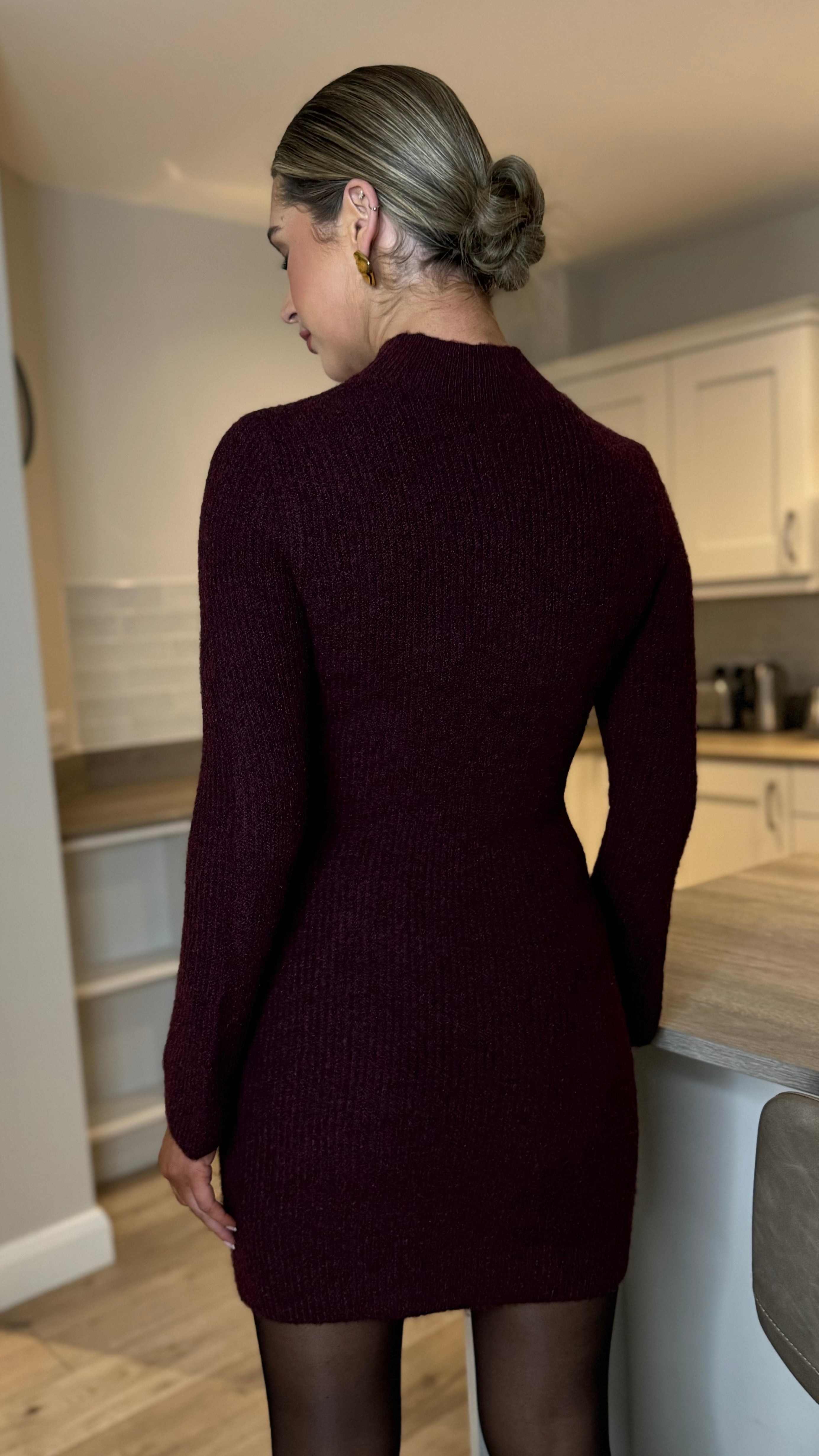 Serenity Burgundy High Neck Knitted Mini Dress