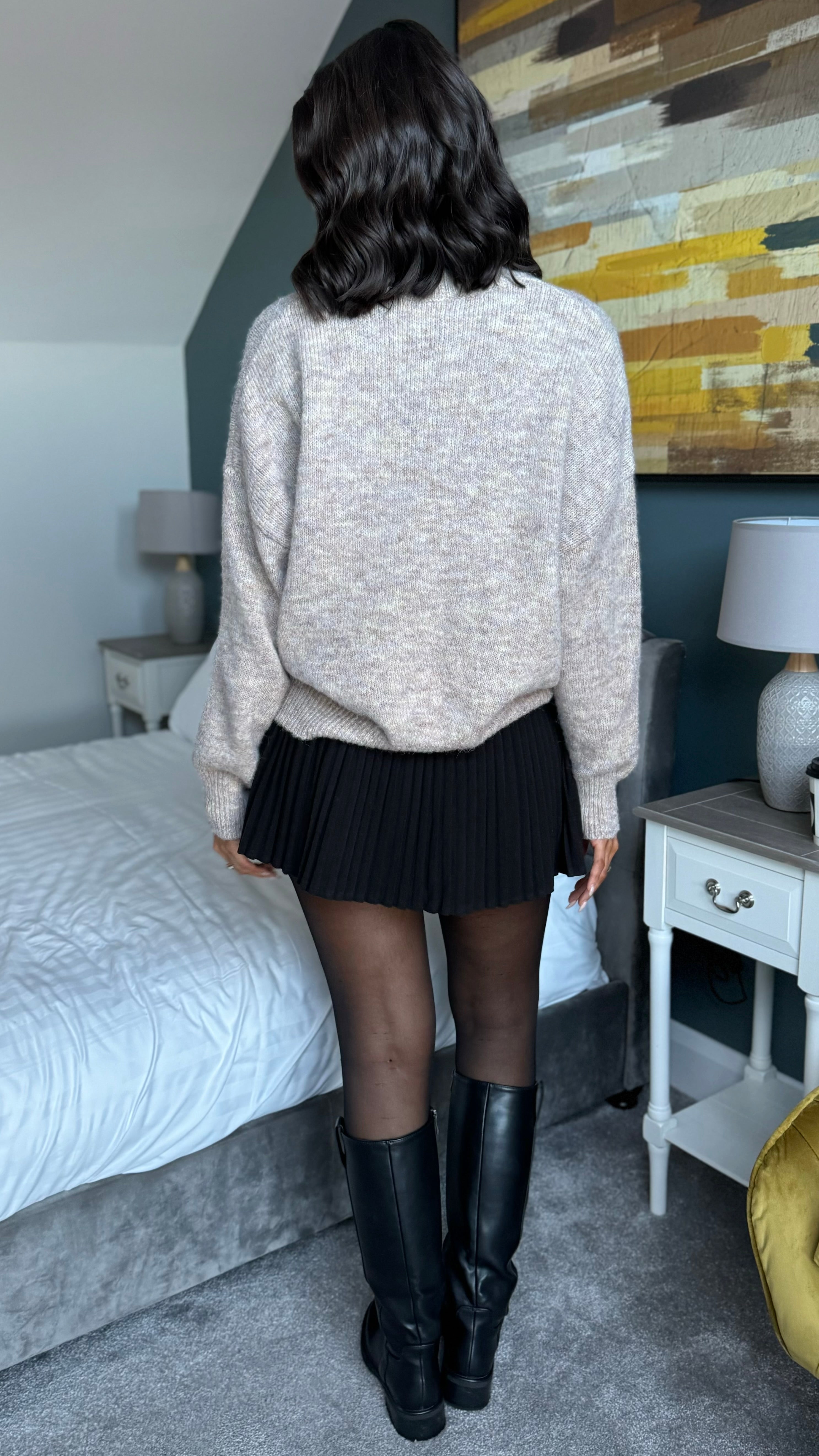 Fifi Black Pleated Mini Skirt Elevate your everyday style with this cheeky little number! Featuring delicate mini pleats that add movement and dimension, this skirt brings instant personality to any outfit. The discreet concealed zip keeps things sleek and streamlined, while the drop waist creates a flattering silhouette that sits just right. Perfect for those days when you want to feel effortlessly put-together with a touch of playful flair.