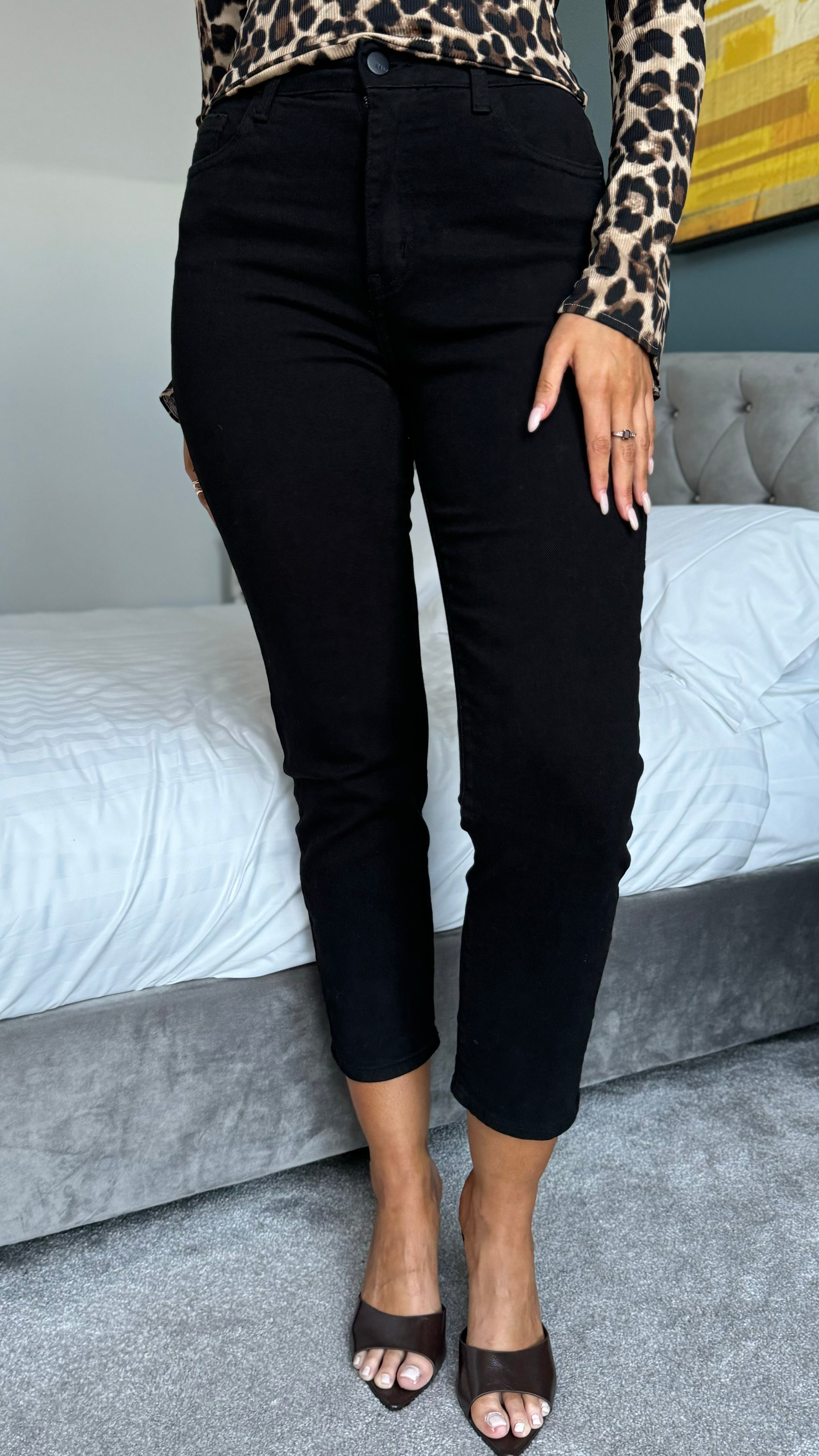 Francine Black Cropped Mom Jeans