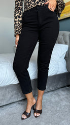 Meet your new denim obsession—the Francine Black Cropped Mom Jeans are here to serve comfort with a side of cool. Crafted from soft, stretchy denim that moves with you, these beauties feature a flattering cropped length that hits just right. Practical front and back pockets keep your essentials close, while the zip and fly fastening ensures a secure fit every time. Whether you're running errands or grabbing coffee with friends, these jeans are your go-to for effortless style that actually feels amazing to wear.