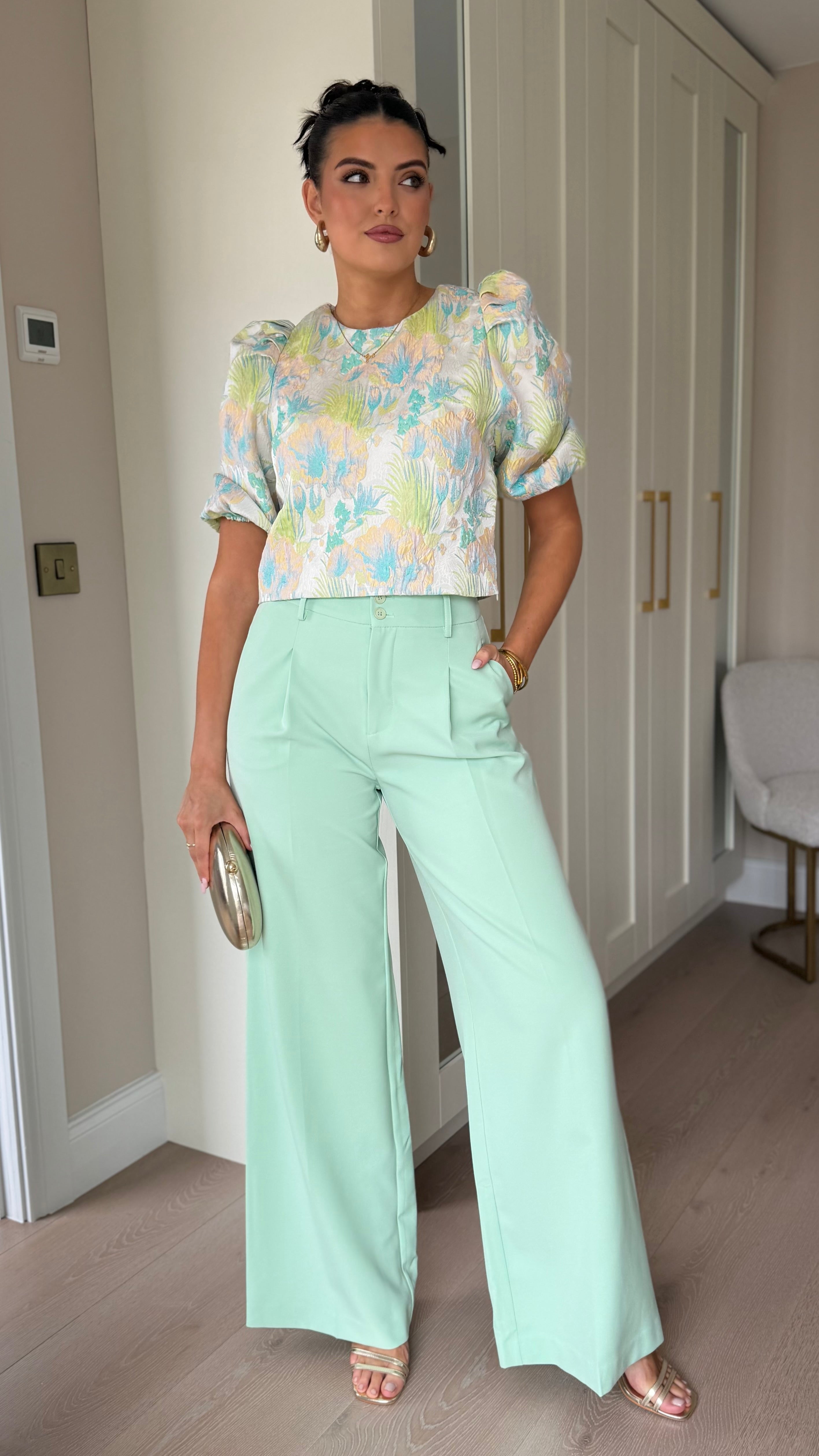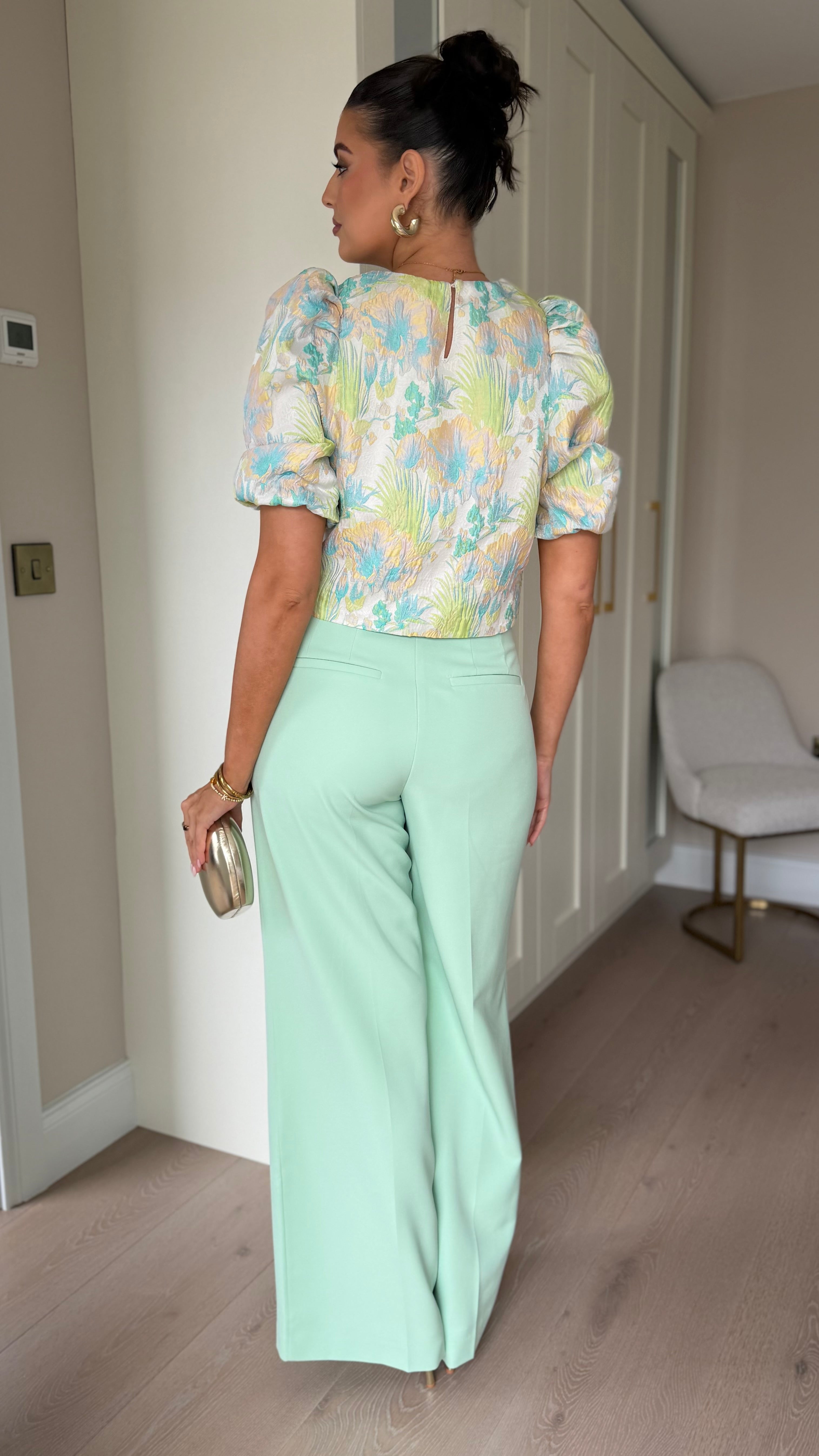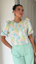 Harper Green & Blue Floral Printed Puff Sleeve Top (PRE-ORDER)