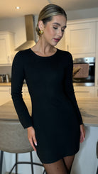 Slip into effortless elegance with this charming black mini dress. The round neckline frames your face beautifully, while voluminous bell sleeves add a touch of whimsy and movement. The fitted ribbed fabric hugs you in all the right places before flowing into a flattering A-line silhouette that skims your curves. Perfect for dressing up or down, this versatile piece transitions seamlessly from day to night. A wardrobe essential that's equal parts cosy and chic.