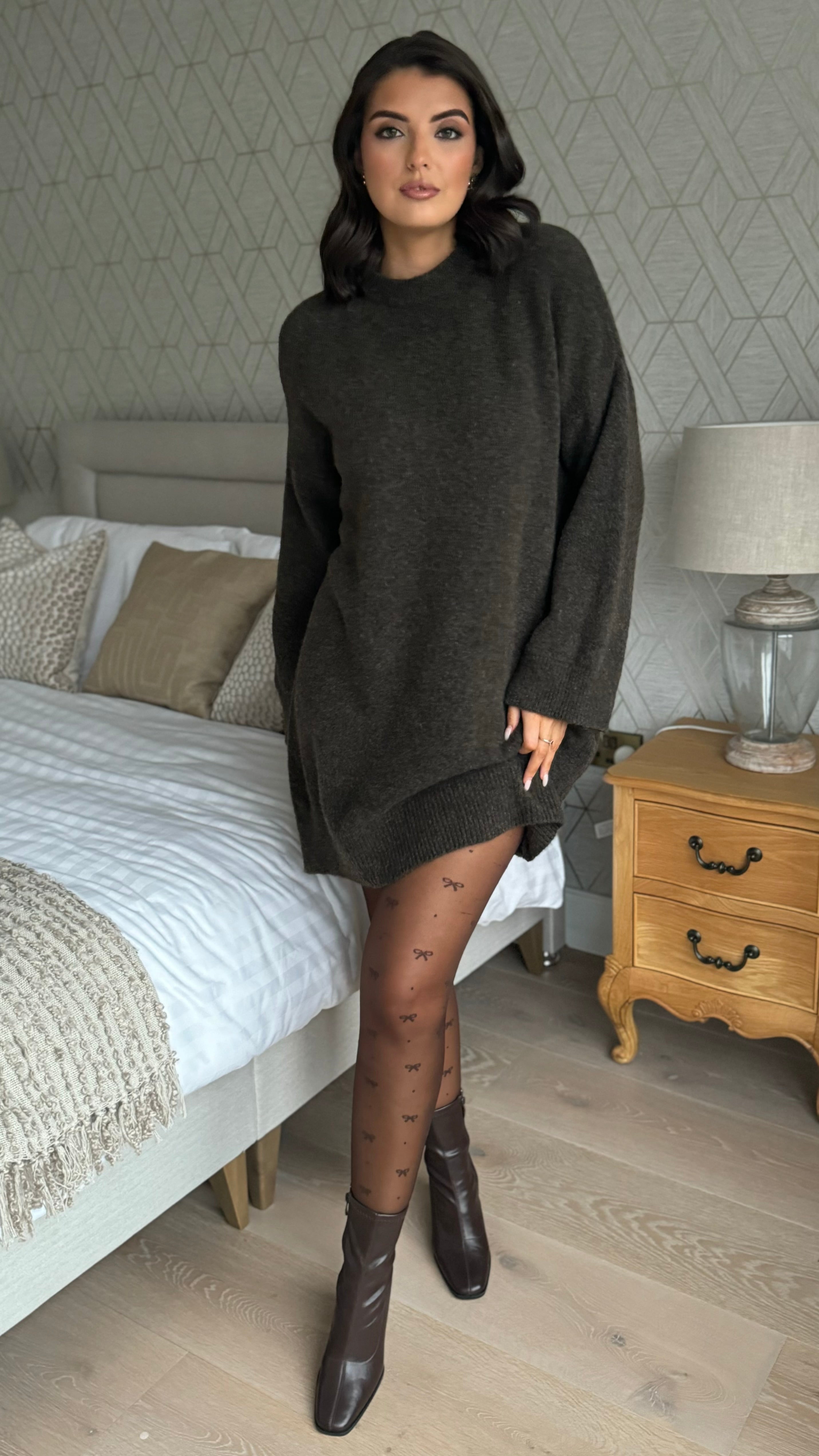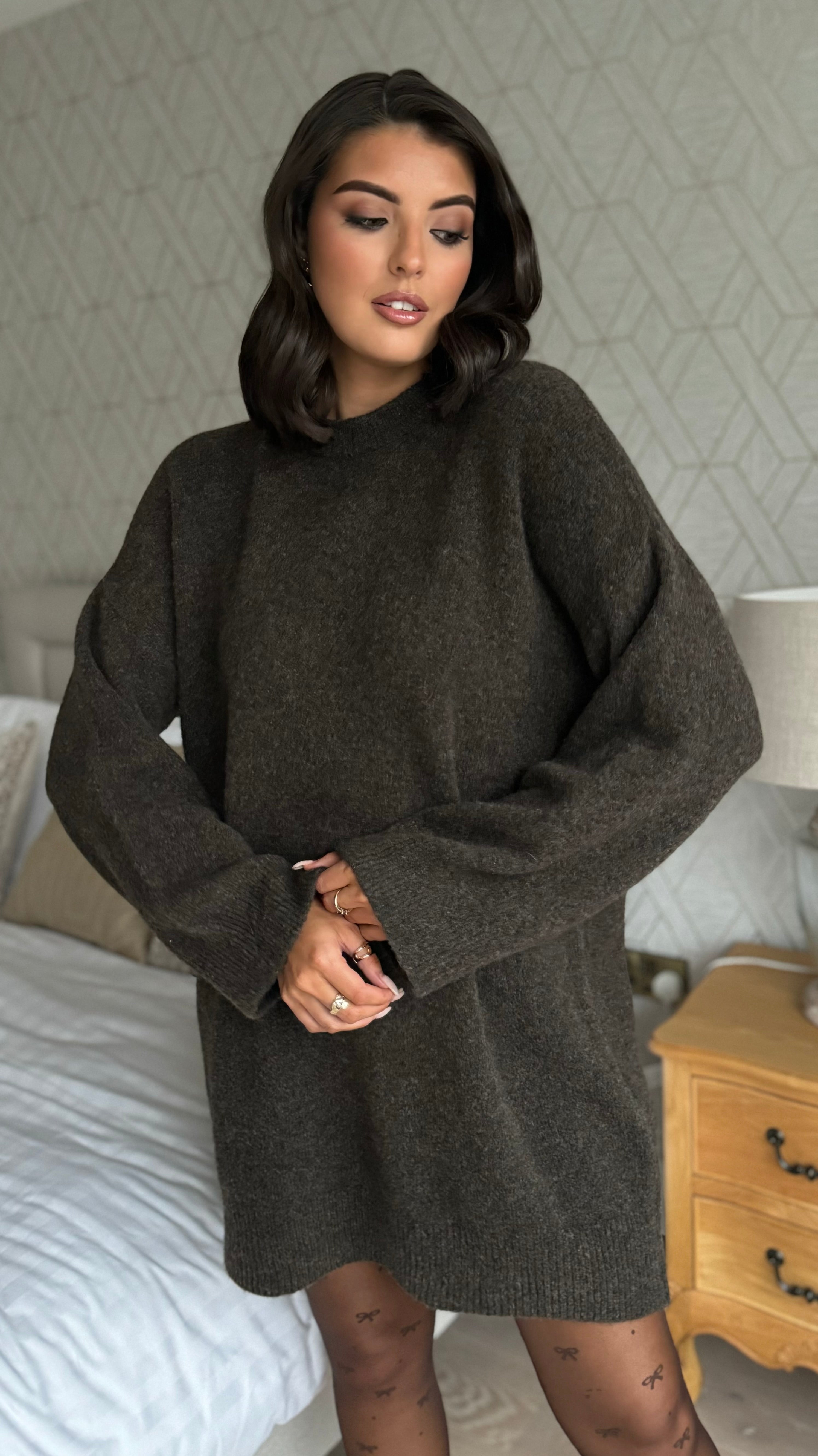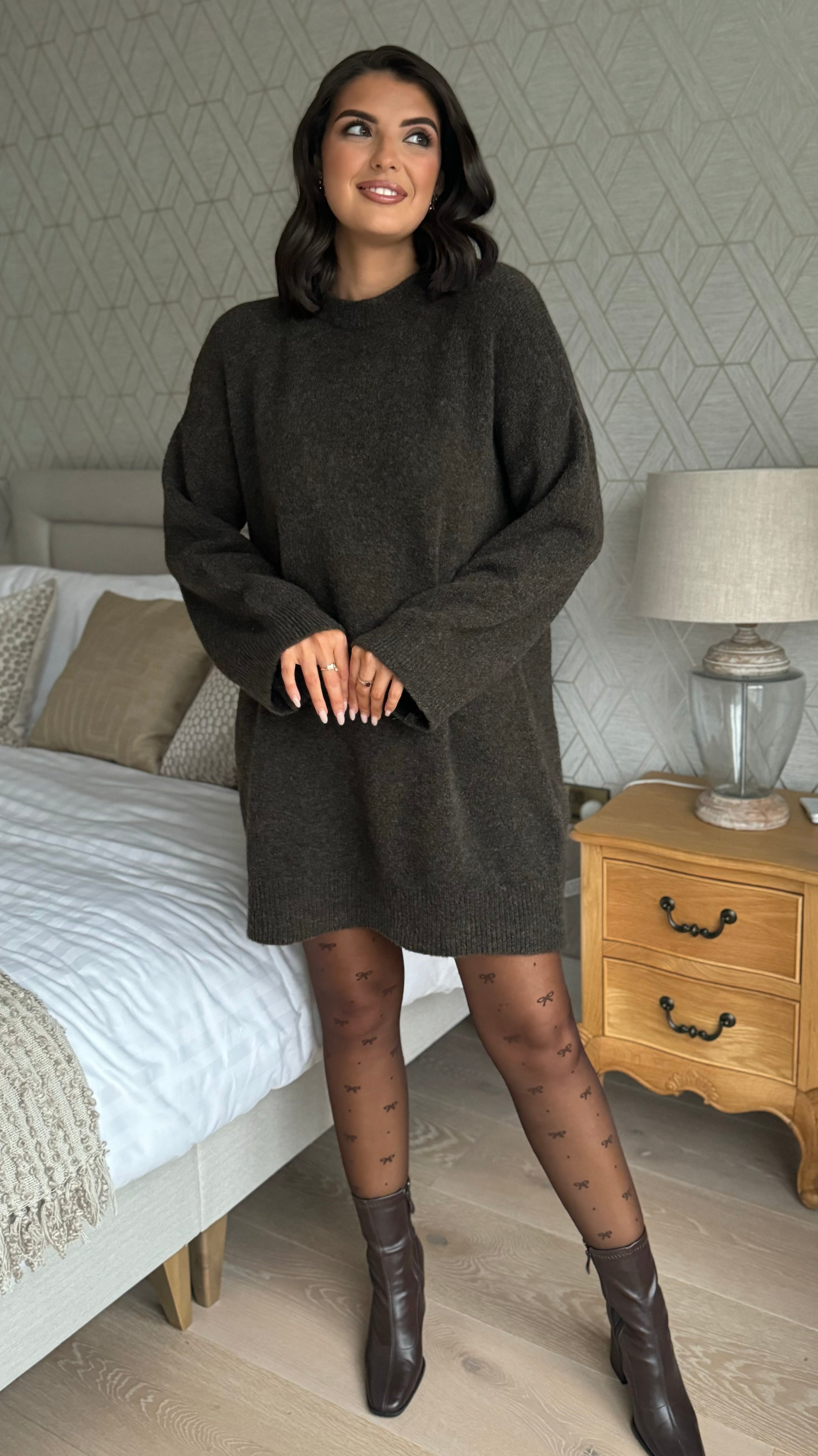 Wrap yourself in cozy comfort with the Kimmy Brown Fluffy Jumper Dress. This playful knit features a soft, fluffy yarn that feels like a cloud against your skin, paired with a classic ribbed crewneck for timeless appeal. The dropped shoulders create an effortlessly relaxed vibe, while long sleeves keep you warm and toasty. With its straight silhouette, this dress offers a flattering, easy-to-wear fit that works beautifully on its own or layered over your favourite tee. Perfect for those days when you want to feel snug and look stylish.