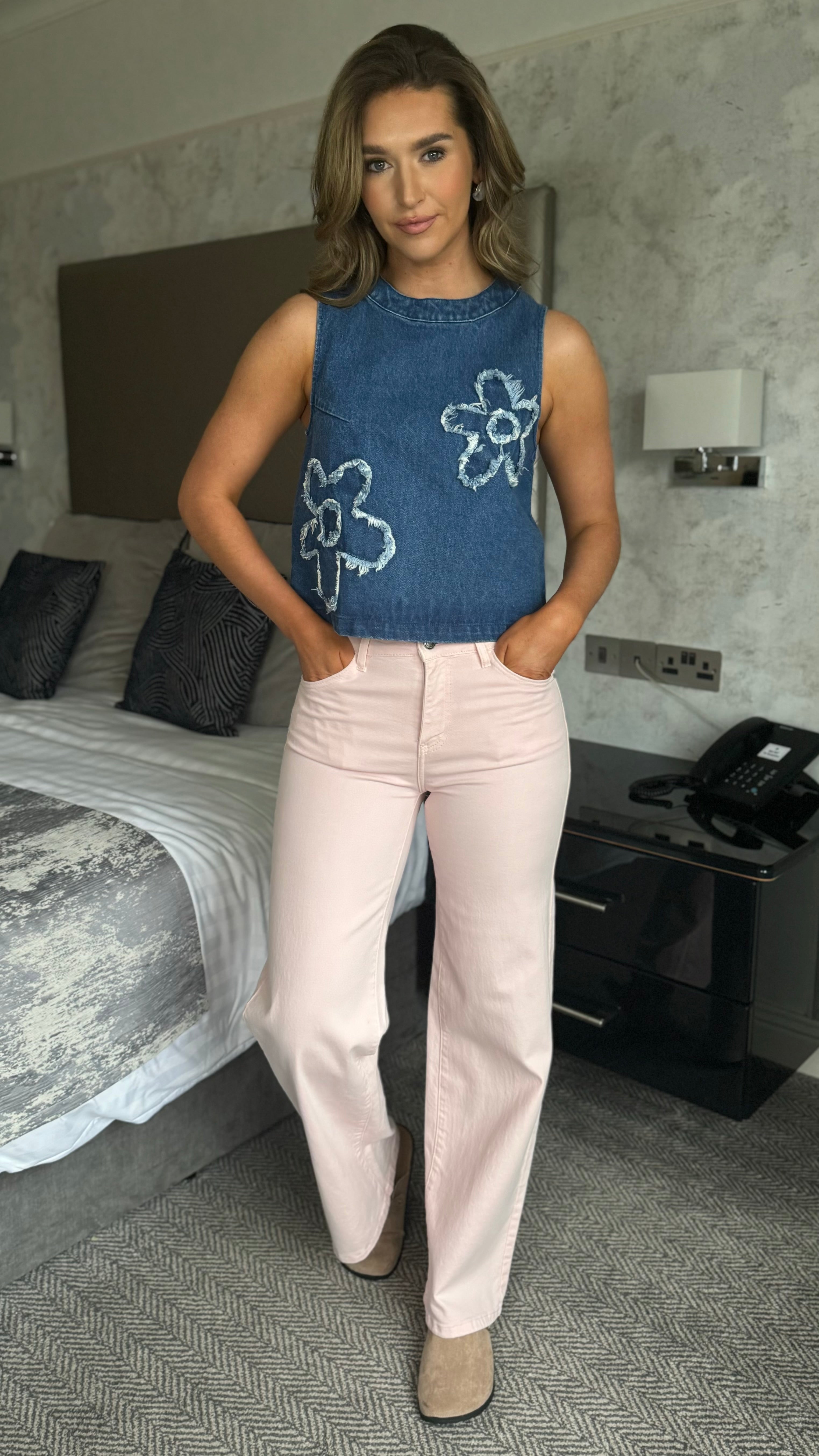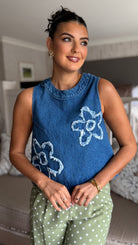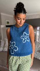 Mandy Denim Flower Embroidered Top