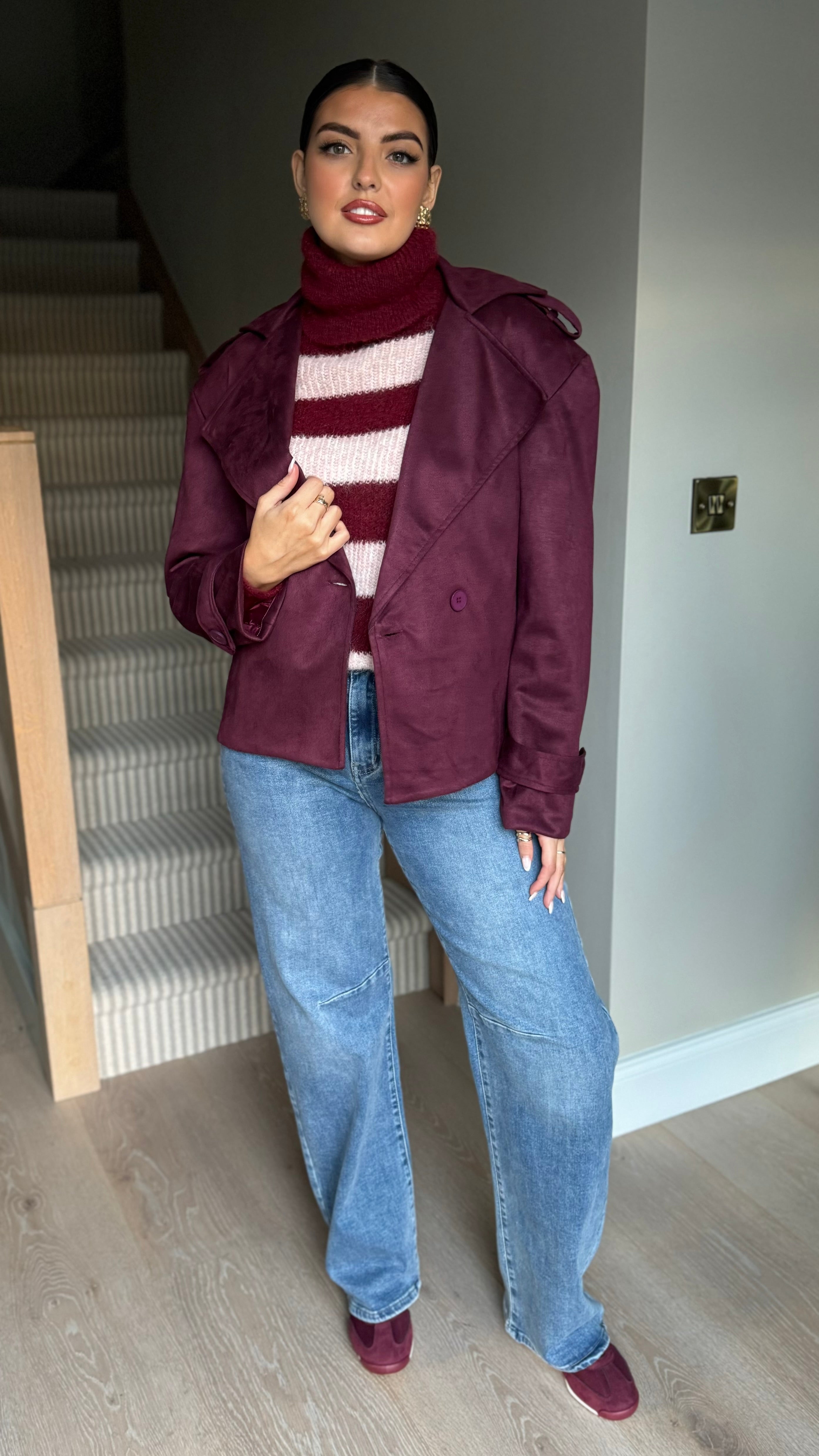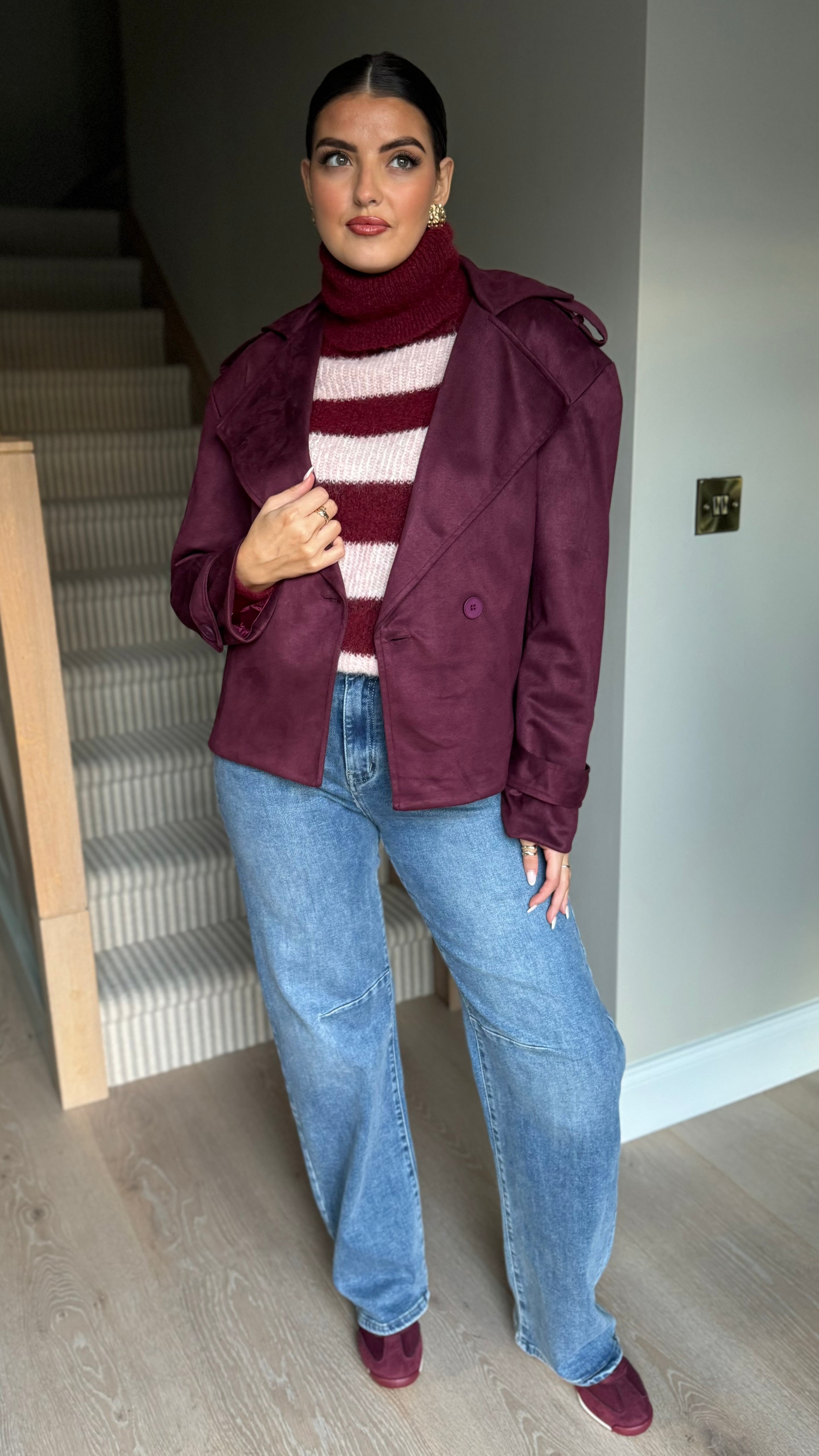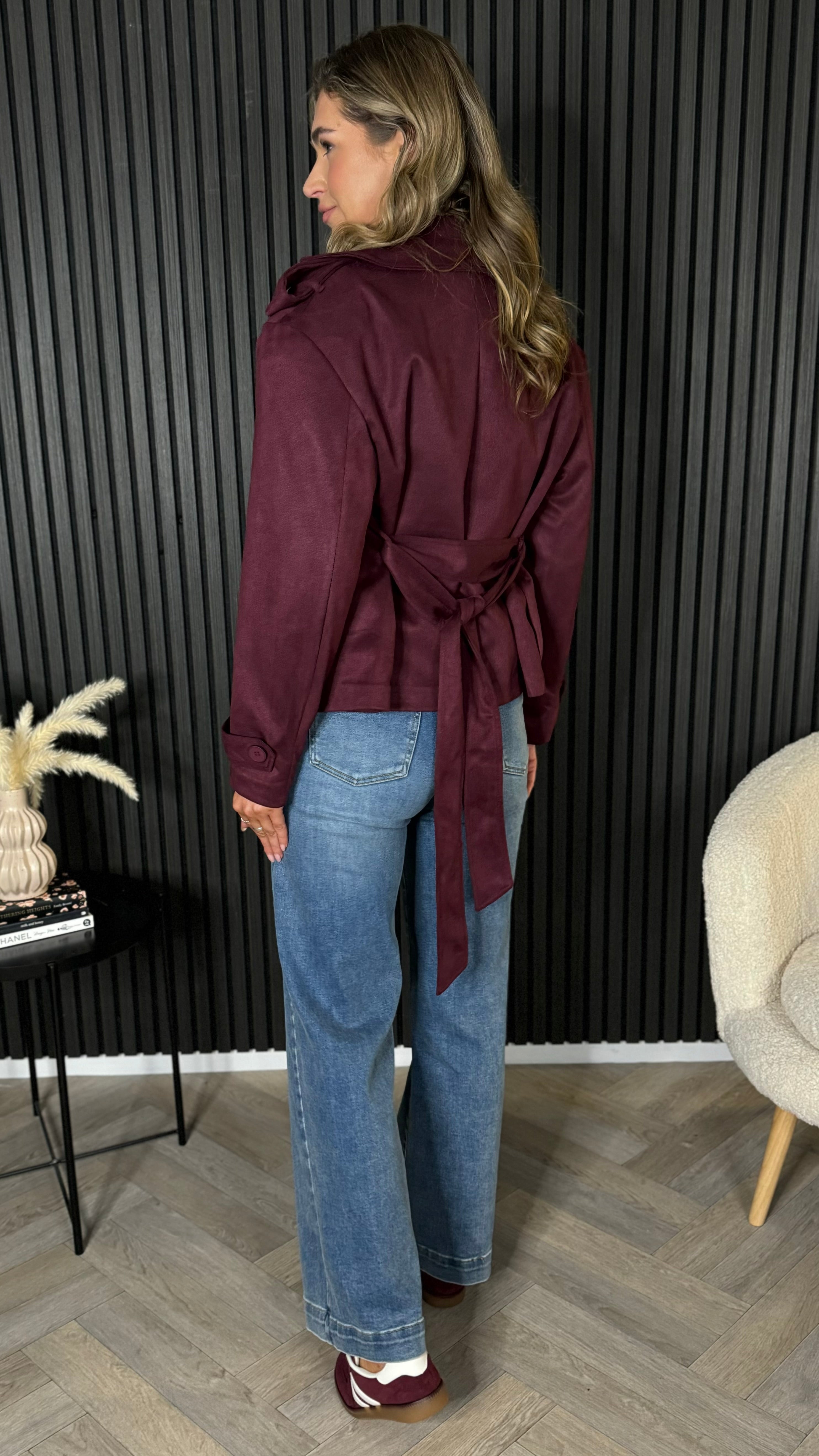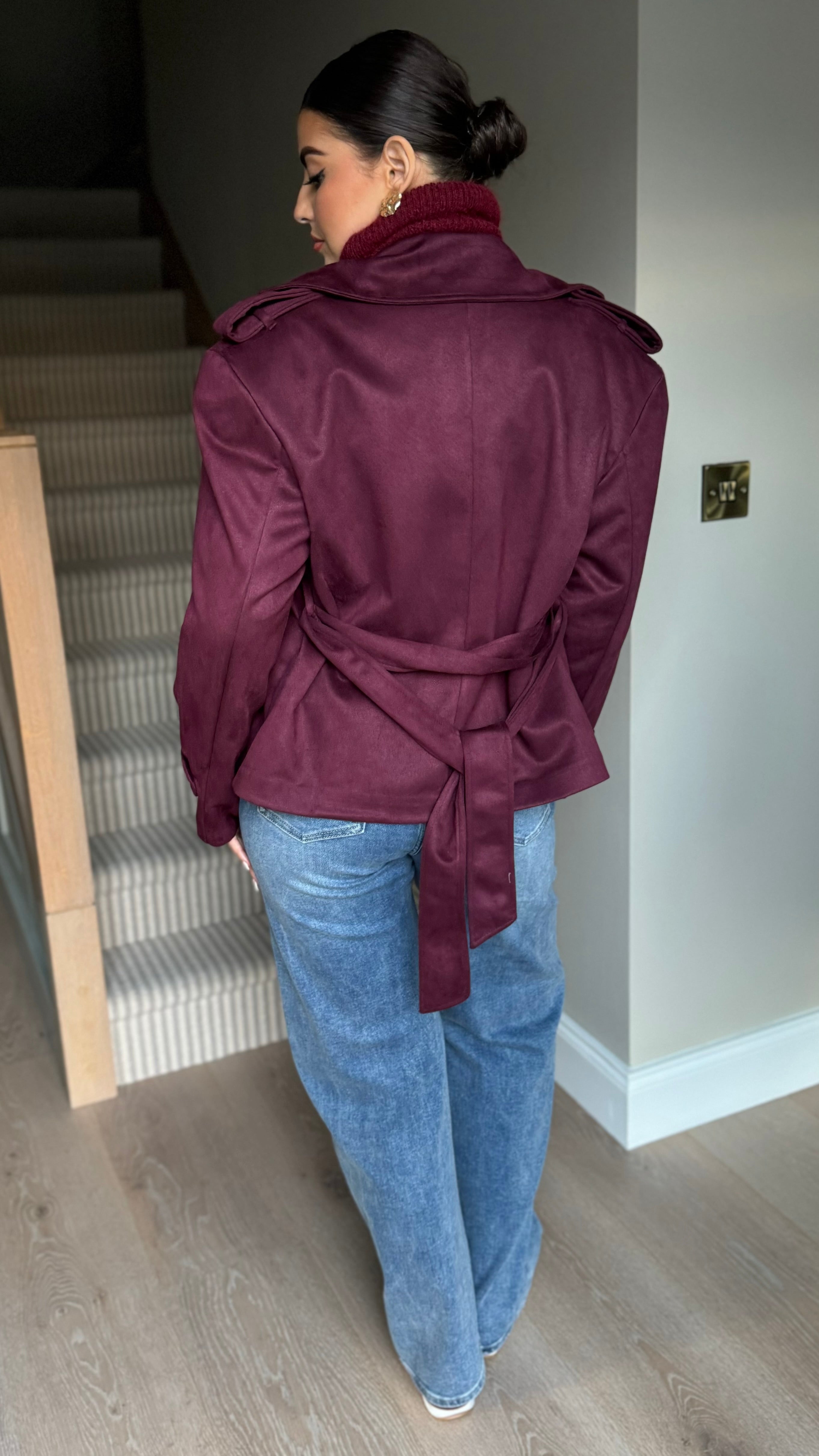 Mariella Burgundy Faux Suede Trench Style Jacket