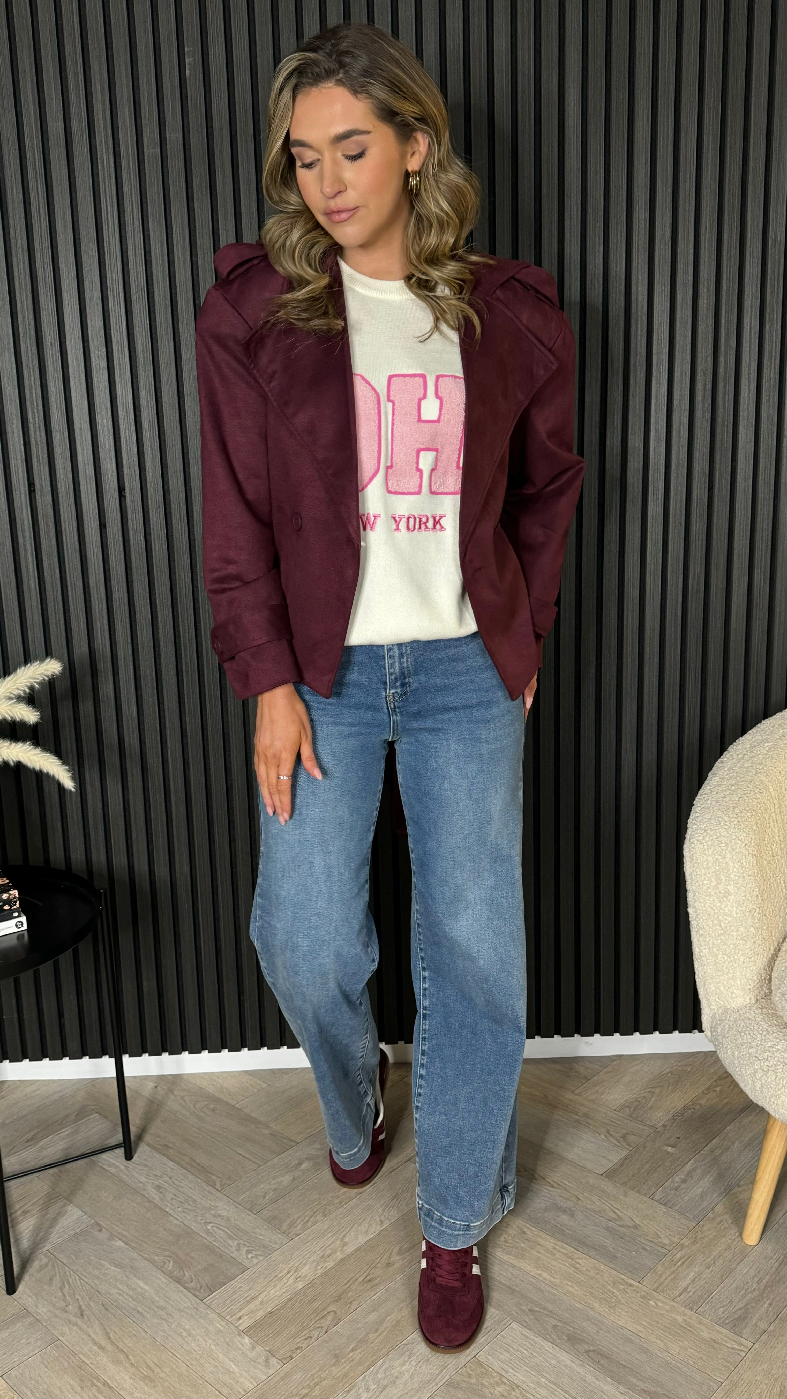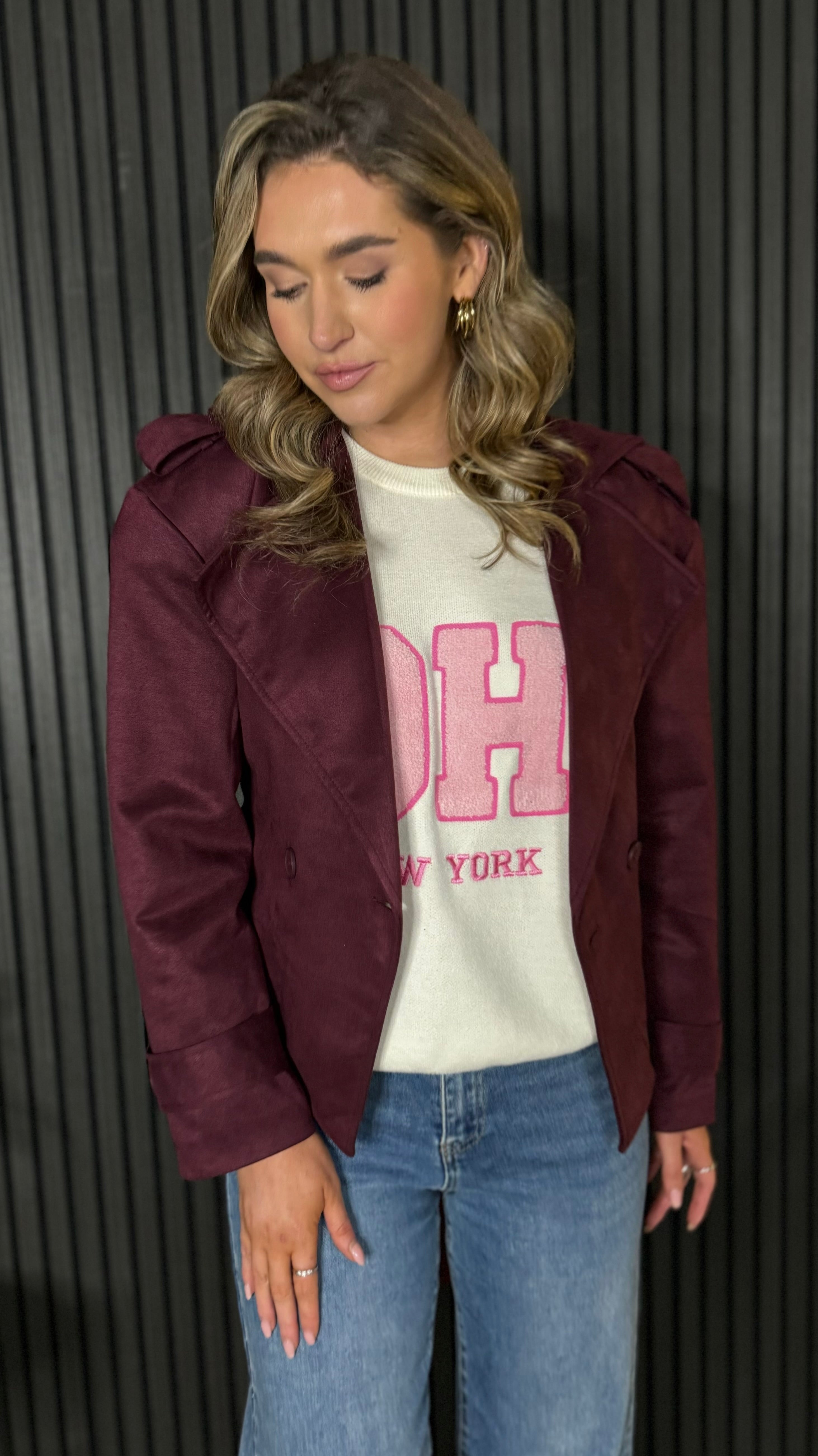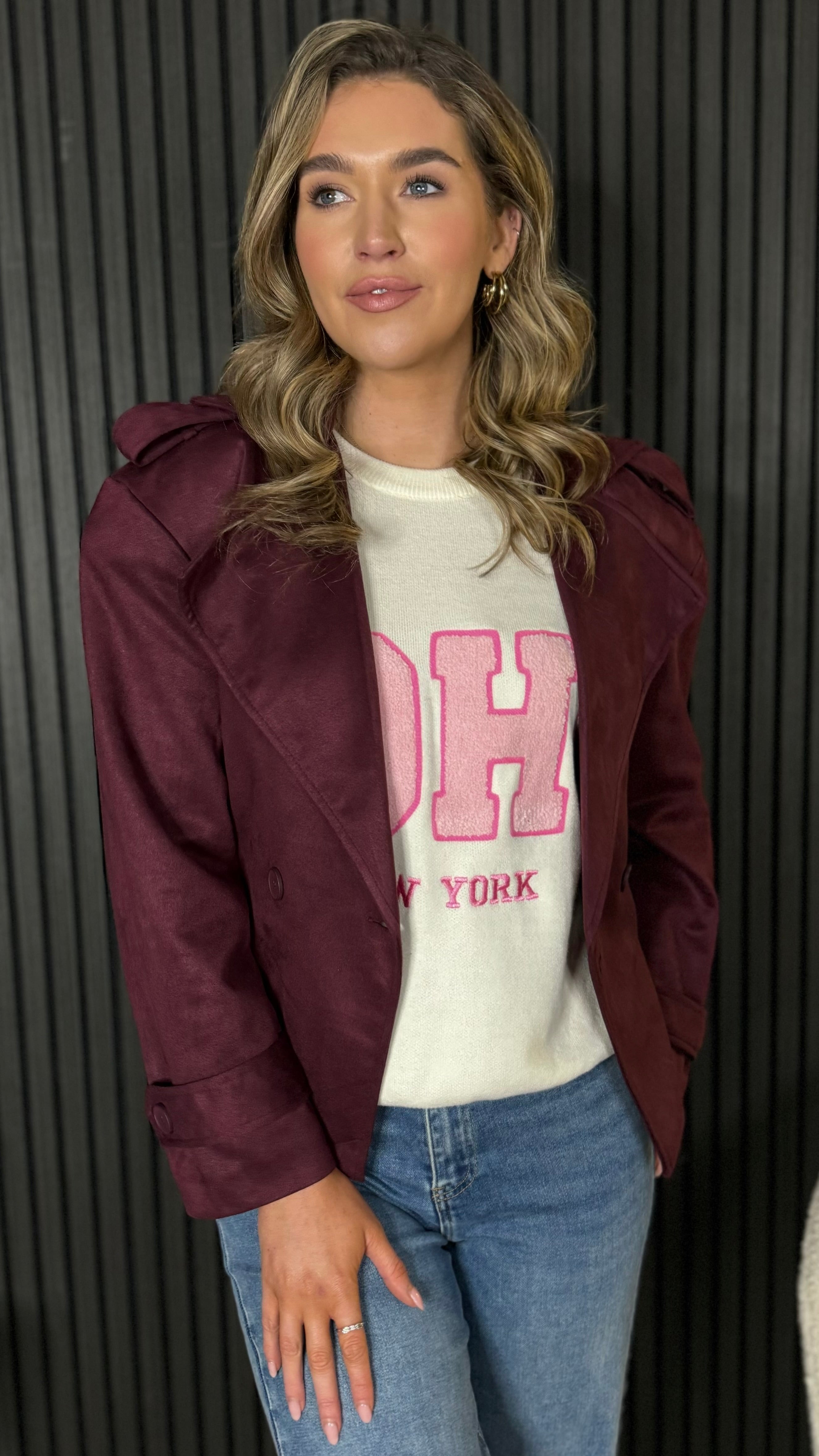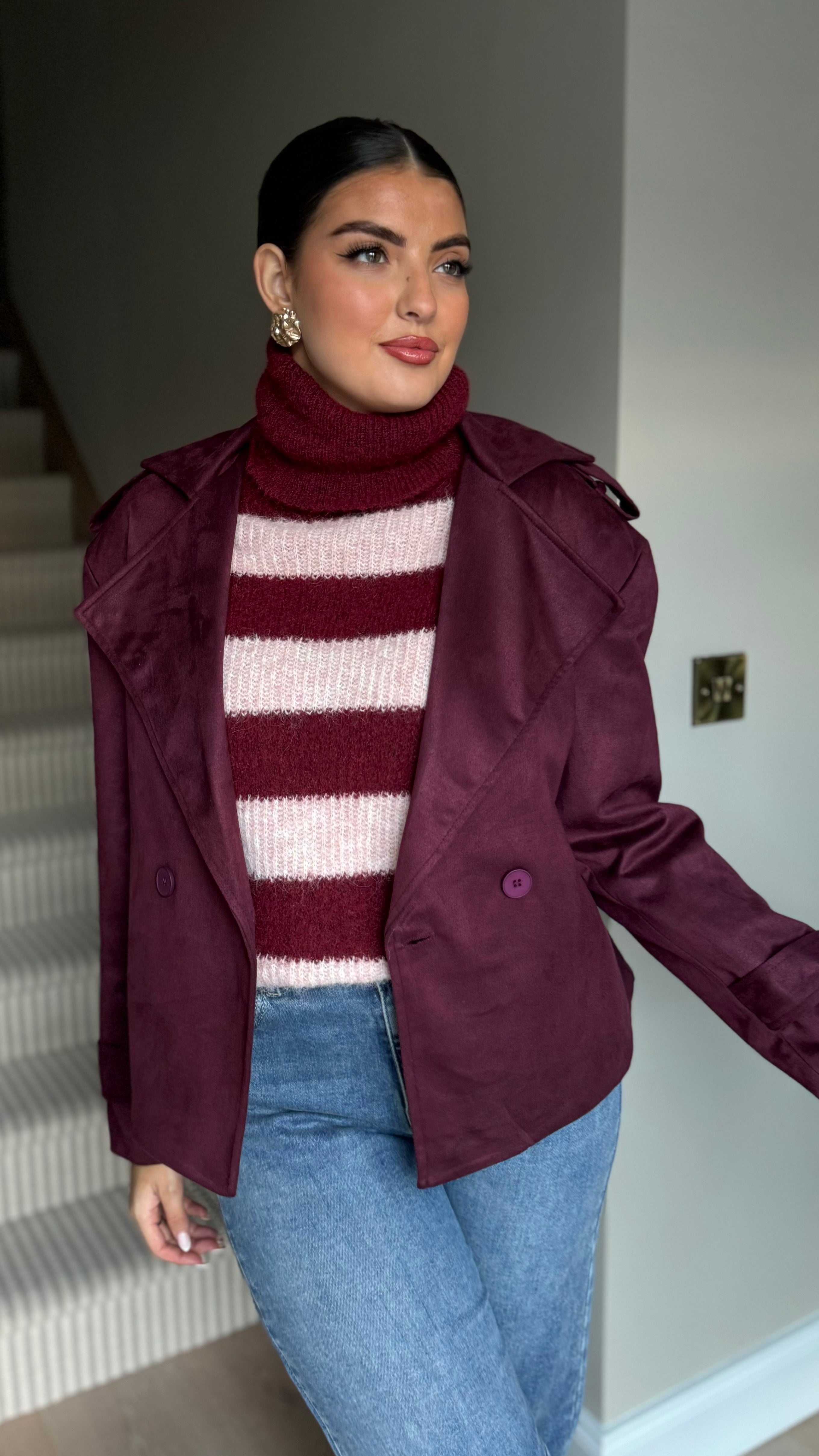 Mariella Burgundy Faux Suede Trench Style Jacket