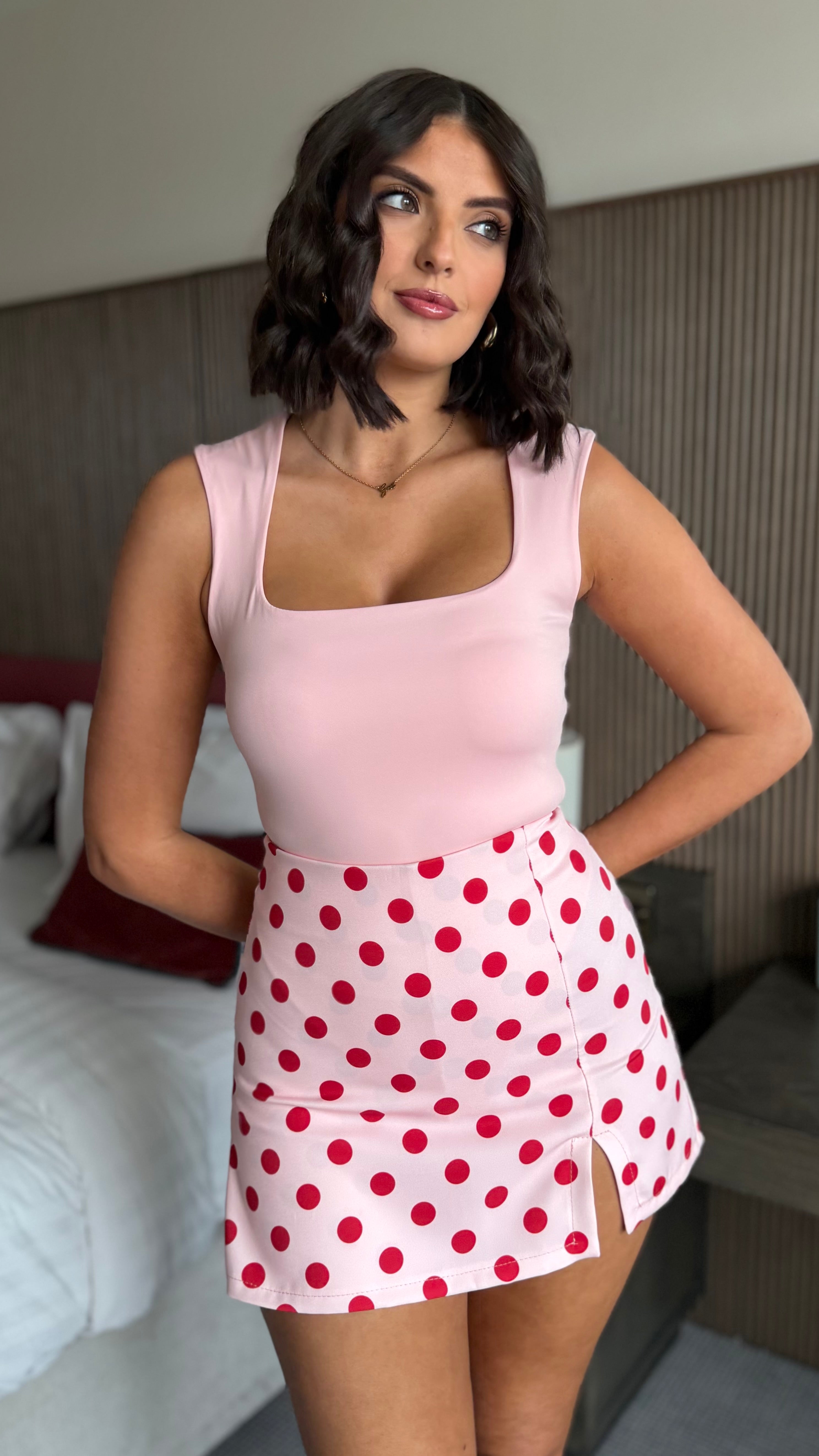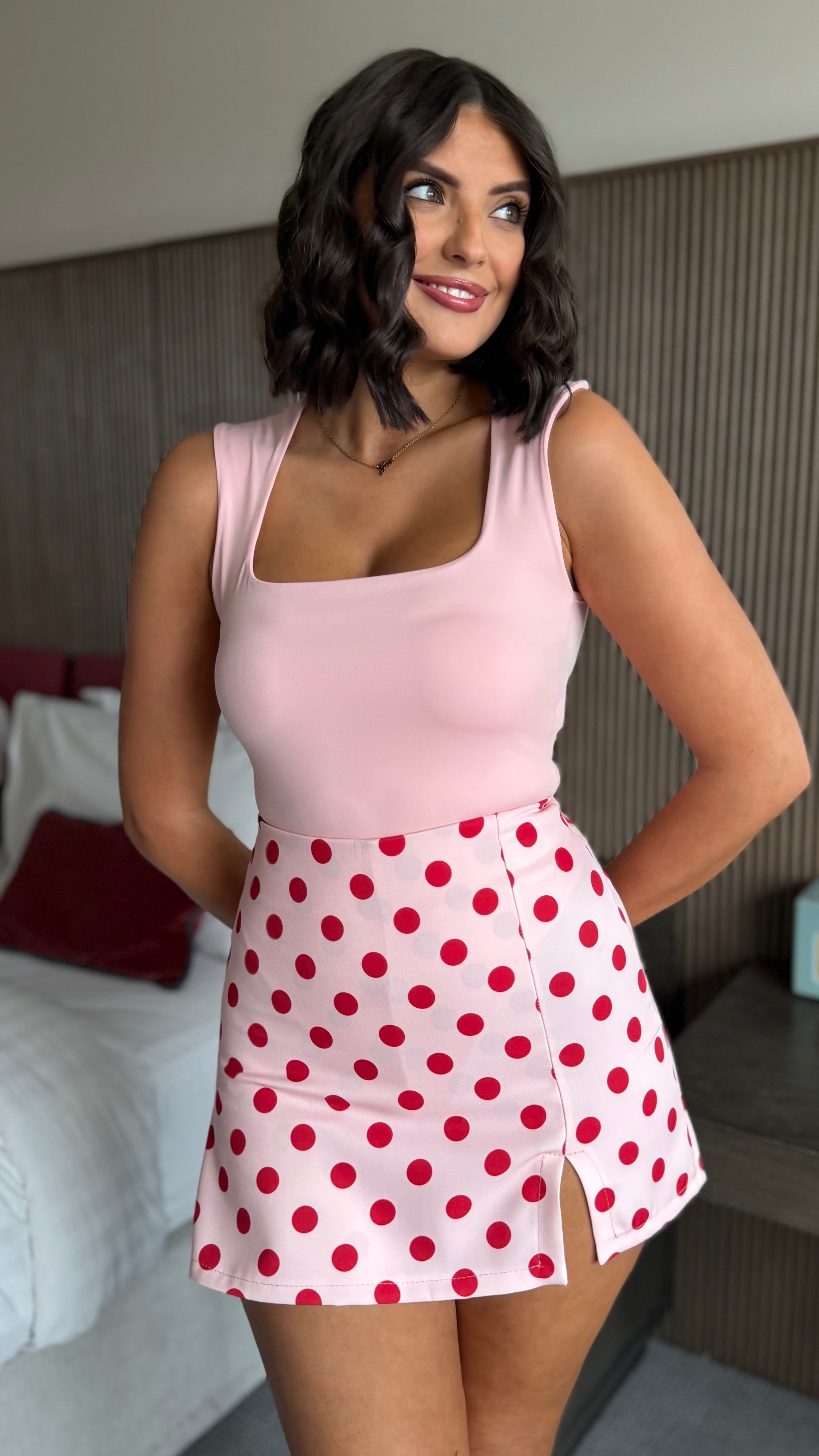 Olive Pink & Red Polka Dot Skort