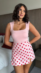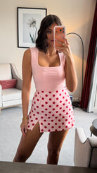 Elevate your casual wardrobe with this charming Olive Pink & Red Polka Dot Skort. The playful polka dot pattern adds a vintage-inspired touch, while the pink base keeps it versatile and easy to style. Perfect for warm days, this skort combines the comfort of shorts with the elegance of a skirt, featuring a flattering silhouette that works for everything from weekend outings to relaxed office settings. The classic colour combination ensures it pairs effortlessly with your favourite tops and trainers.