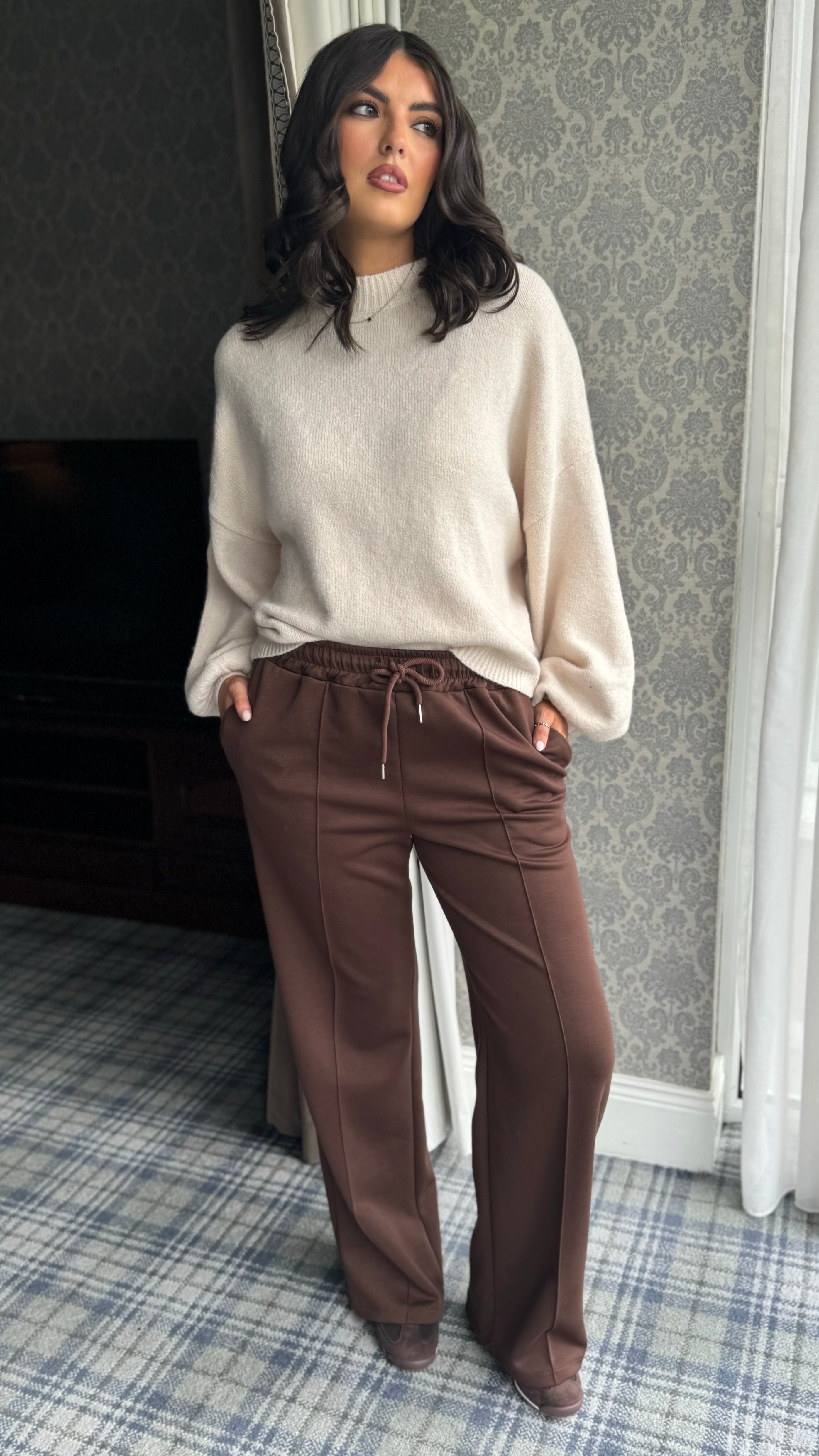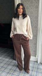 Slip into the Paris Chocolate Brown Wide Leg Joggers for a cozy yet stylish vibe. Featuring a chic front seam and an elasticated waistband, these joggers promise ultimate comfort with a flattering fit. Their wide leg design adds a playful twist, perfect for lounging or stepping out with effortless flair.