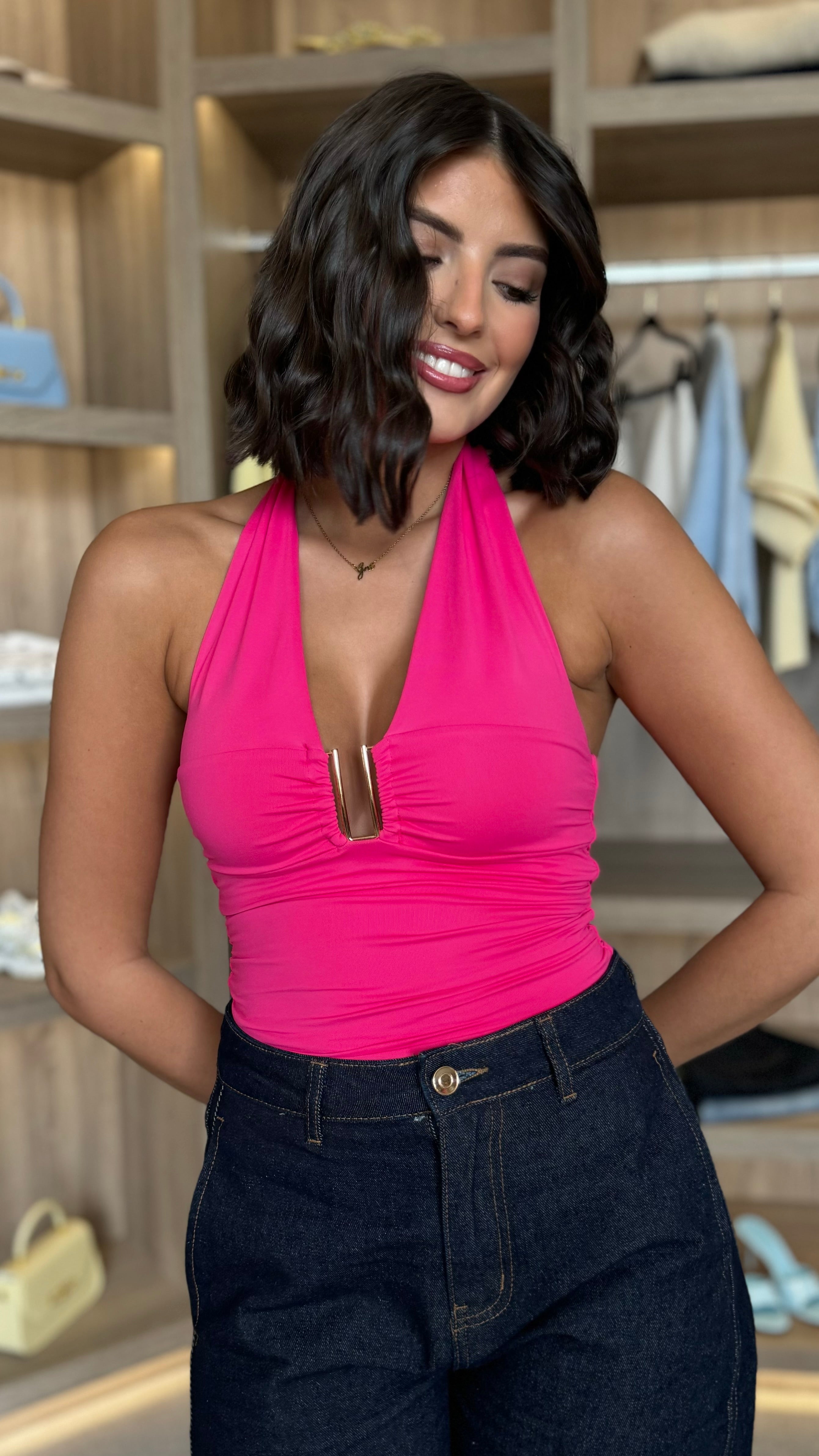 Quintessa Fuchsia Plunge Neck Top