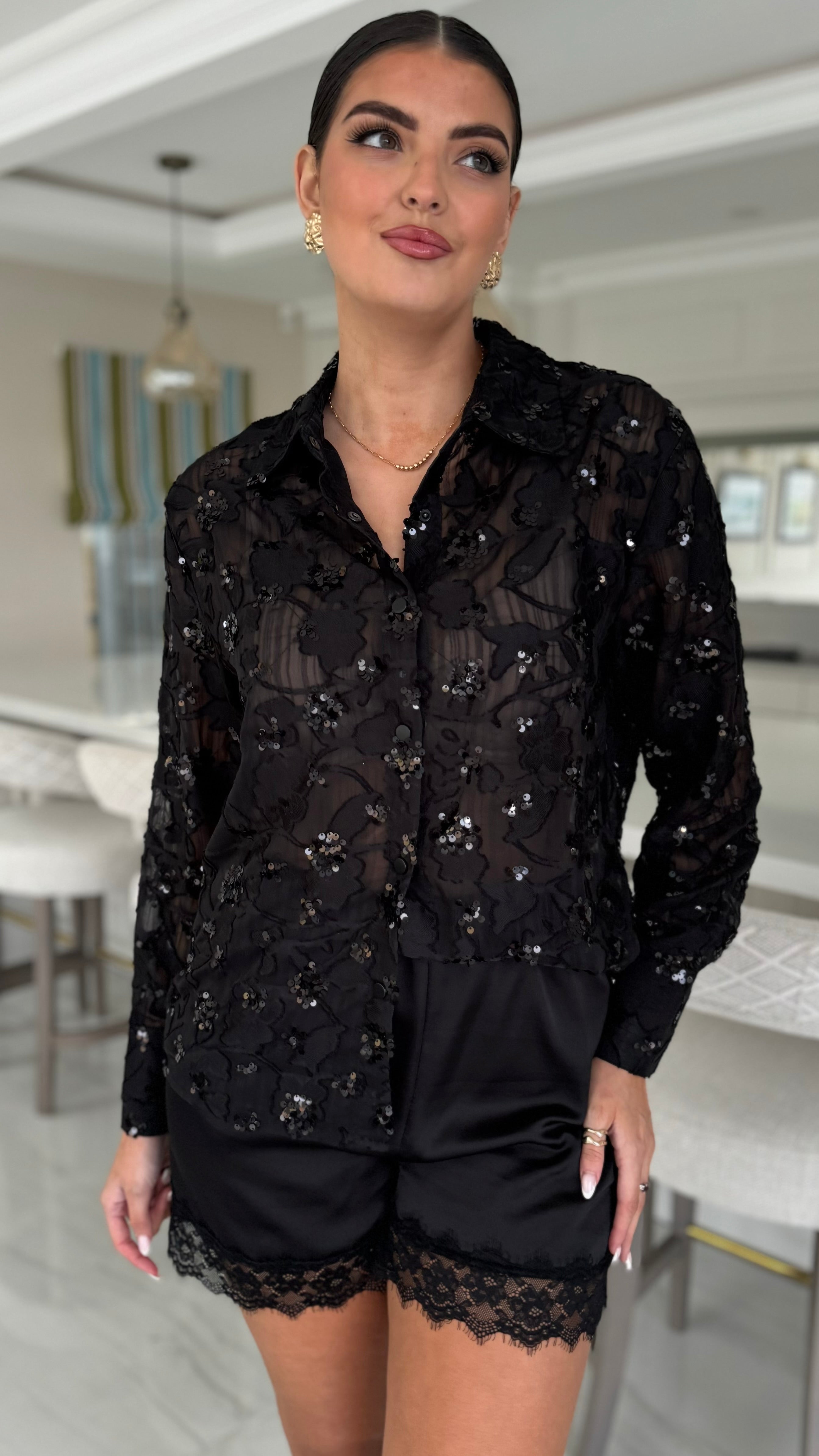 Sedona Black Textured Sequin Detail Shirt